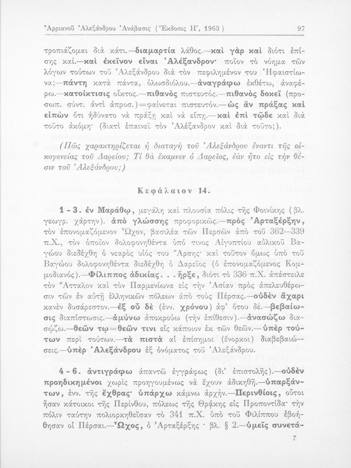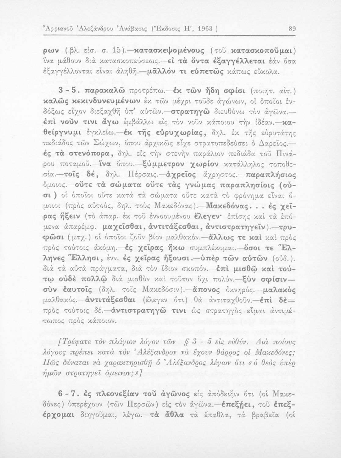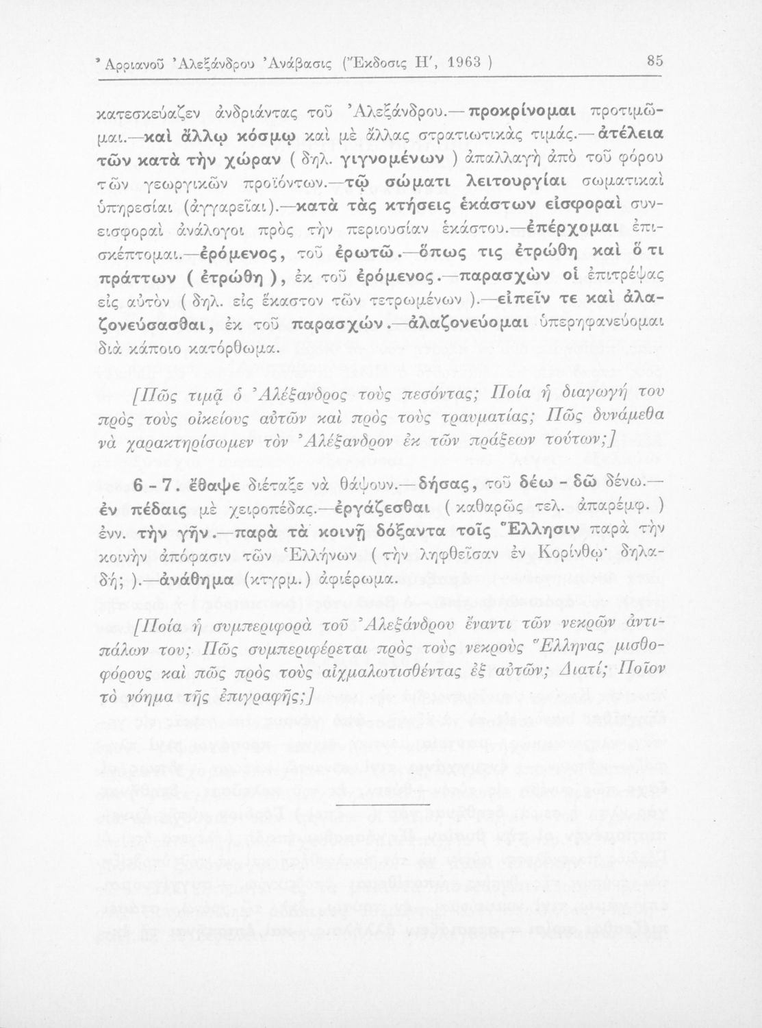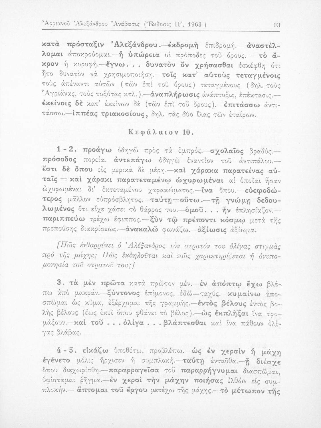 Σχολικό εγχειρίδιο Αρχαίων Ελληνικών που περιλαμβάνει αποσπάσματα από το έργο του Αρριανού Αλέξανδρου Ανάβασις και του Ηρόδοτου Ιστορίαι, ερμηνευτικές και λεξιλογικές παρατηρήσεις καθώς και τοπογραφικούς πίνακες και χάρτες..