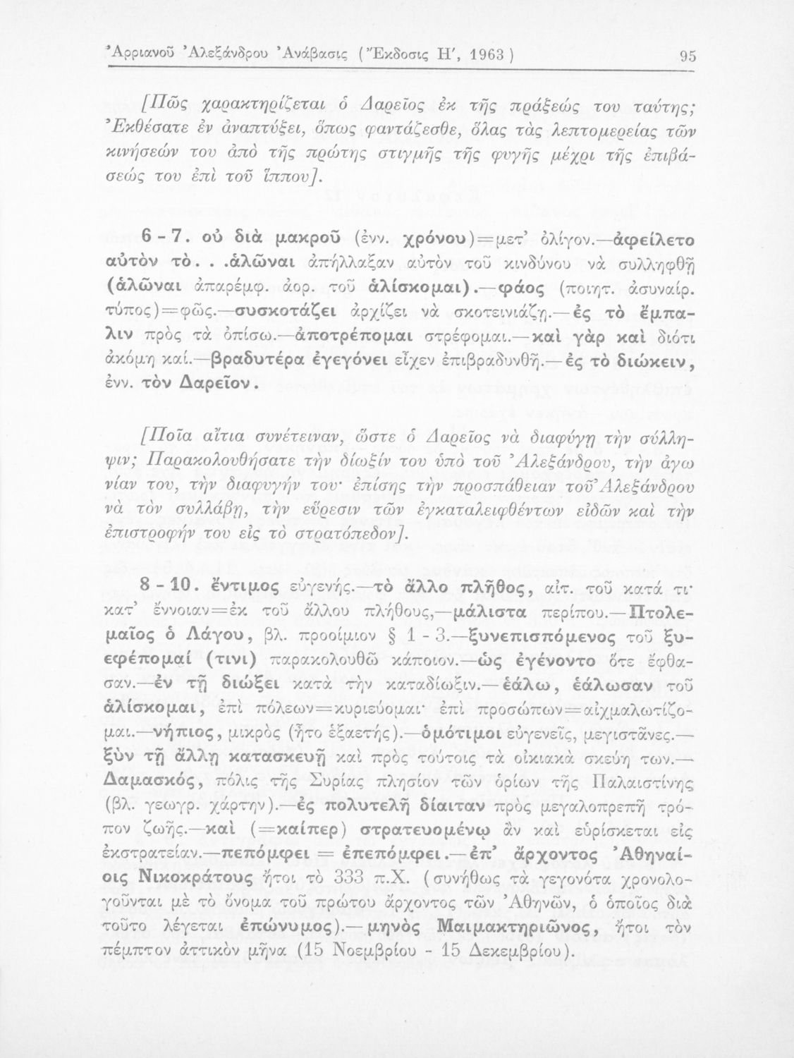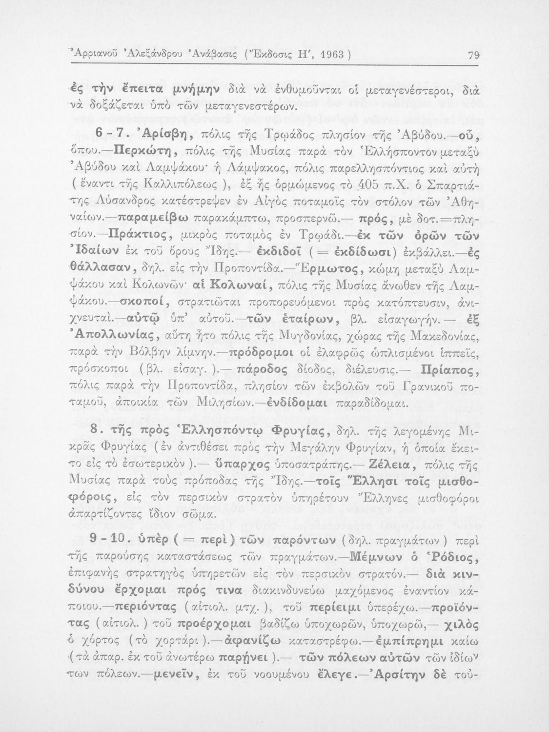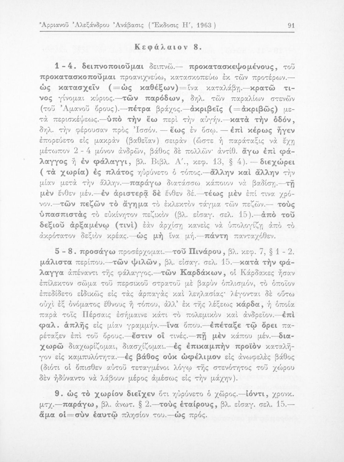 Σχολικό εγχειρίδιο Αρχαίων Ελληνικών που περιλαμβάνει αποσπάσματα από το έργο του Αρριανού Αλέξανδρου Ανάβασις και του Ηρόδοτου Ιστορίαι, ερμηνευτικές και λεξιλογικές παρατηρήσεις καθώς και τοπογραφικούς πίνακες και χάρτες..