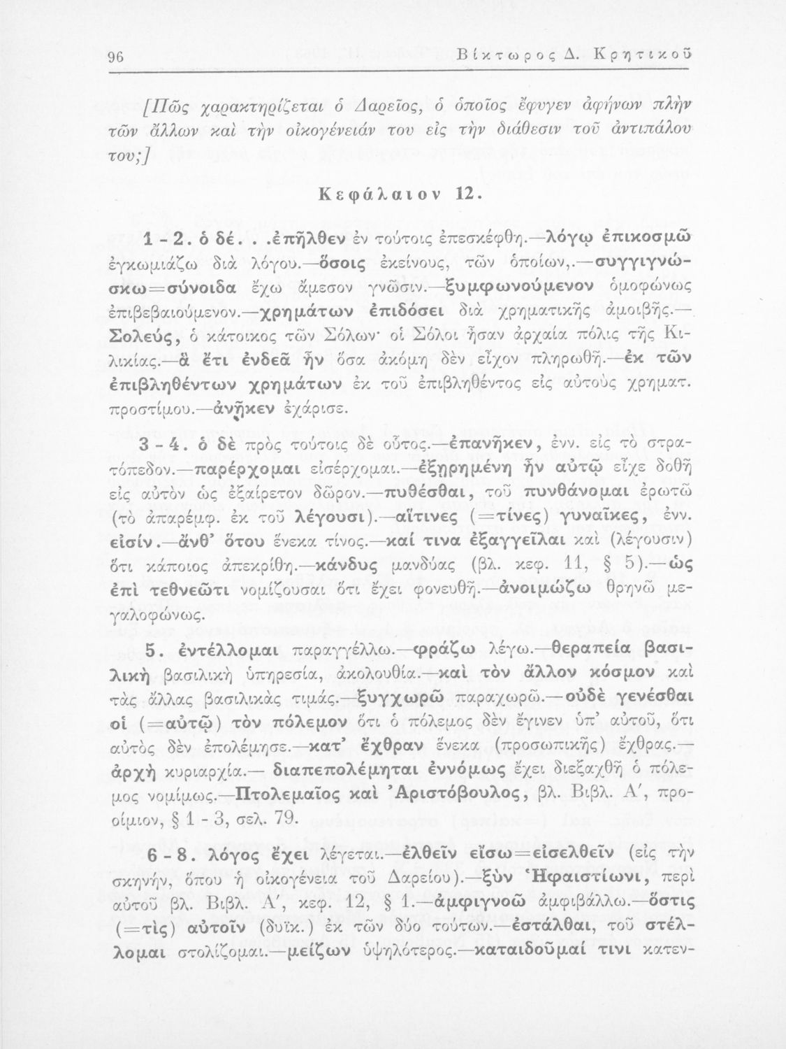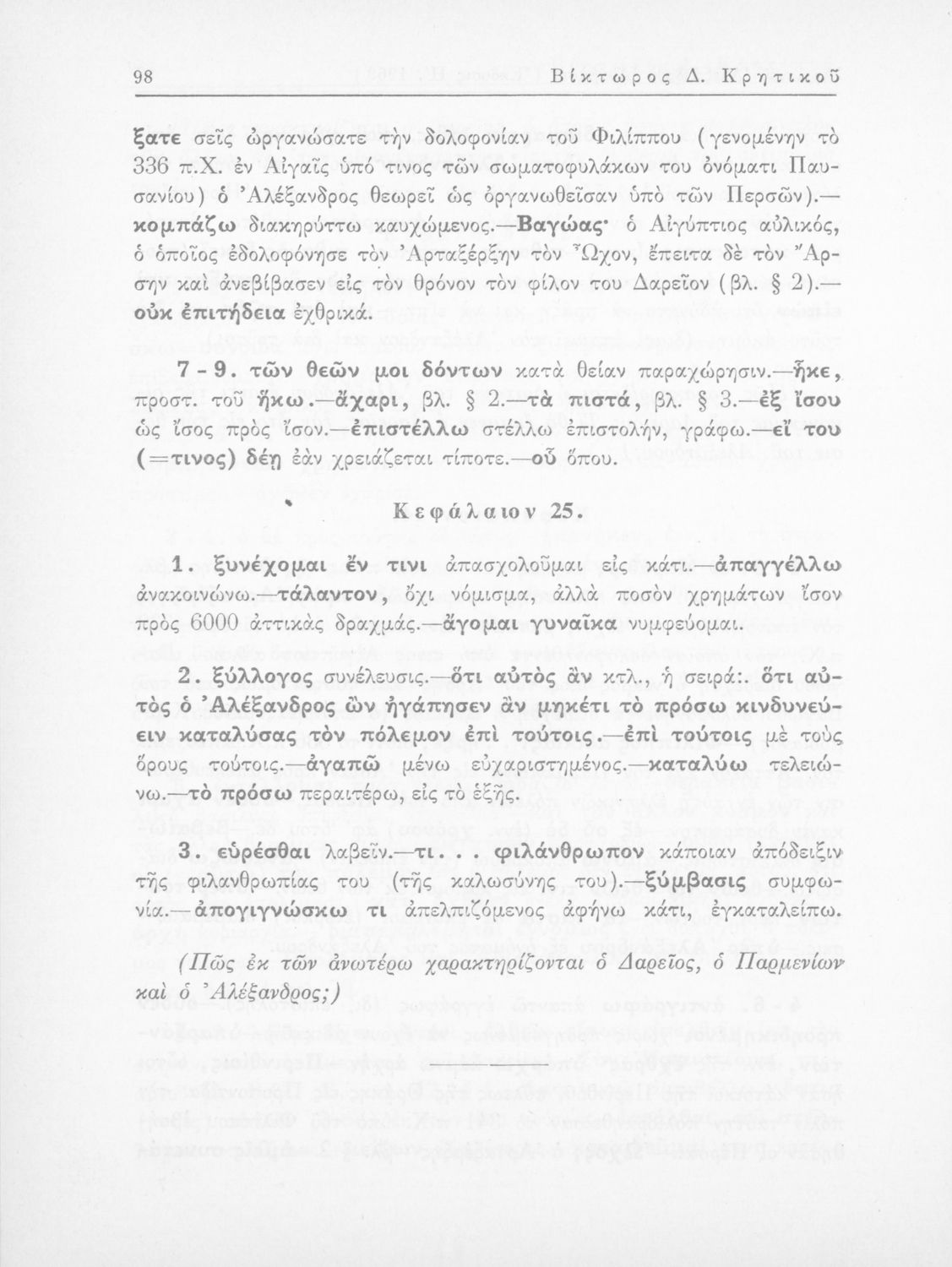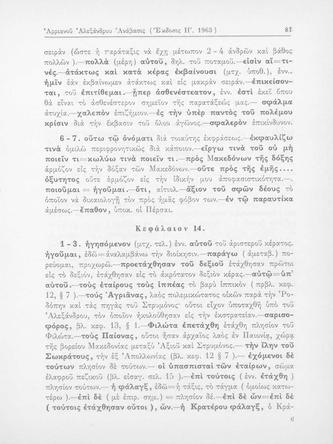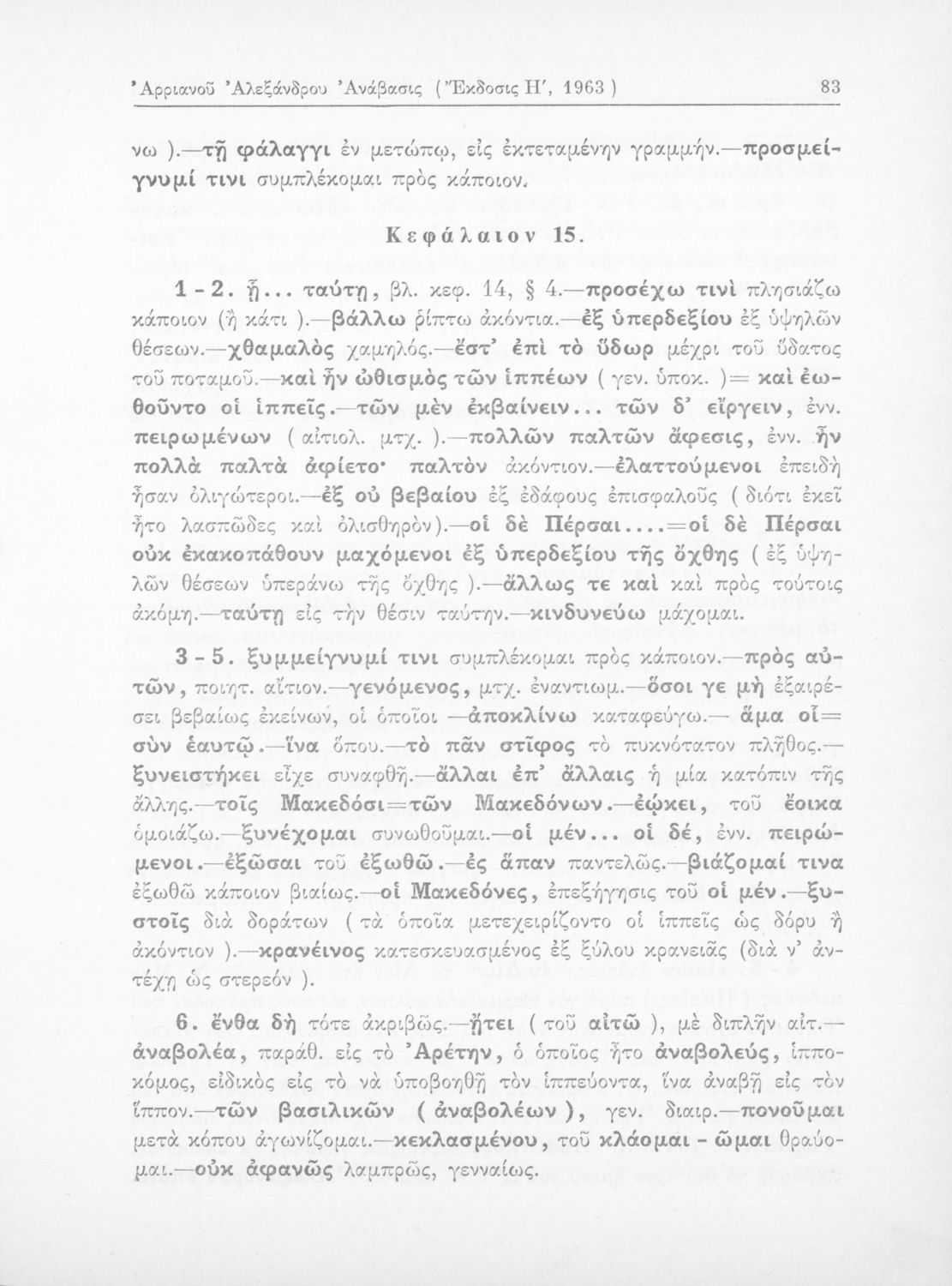 Σχολικό εγχειρίδιο Αρχαίων Ελληνικών που περιλαμβάνει αποσπάσματα από το έργο του Αρριανού Αλέξανδρου Ανάβασις και του Ηρόδοτου Ιστορίαι, ερμηνευτικές και λεξιλογικές παρατηρήσεις καθώς και τοπογραφικούς πίνακες και χάρτες..