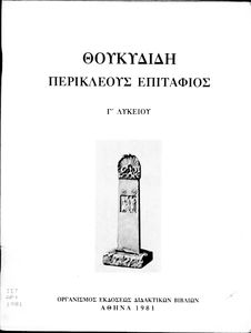 Σχολικό εγχειρίδιο Αρχαίων Ελληνικών Γ΄ Λυκείου που περιλαμβάνει τον Επιτάφιο του Περικλή, εισαγωγή στη ζωή και το έργο του Θουκυδίδη και ερμηνευτικές σημειώσεις.
