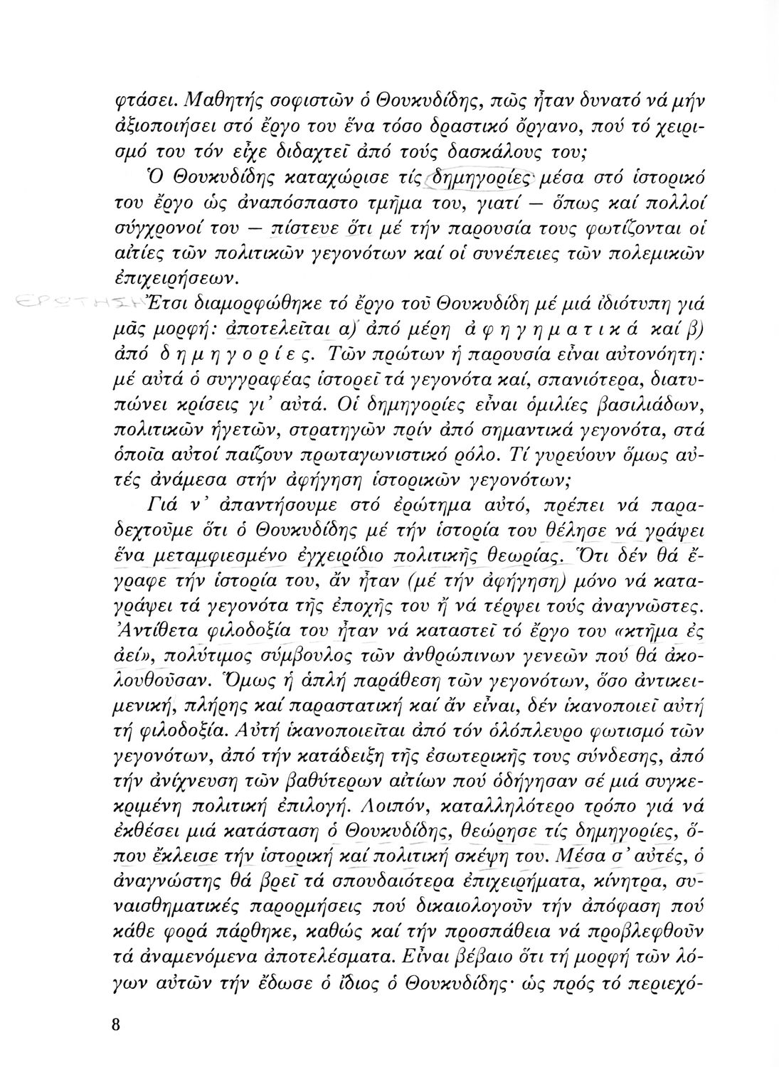 Σχολικό εγχειρίδιο Αρχαίων Ελληνικών Α΄, Β΄ και Γ΄ Λυκείου που περιέχει εισαγωγή στη ζωή και το έργο του Θουκυδίδη, αποσπάσματα από τα Πλαταιϊκά, τα Λεσβιακά και τον Επιτάφιο του Περικλή και ερμηνευτικές ...