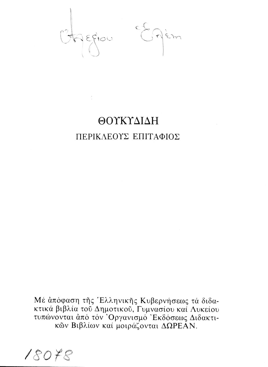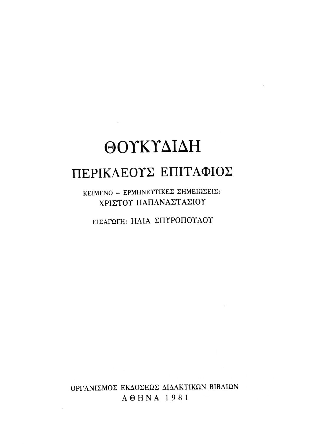 Τίτλος: Θουκυδίδη Περικλέους Επιτάφιος Γ΄ Λυκείου