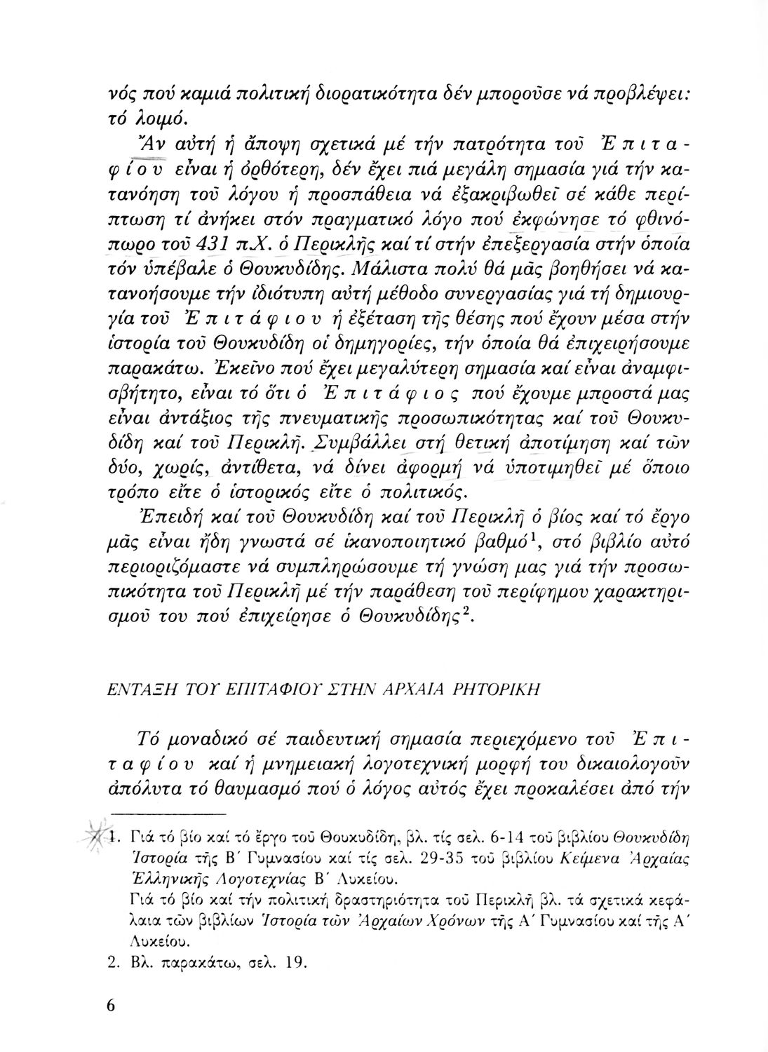 Μαθητικό βοήθημα Αρχαίων Ελληνικών Η' Γυμνασίου που περιέχει μετάφραση του Επιτάφιου του Περικλή, ερμηνευτικά και πραγματολογικά σχόλια και λεξιλογικές παρατηρήσεις.