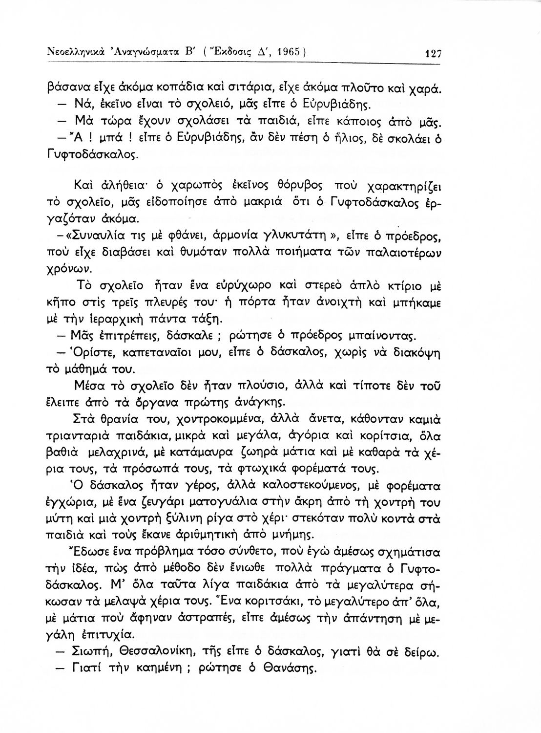 Σχολικό εγχειρίδιο της Β΄ Γυμνασίου για το μάθημα των Νέων Ελληνικών. Περιέχει κείμενα πεζά και διηγήματα από την κοινωνική ζωή, τη μυθολογία, την ελληνική ιστορία και τη φυσική ιστορία. Επίσης, περιλαμβάνει διηγήματα και ποιήματα γνωστών Ελλήνων λογοτεχνών. Μέσα από τα κείμενα καλλιεργούνται ηθικές αξίες και η εθνική συνείδηση των μαθητών.