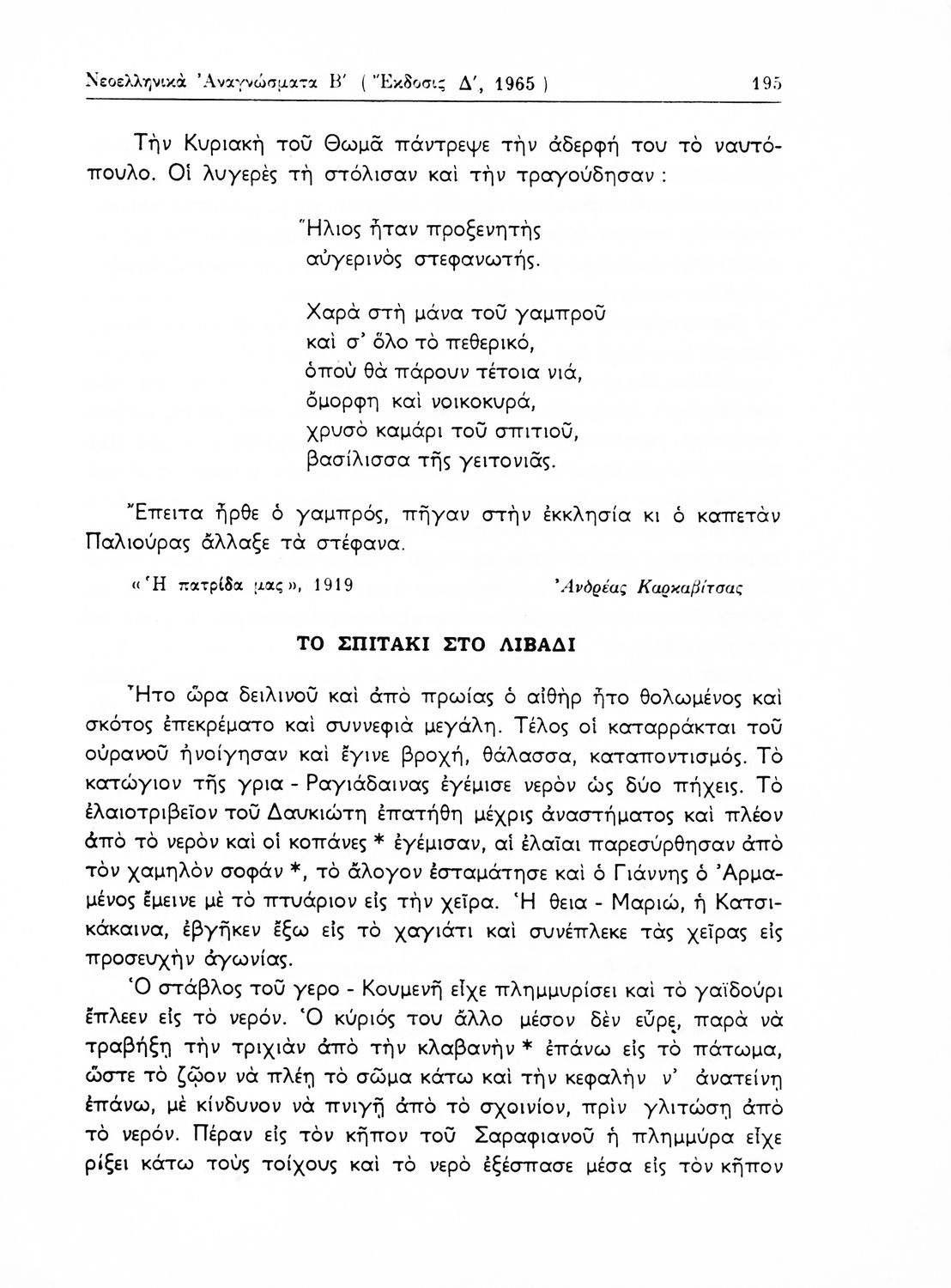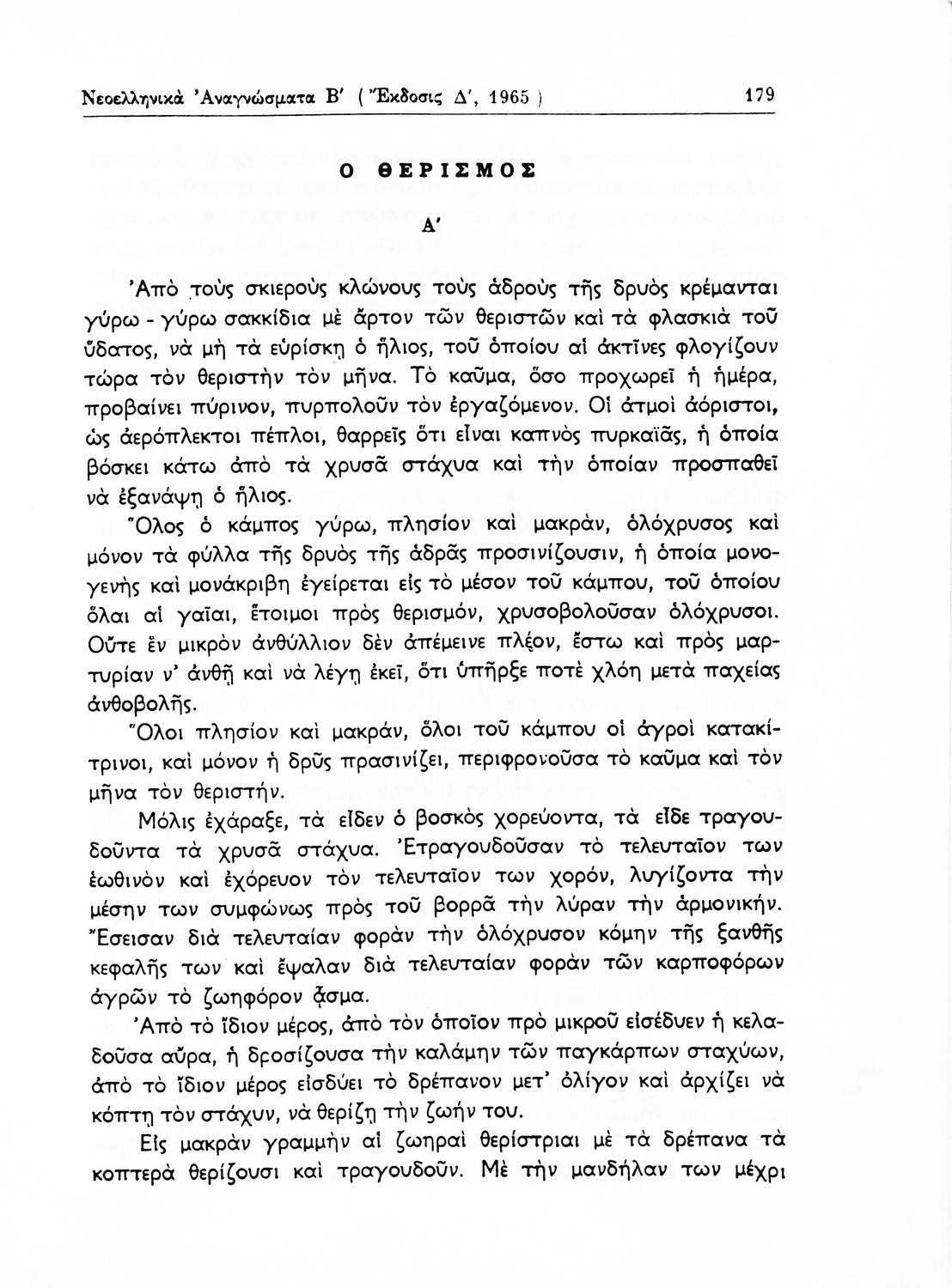 Βαθμίδα εκπαίδευσης: Δευτεροβάθμια Τάξη: Β' Γυμνασίου Μάθημα: Νέα Ελληνικά Γλώσσα: Απλή καθαρεύουσα Παρουσίαση περιεχομένου: Σχολικό εγχειρίδιο της Β΄ Γυμνασίου για το μάθημα των Νέων Ελληνικών. Περιέχει κείμενα πεζά και διηγήματα από την κοινωνική ζωή, τη μυθολογία, την ελληνική ιστορία και τη φυσική ιστορία. Επίσης, περιλαμβάνει διηγήματα και ποιήματα γνωστών Ελλήνων λογοτεχνών. Μέσα από τα κείμενα καλλιεργούνται ηθικές αξίες και η εθνική συνείδηση των μαθητών. |