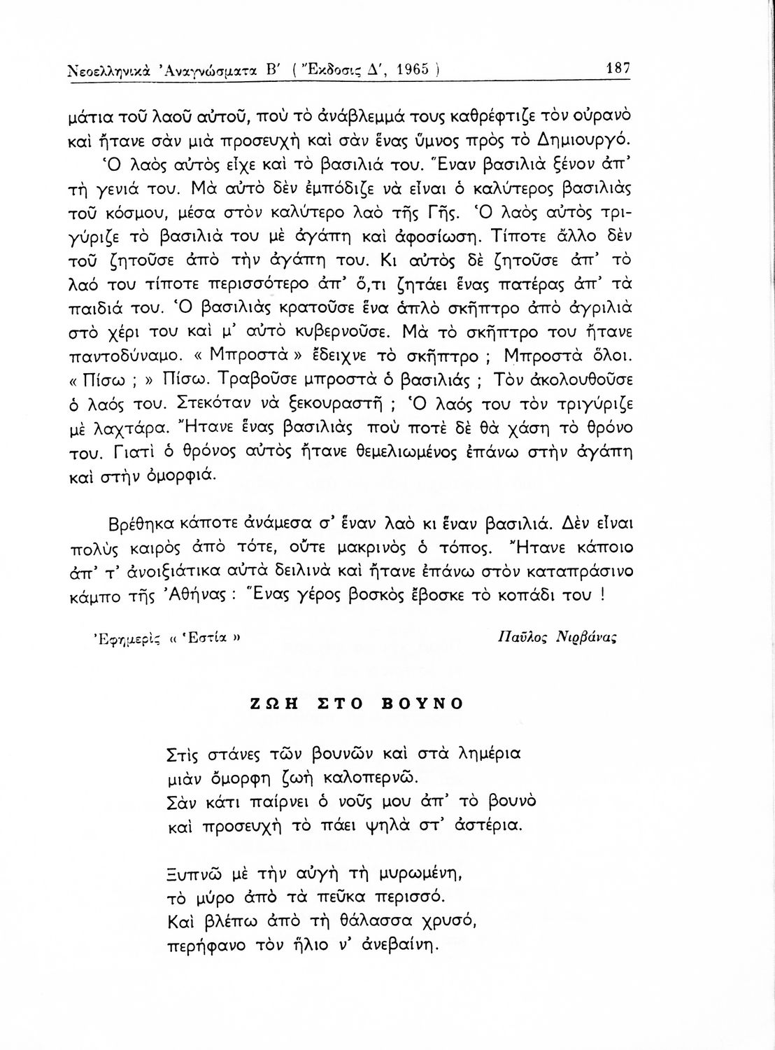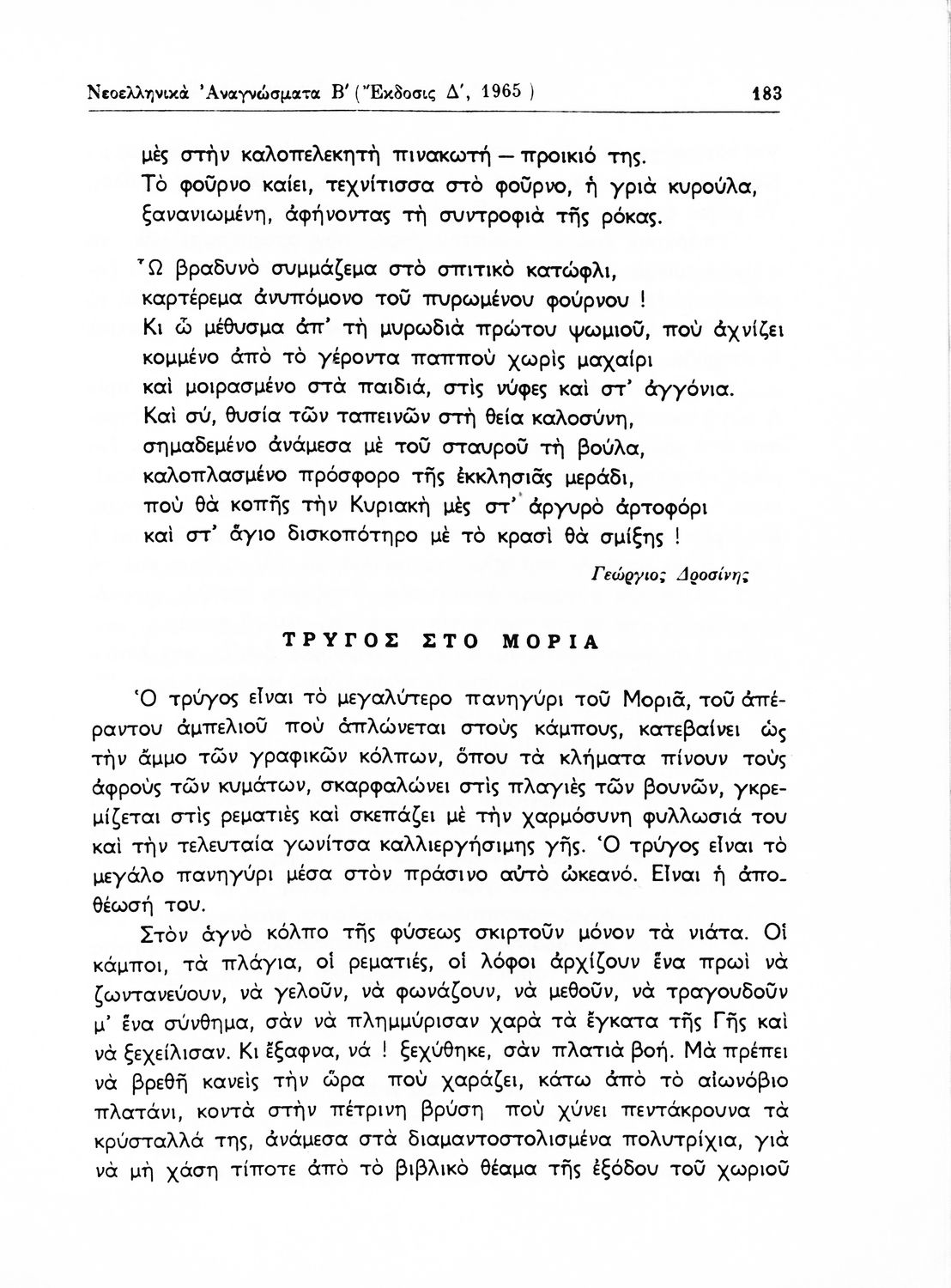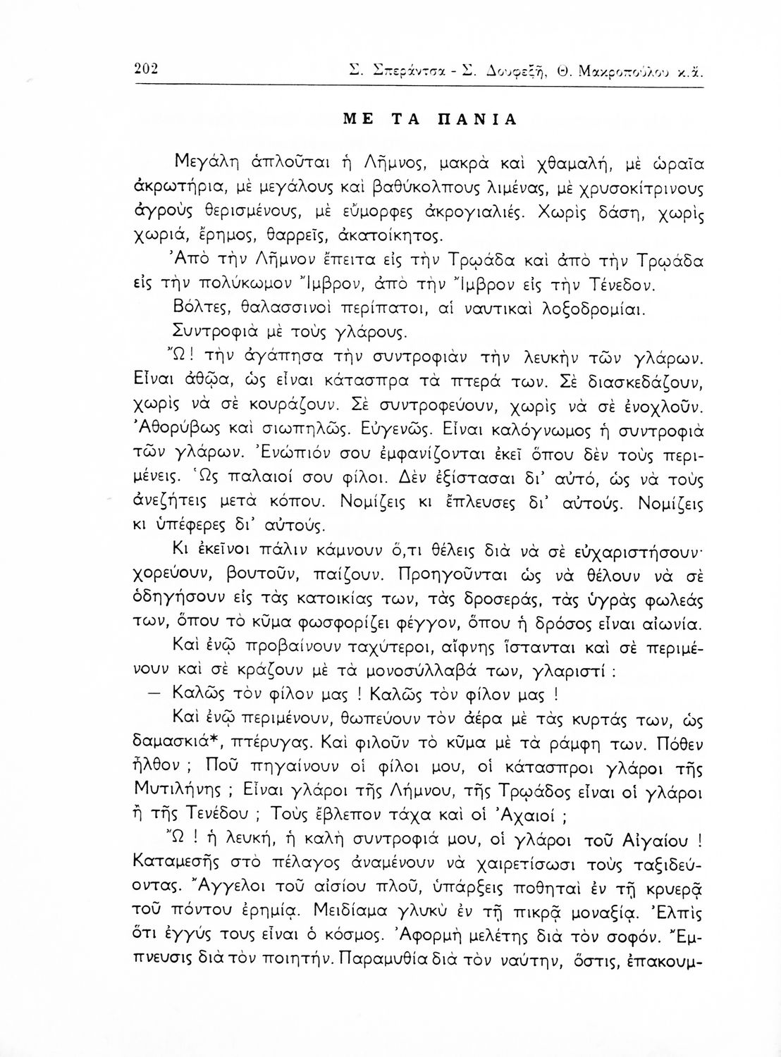 Σχολικό εγχειρίδιο της Β΄ Γυμνασίου για το μάθημα των Νέων Ελληνικών. Περιέχει κείμενα πεζά και διηγήματα από την κοινωνική ζωή, τη μυθολογία, την ελληνική ιστορία και τη φυσική ιστορία. Επίσης, περιλαμβάνει διηγήματα και ποιήματα γνωστών Ελλήνων λογοτεχνών. Μέσα από τα κείμενα καλλιεργούνται ηθικές αξίες και η εθνική συνείδηση των μαθητών.