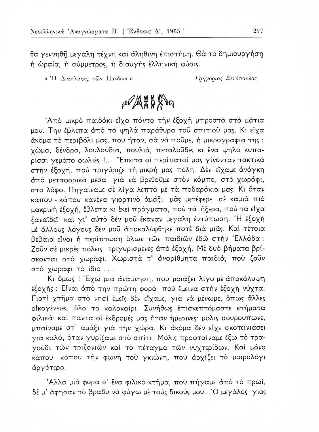 Σχολικό εγχειρίδιο της Β΄ Γυμνασίου για το μάθημα των Νέων Ελληνικών. Περιέχει κείμενα πεζά και διηγήματα από την κοινωνική ζωή, τη μυθολογία, την ελληνική ιστορία και τη φυσική ιστορία. Επίσης, περιλαμβάνει διηγήματα και ποιήματα γνωστών Ελλήνων λογοτεχνών. Μέσα από τα κείμενα καλλιεργούνται ηθικές αξίες και η εθνική συνείδηση των μαθητών.