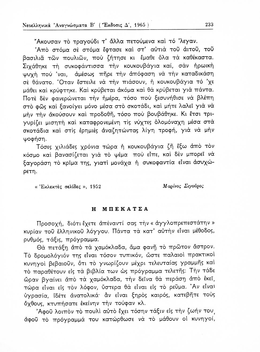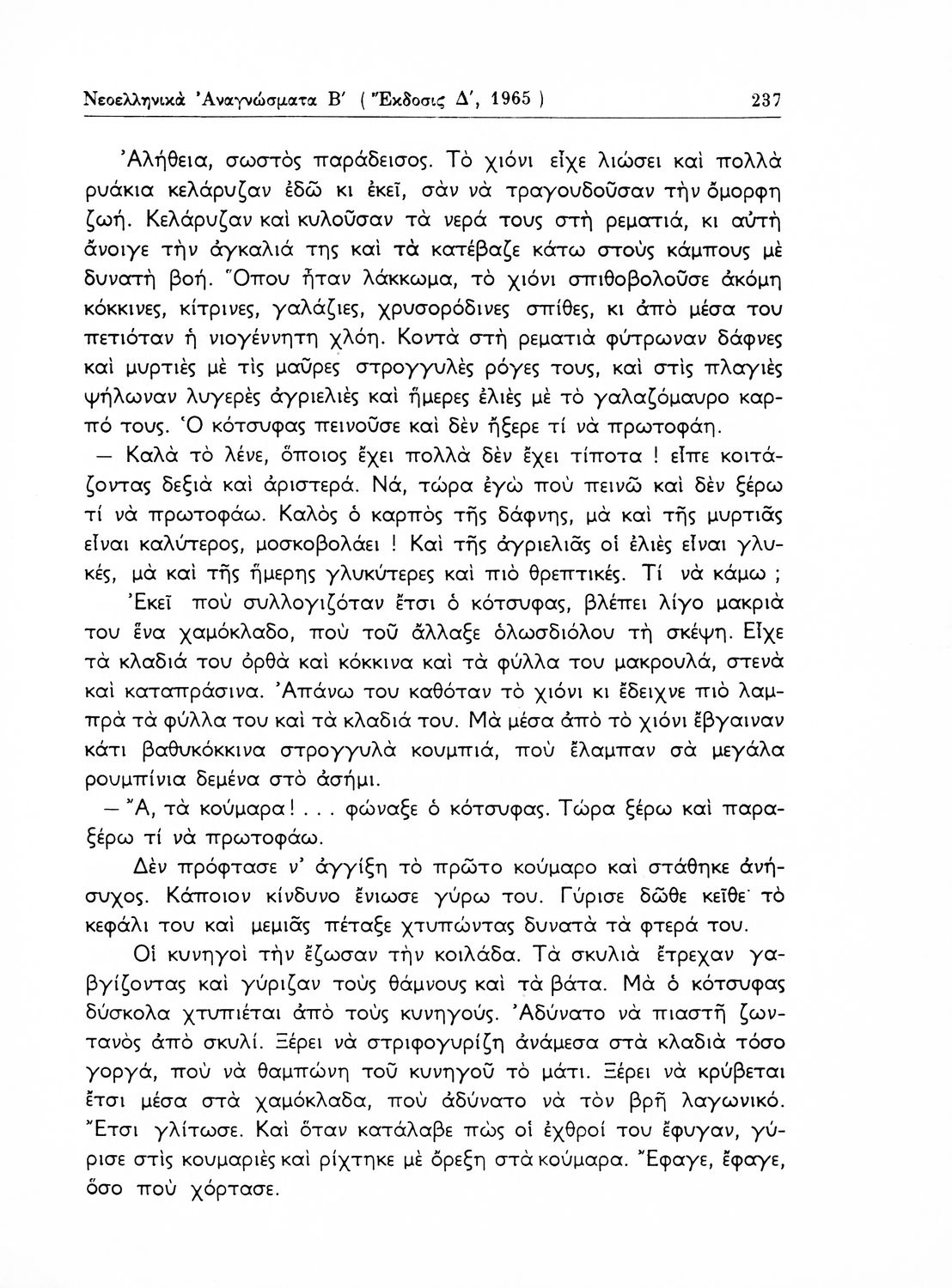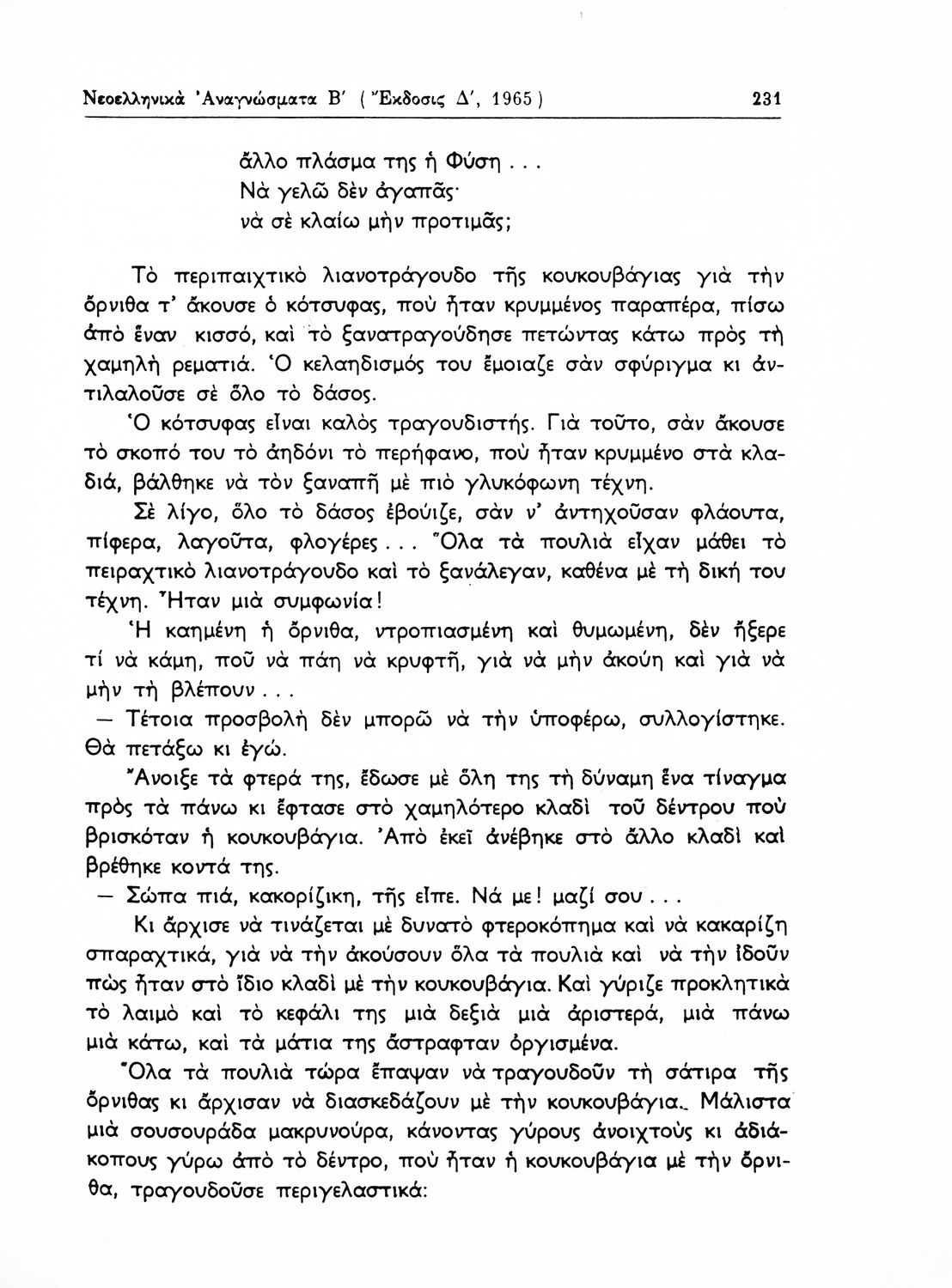 Σχολικό εγχειρίδιο Νέων Ελληνικών Δ΄ Γυμνασίου και Β΄ Αστικού Σχολείου που περιέχει πεζά και ποιήματα Ελλήνων συγγραφέων εμπνευσμένα από τη θρησκευτική και κοινωνική ζωή, την ελληνική μυθολογία, την αρχαία και