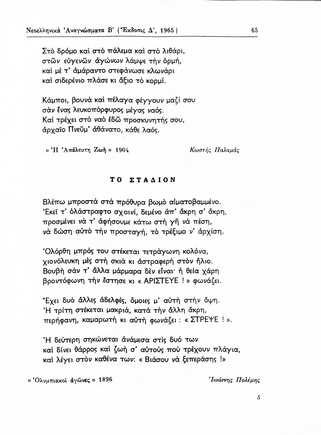 Σχετιζόμενοι όροι:  Κρυστάλλης, Παλαμάς, Σολωμός, Δροσίνης