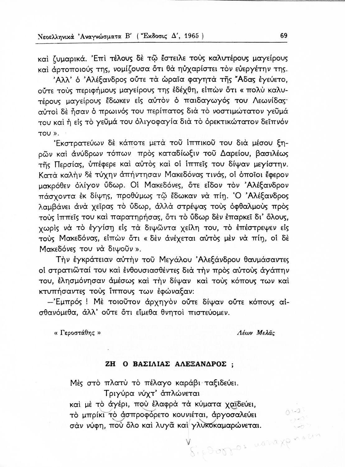 Σχολικό εγχειρίδιο Νέων Ελληνικών Β΄ Εξαταξίου Γυμνασίου που περιλαμβάνει που περιλαμβάνει ποιήματα και πεζά Ελλήνων συγγραφέων εμπνευσμένα από την αρχαία και σύγχρονη ελληνική ιστορία, την ελληνική φύση και ...