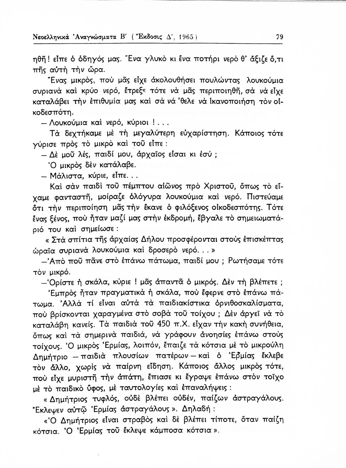 Σχολικό εγχειρίδιο Νέων Ελληνικών Δ΄ Γυμνασίου και Β΄ Αστικού Σχολείου που περιέχει πεζά και ποιήματα Ελλήνων συγγραφέων εμπνευσμένα από τη θρησκευτική και κοινωνική ζωή, την ελληνική μυθολογία, την αρχαία και