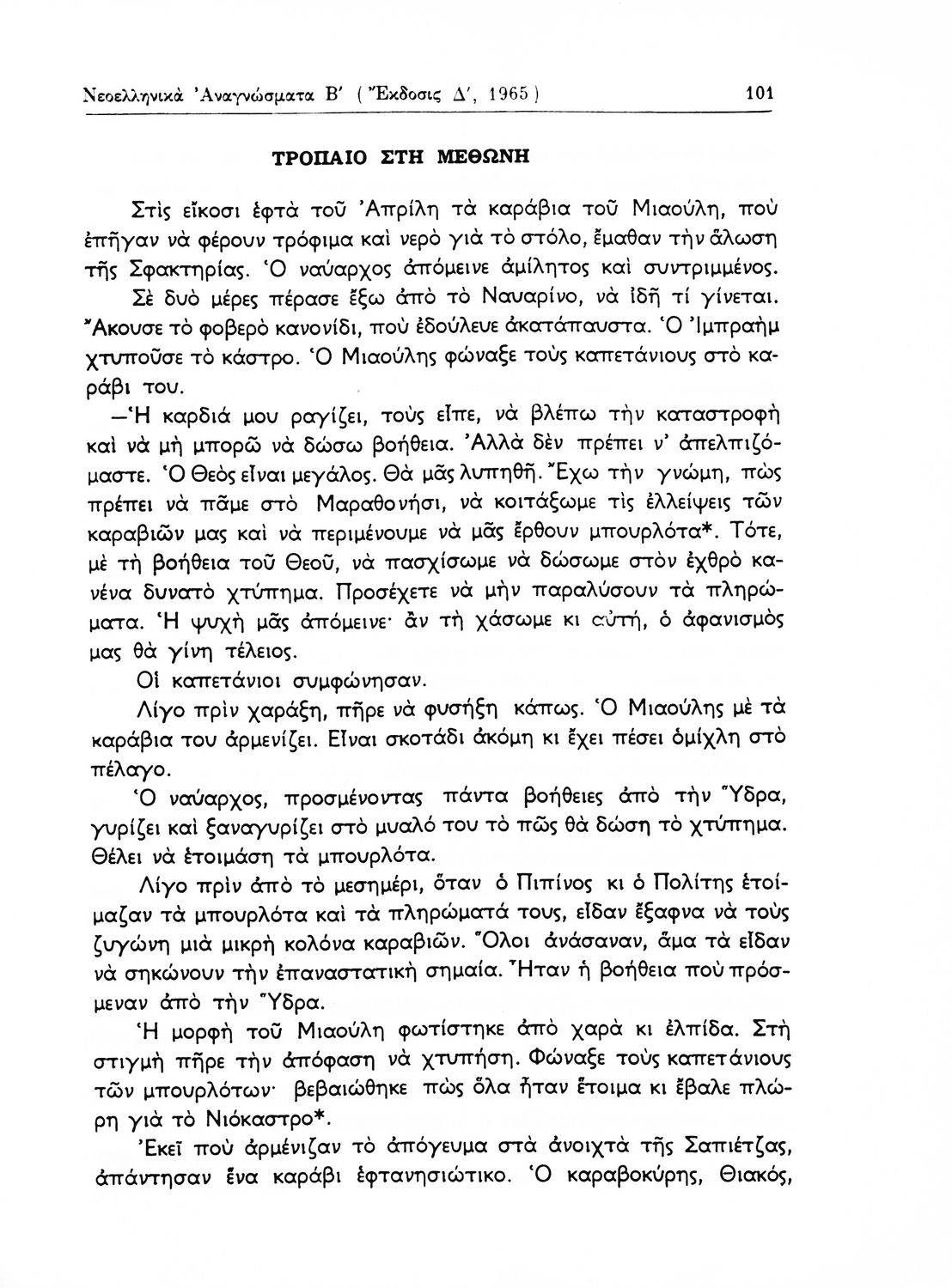 Σχολικό εγχειρίδιο της Β΄ Γυμνασίου για το μάθημα των Νέων Ελληνικών. Περιέχει κείμενα πεζά και διηγήματα από την κοινωνική ζωή, τη μυθολογία, την ελληνική ιστορία και τη φυσική ιστορία. Επίσης, περιλαμβάνει διηγήματα και ποιήματα γνωστών Ελλήνων λογοτεχνών. Μέσα από τα κείμενα καλλιεργούνται ηθικές αξίες και η εθνική συνείδηση των μαθητών.
