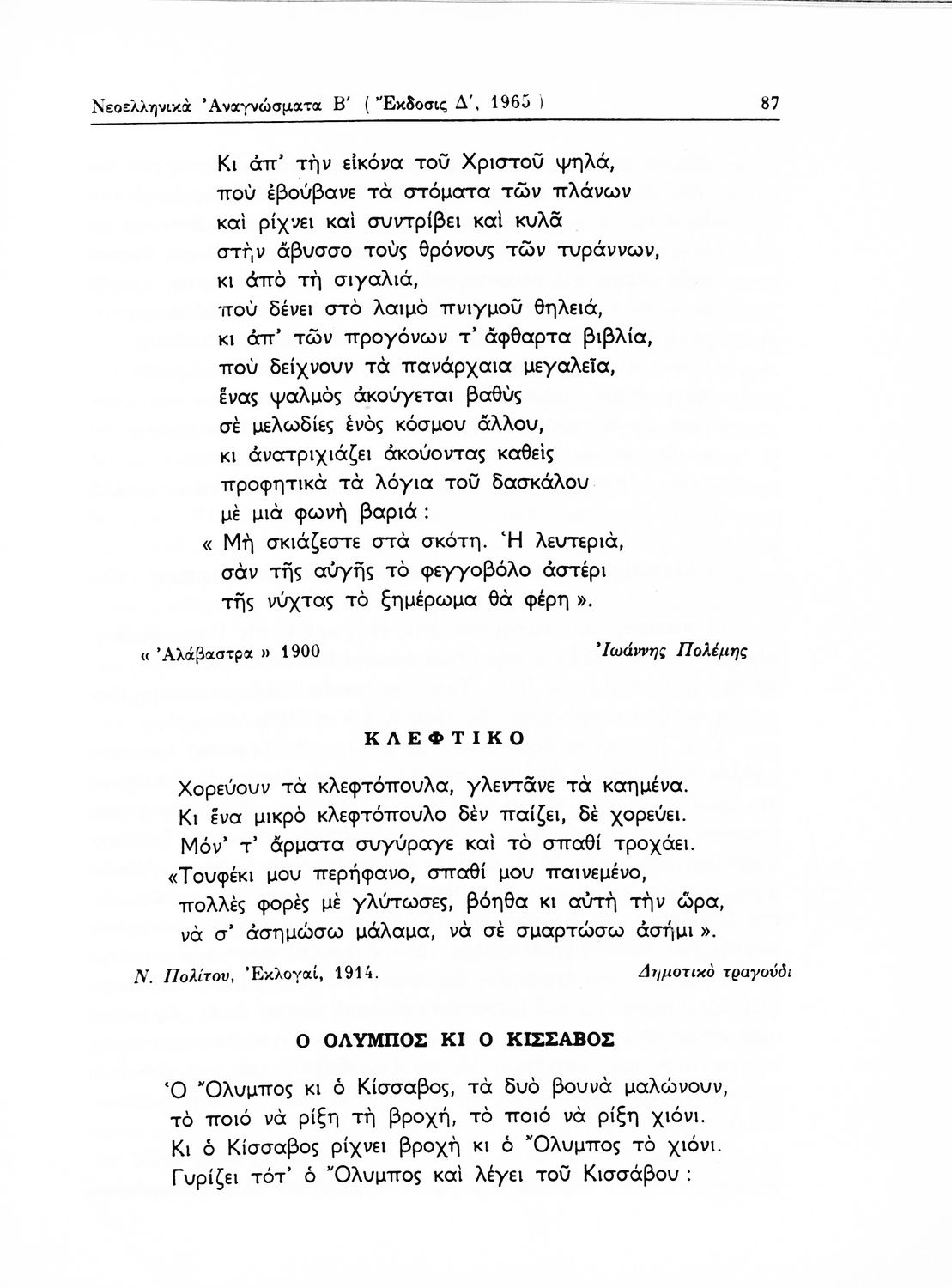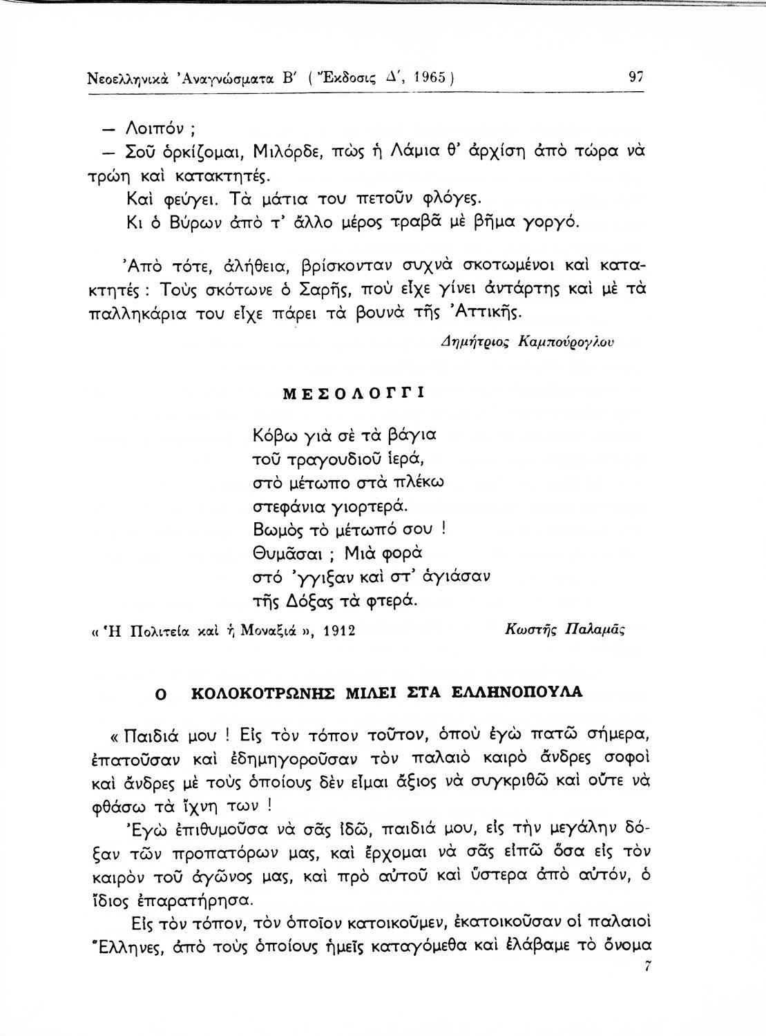 Σχετιζόμενοι όροι:  Κρυστάλλης, Παλαμάς, Σολωμός, Δροσίνης