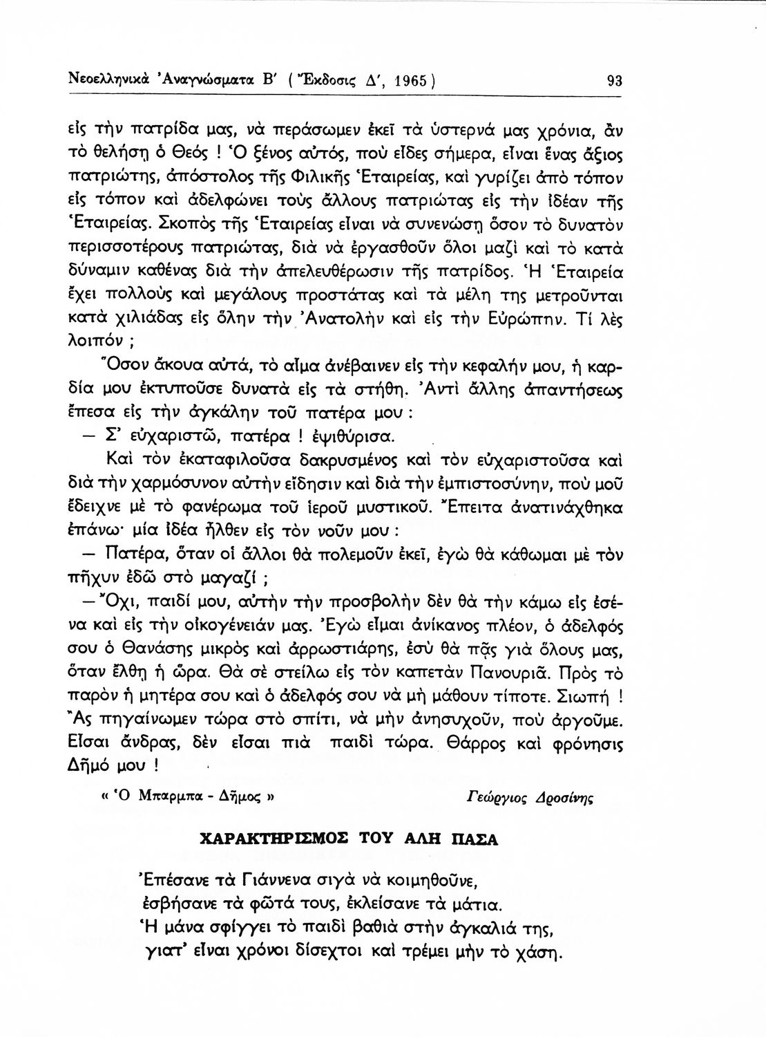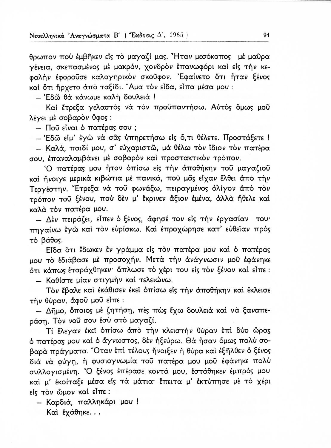 Σχολικό εγχειρίδιο Νέων Ελληνικών Δ΄ Γυμνασίου και Β΄ Αστικού Σχολείου που περιέχει πεζά και ποιήματα Ελλήνων συγγραφέων εμπνευσμένα από τη θρησκευτική και κοινωνική ζωή, την ελληνική μυθολογία, την αρχαία και