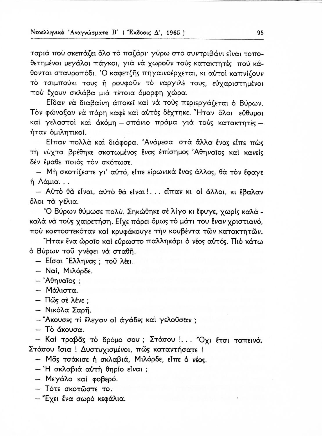 Σχολικό εγχειρίδιο Νέων Ελληνικών Β΄ Εξατάξιου Γυμνασίου που περιλαμβάνει ποιήματα και πεζά Ελλήνων συγγραφέων και δημοτικά τραγούδια εμπνευσμένα από την σύγχρονη ελληνική ιστορία, τη βυζαντινή ιστορία, την ...