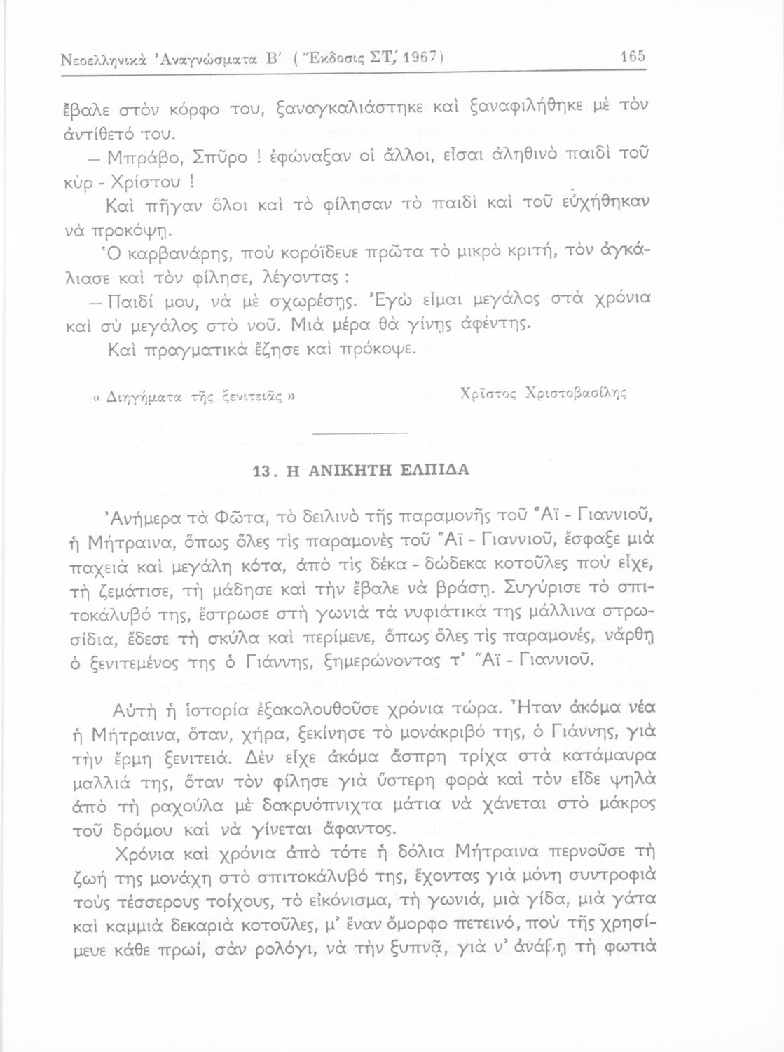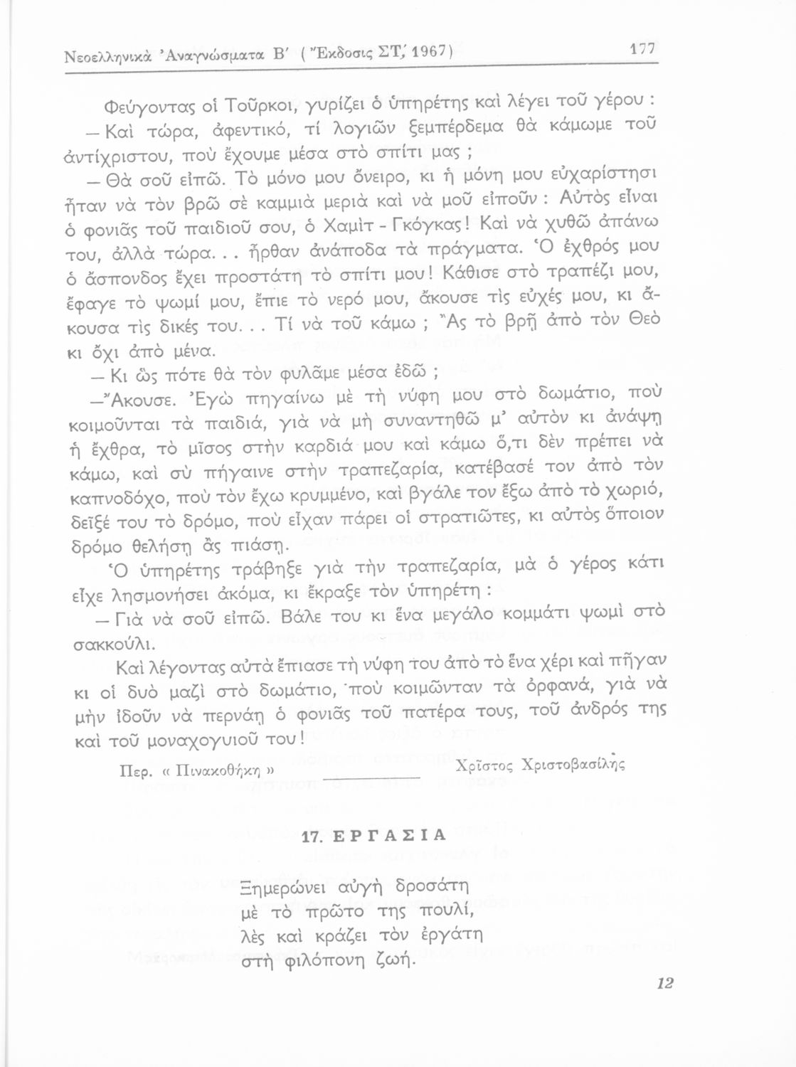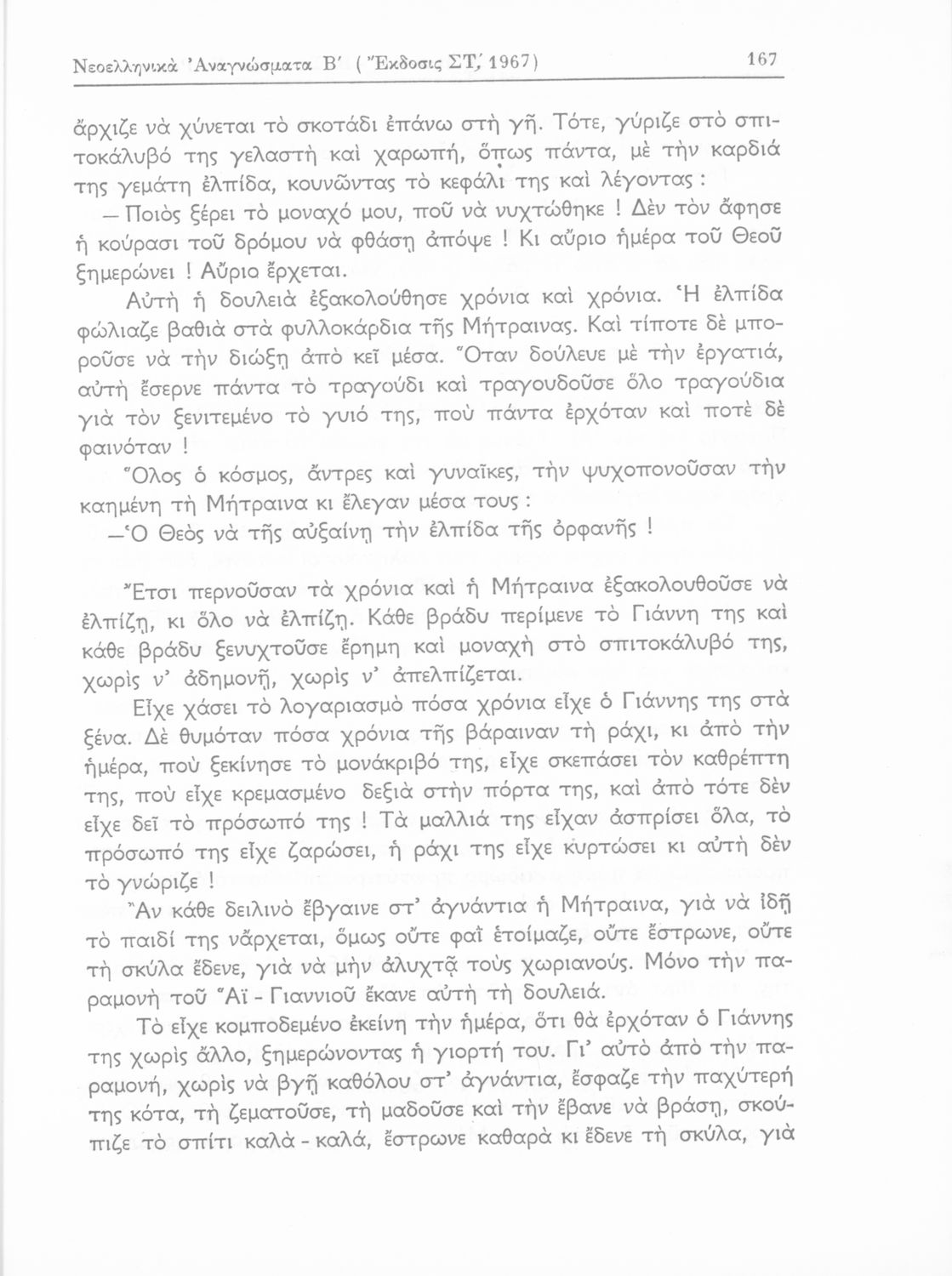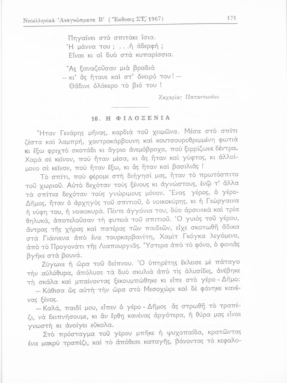 Σχολικό εγχειρίδιο Νέων Ελληνικών Δ΄ Γυμνασίου και Β΄ Αστικού Σχολείου που περιέχει πεζά και ποιήματα Ελλήνων συγγραφέων εμπνευσμένα από τη θρησκευτική και κοινωνική ζωή, την ελληνική μυθολογία, την αρχαία και