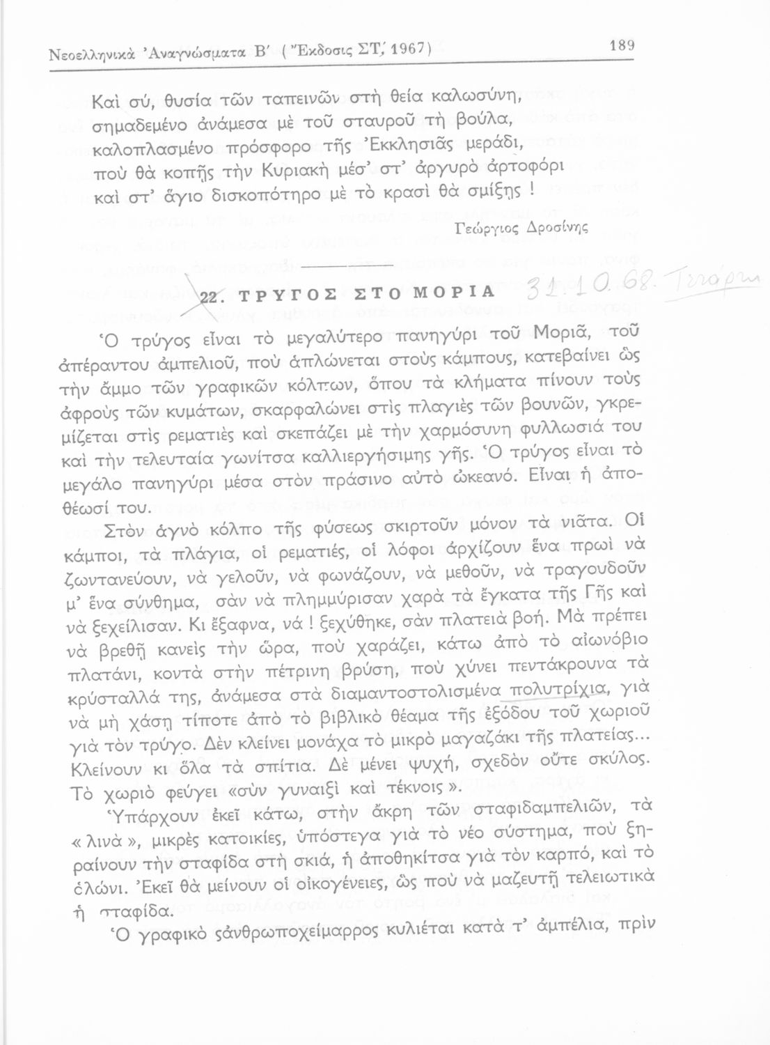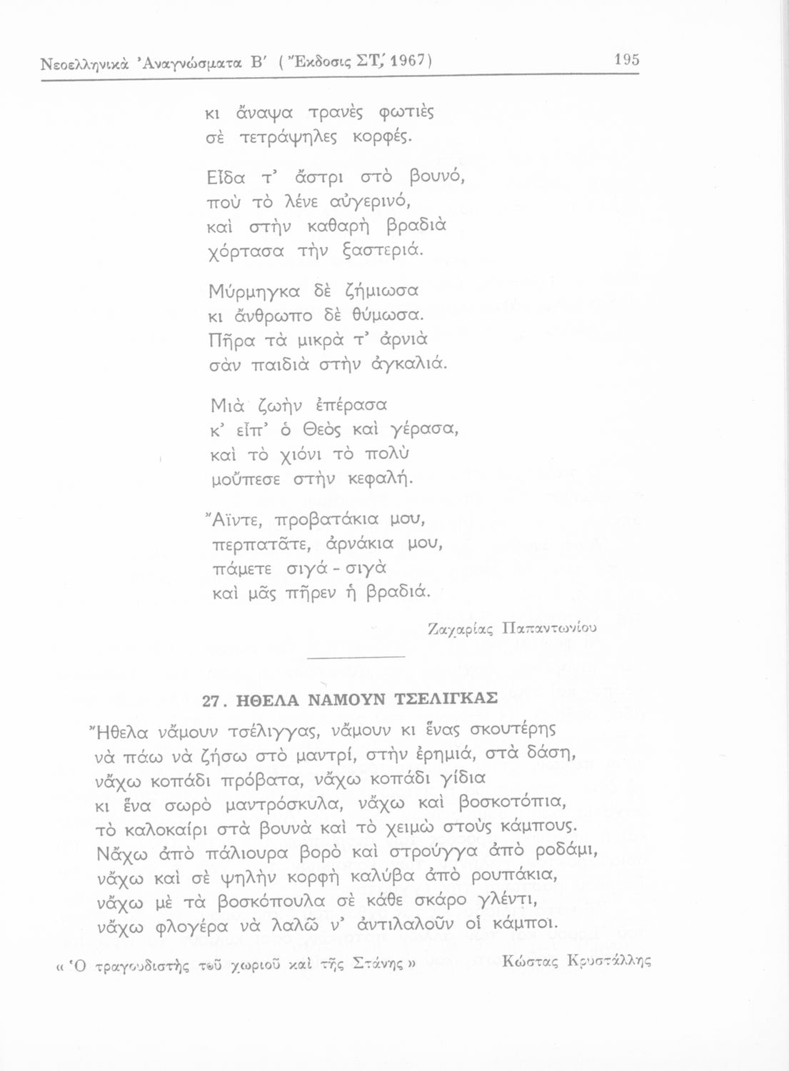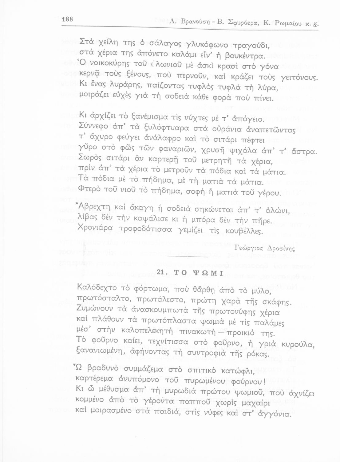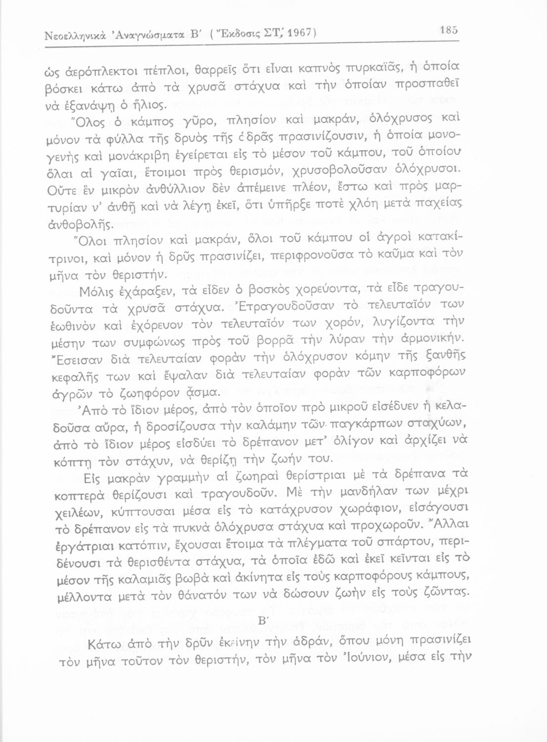 Σχολικό εγχειρίδιο Νέων Ελληνικών Β' Γυμνασίου που περιέχει ποιήματα και πεζά Ελλήνων συγγραφέων εμπνευσμένα από τη θρησκευτική, εθνική, οικογενειακή και κοινωνική ζωή και την ελληνική φύση. Περιέχει παράρτημα με βιογραφίες των συγγραφέων και λεξιλόγιο.