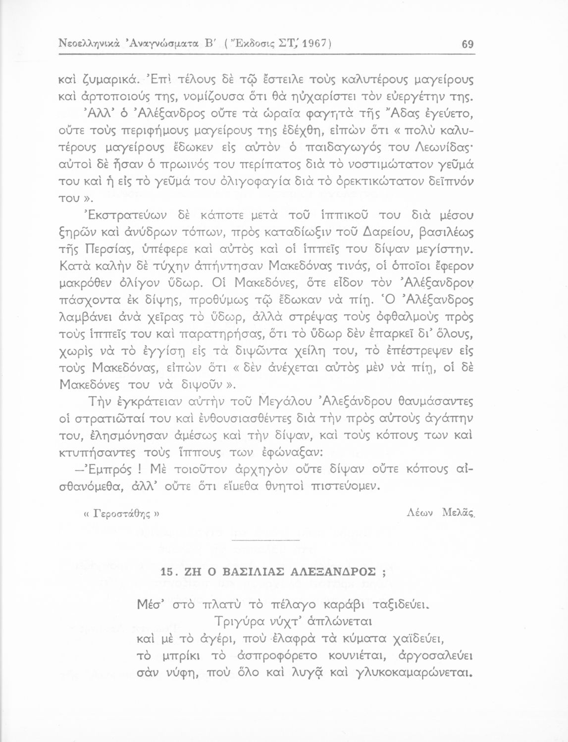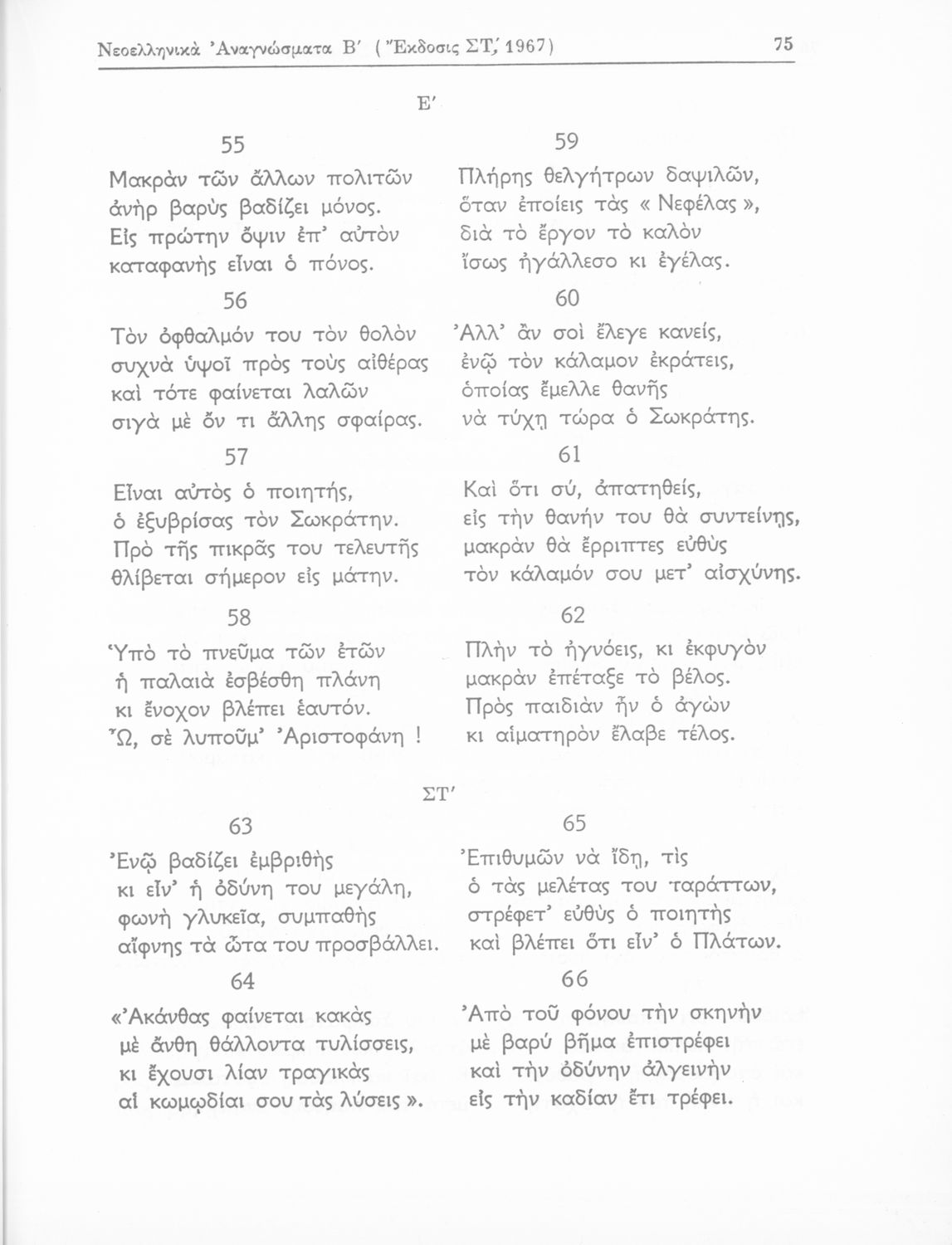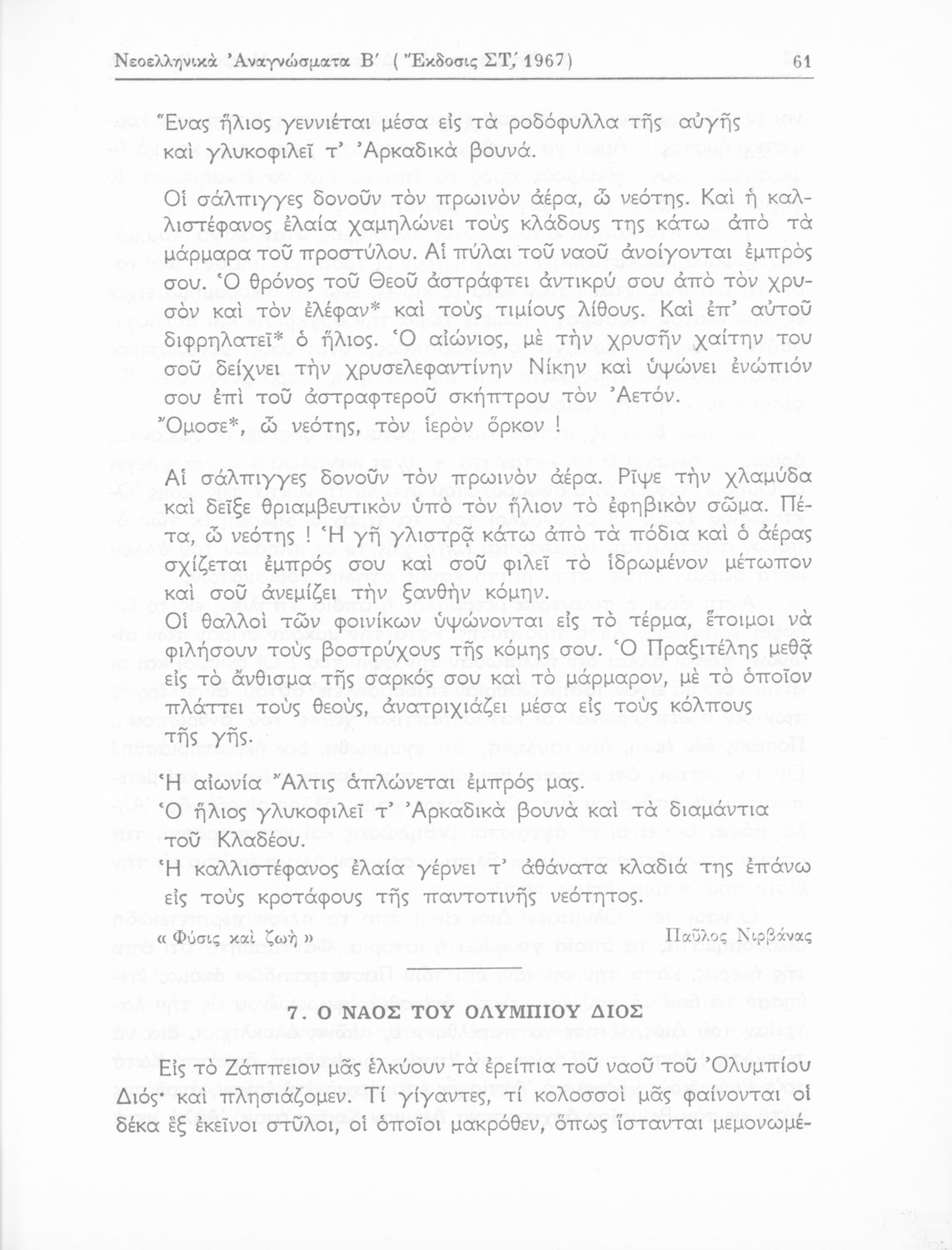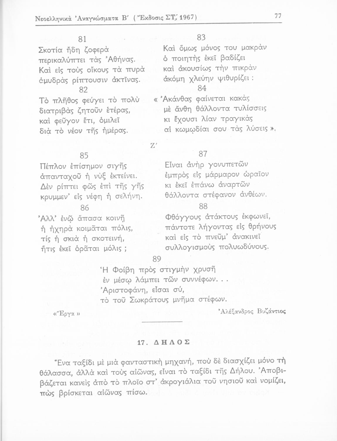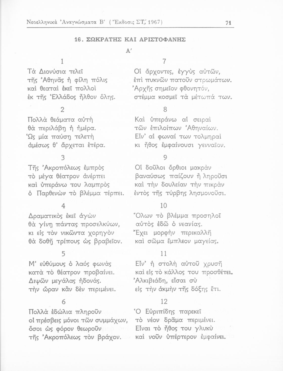 Σχολικό εγχειρίδιο Νέων Ελληνικών Β' Γυμνασίου που περιέχει ποιήματα και πεζά Ελλήνων συγγραφέων εμπνευσμένα από τη θρησκευτική, εθνική, οικογενειακή και κοινωνική ζωή και την ελληνική φύση. Περιέχει παράρτημα με βιογραφίες των συγγραφέων και λεξιλόγιο.