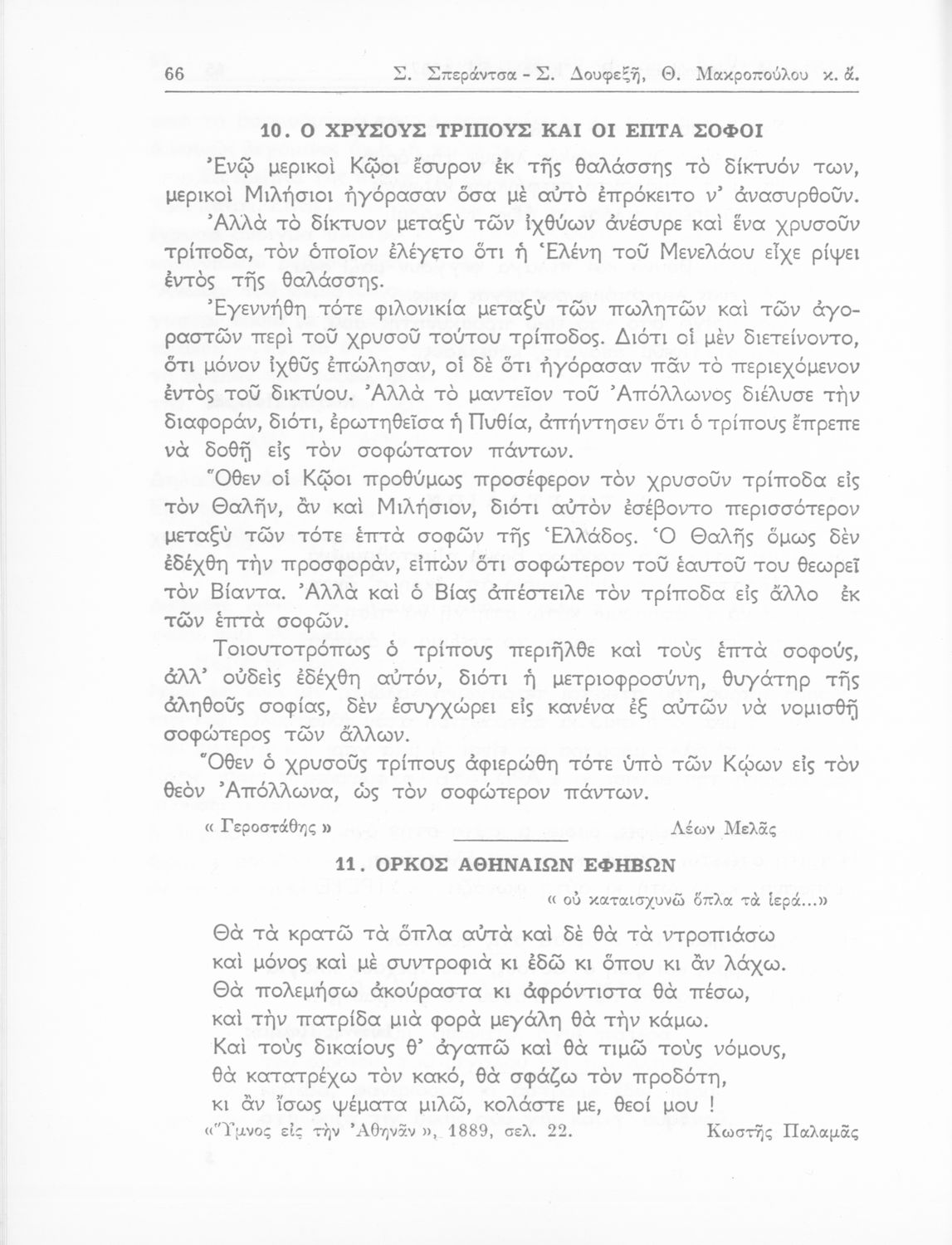 Βαθμίδα εκπαίδευσης: Δευτεροβάθμια Τάξη: Β' Γυμνασίου Μάθημα: Νέα Ελληνικά Γλώσσα: Καθαρεύουσα Παρουσίαση περιεχομένου: Σχολικό εγχειρίδιο Νέων Ελληνικών Β' Γυμνασίου που περιέχει ποιήματα και πεζά Ελλήνων συγγραφέων εμπνευσμένα από τη θρησκευτική, εθνική, οικογενειακή και κοινωνική ζωή και την ελληνική φύση. Περιέχει παράρτημα με βιογραφίες των συγγραφέων και λεξιλόγιο. |