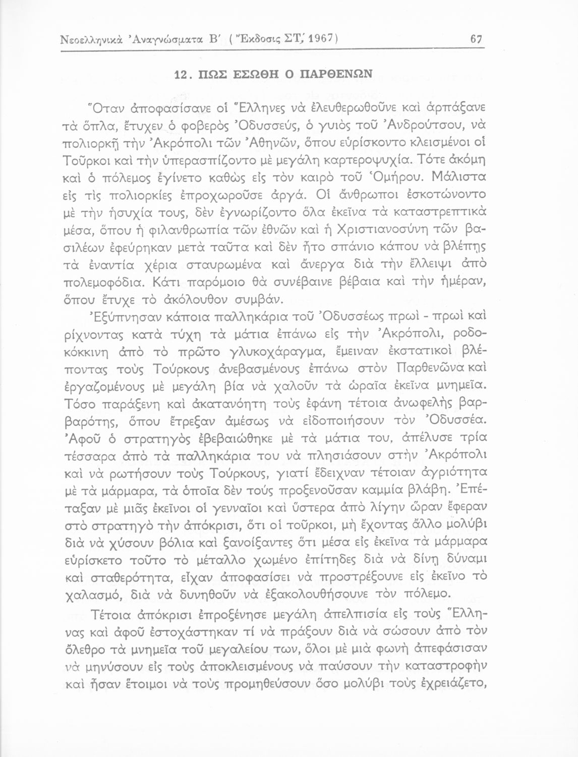 Εκδότης: Οργανισμός Εκδόσεως Διδακτικών Βιβλίων Έτος έκδοσης: 1967 Τόπος έκδοσης: Αθήνα Έκδοση: 6η Υπουργική απόφαση / Σύμβαση: 94090/8-7-1967 Έτος έγκρισης: 1967 |