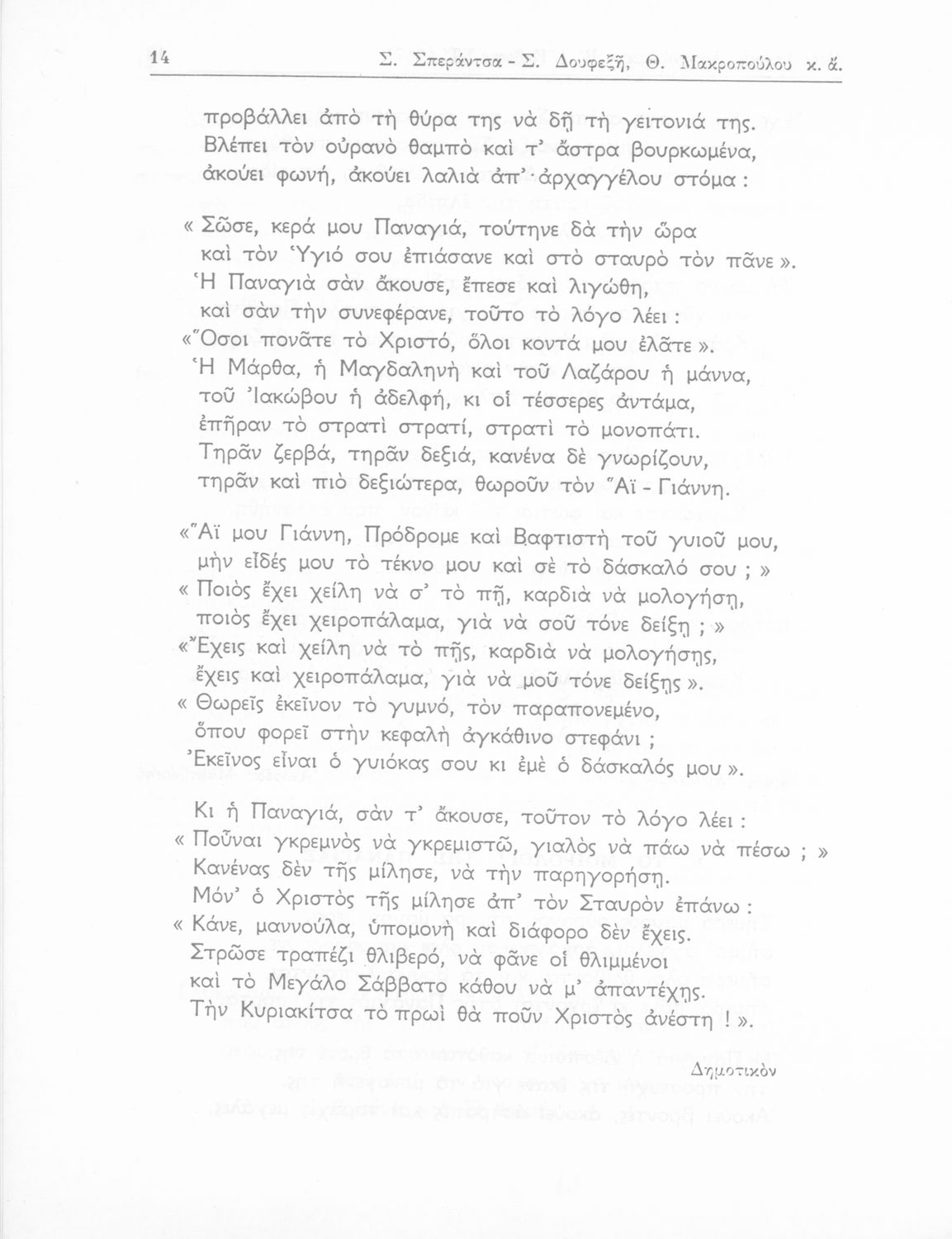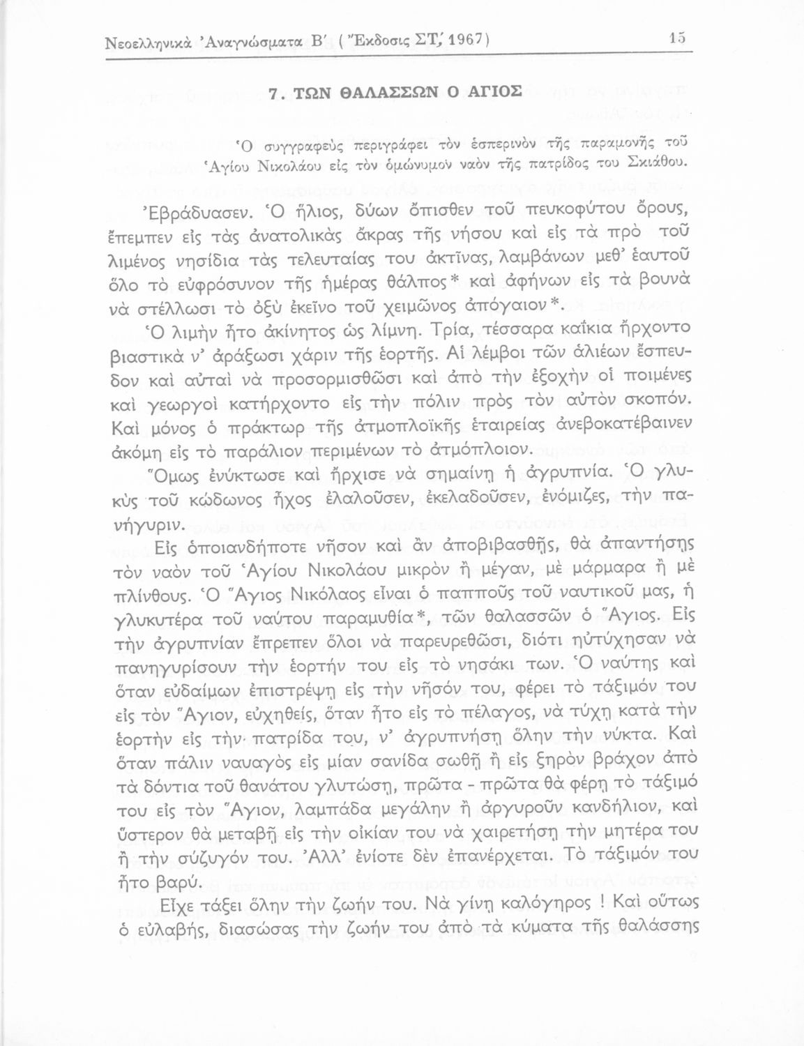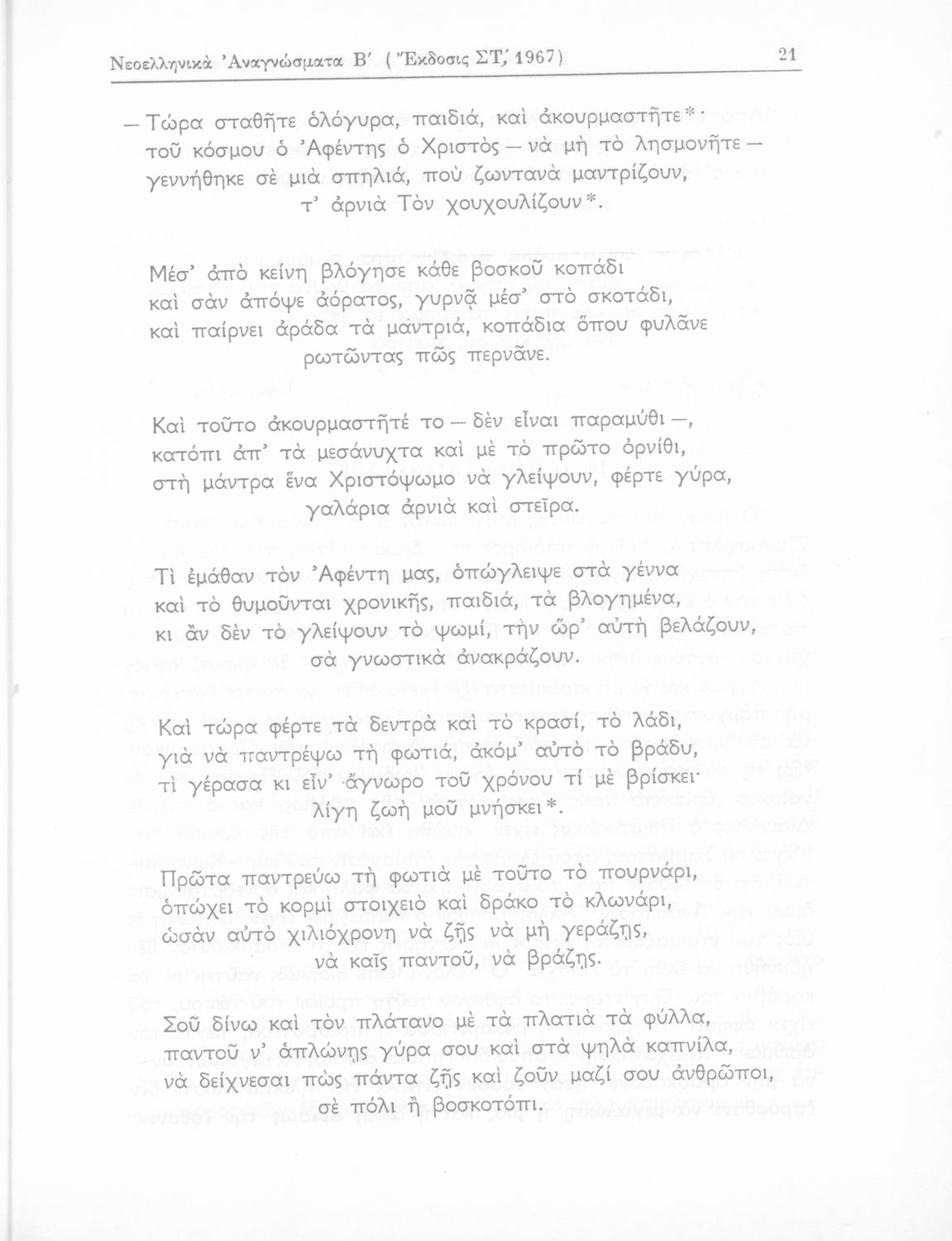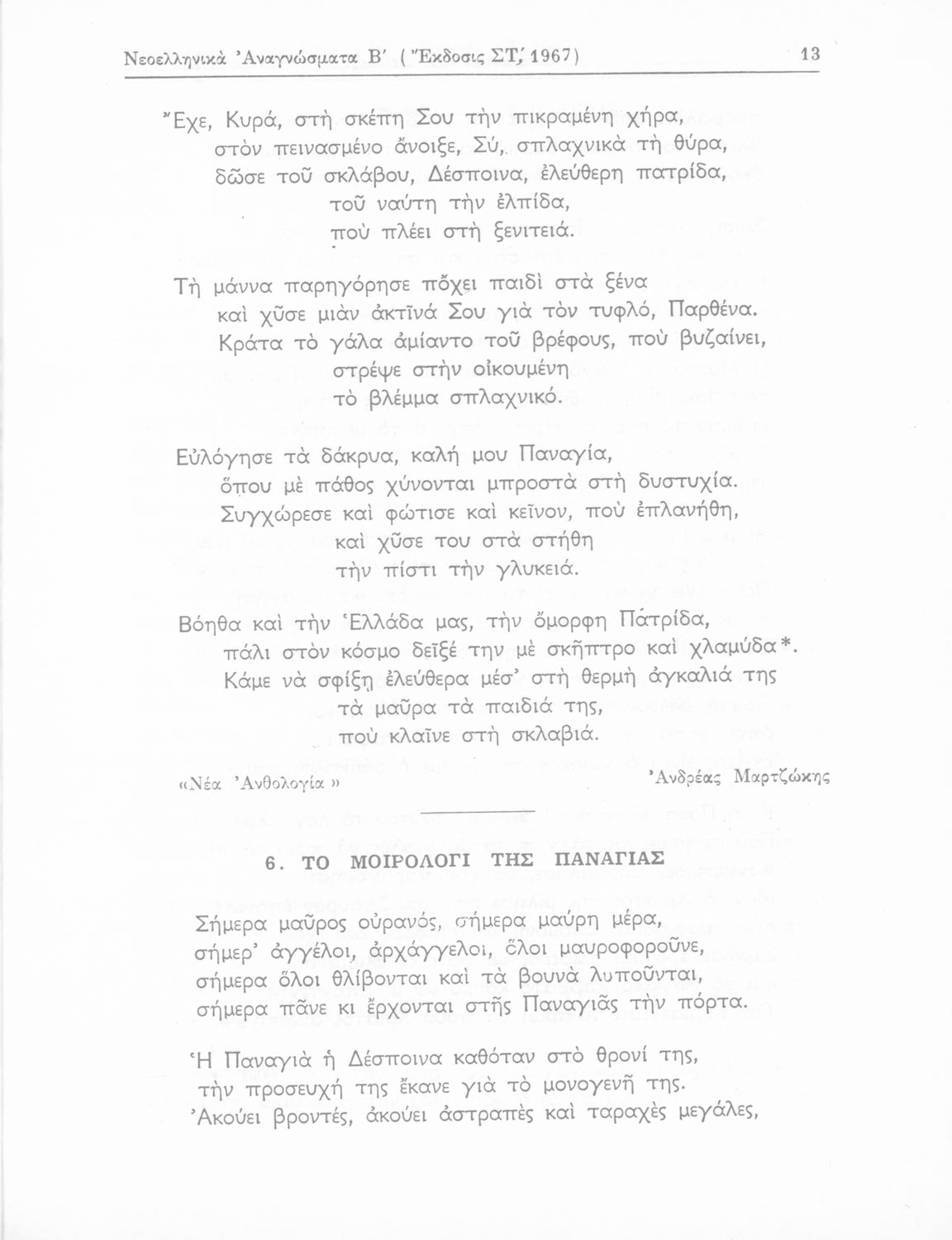 Σχολικό εγχειρίδιο Νέων Ελληνικών Δ΄ Γυμνασίου και Β΄ Αστικού Σχολείου που περιέχει πεζά και ποιήματα Ελλήνων συγγραφέων εμπνευσμένα από τη θρησκευτική και κοινωνική ζωή, την ελληνική μυθολογία, την αρχαία και