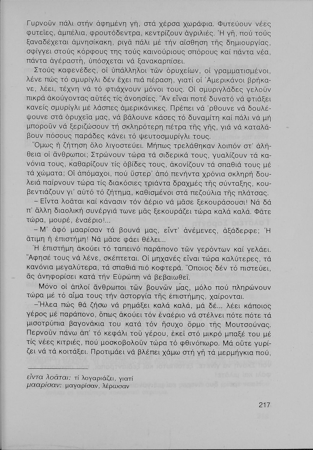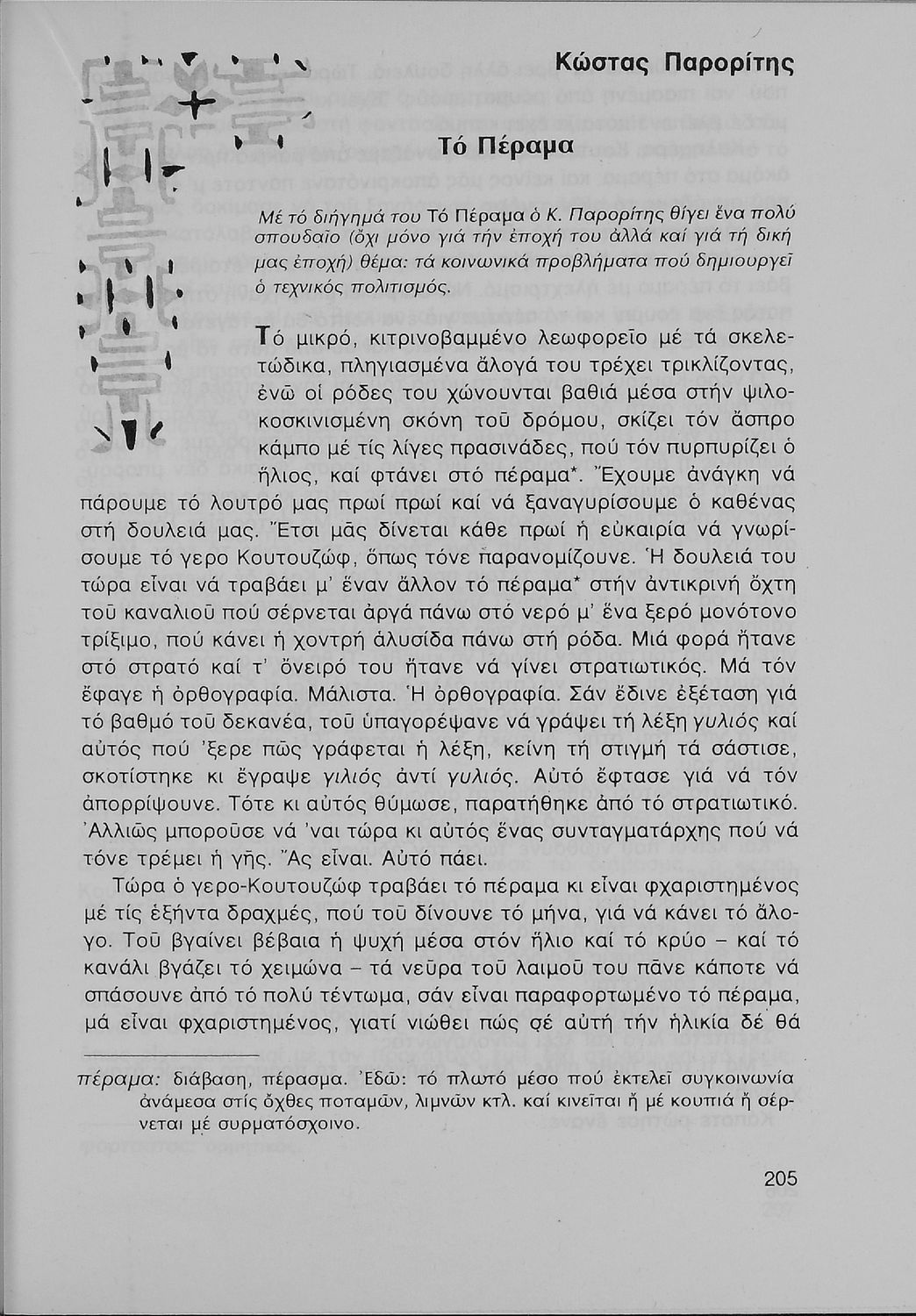 Σχολικό εγχειρίδιο Νέων Ελληνικών Α΄ Γυμνασίου που περιλαμβάνει δοκίμια, πεζά και ποιήματα Ελλήνων συγγραφέων και δημοτικά τραγούδια εμπνευσμένα από τη θρησκευτική, εθνική και κοινωνική ζωή, τη "δοκιμασία της ...