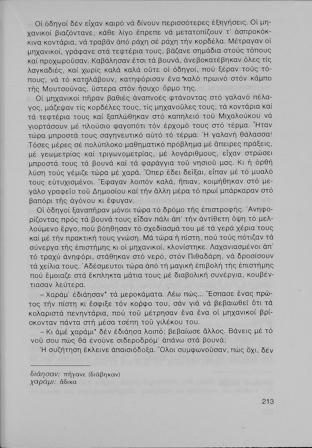 Σχολικό εγχειρίδιο Νέων Ελληνικών Β' Γυμνασίου που περιέχει δημοτικά τραγούδια, πεζά, δοκίμια και ποιήματα σύγχρονων Ελλήνων συγγραφέων και είναι χωρισμένο σε θεματικές ενότητες όπως η πόλη και η ύπαιθρος, η εποχή του 40' και η κατοχή, η θρησκευτική ζωή, ο καημός της ξενιτιάς, ο ελληνισμός έξω από τα σύνορα, οι αγώνες Ακριτών-Κλεφτών κ.α. Περιλαμβάνει και έργα ευρωπαίων λογοτεχνών.