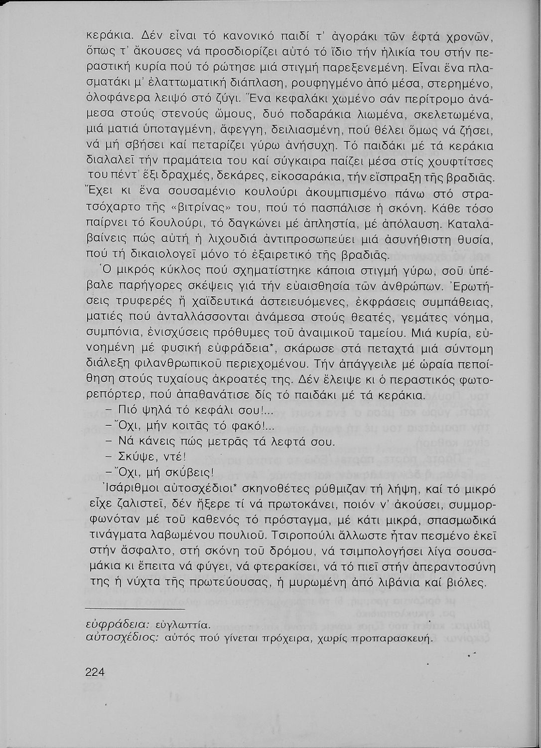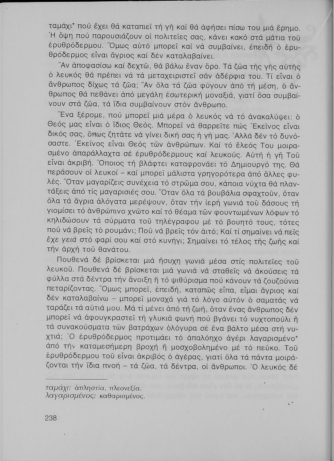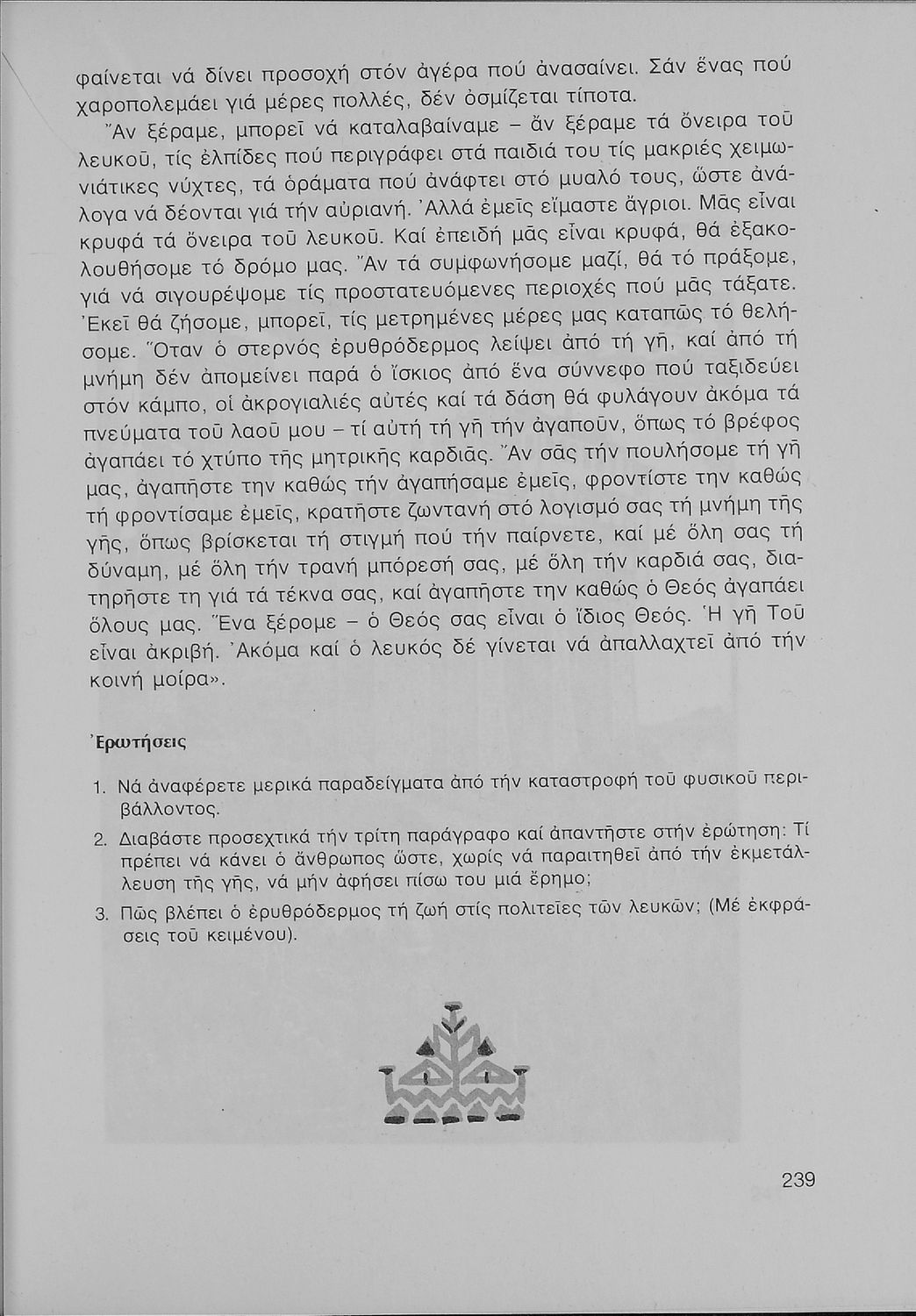 Σχολικό εγχειρίδιο Νέων Ελληνικών Β' Γυμνασίου που περιέχει δημοτικά τραγούδια, πεζά, δοκίμια και ποιήματα σύγχρονων Ελλήνων συγγραφέων και είναι χωρισμένο σε θεματικές ενότητες όπως η πόλη και η ύπαιθρος, η εποχή του 40' και η κατοχή, η θρησκευτική ζωή, ο καημός της ξενιτιάς, ο ελληνισμός έξω από τα σύνορα, οι αγώνες Ακριτών-Κλεφτών κ.α. Περιλαμβάνει και έργα ευρωπαίων λογοτεχνών.