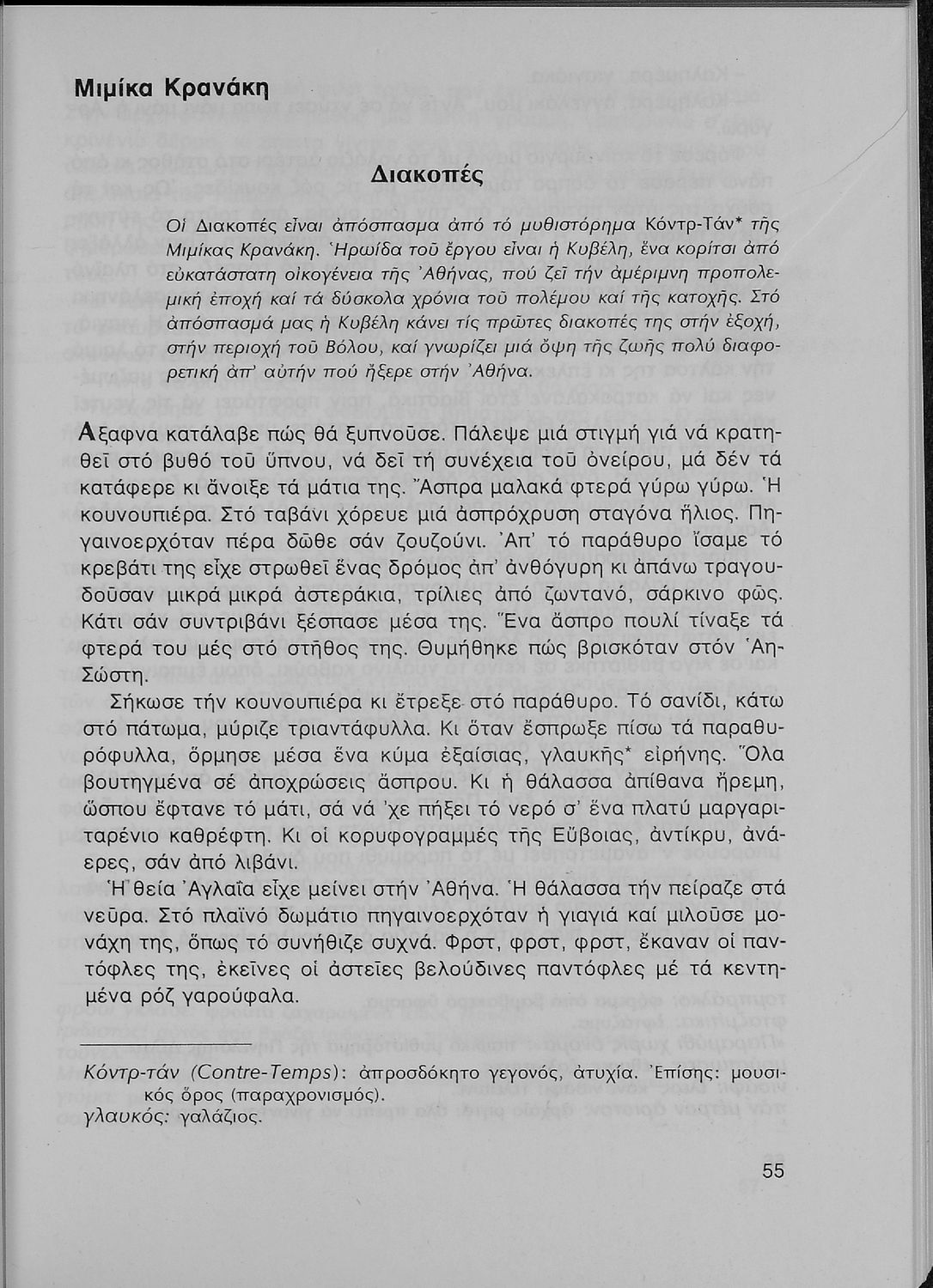Σχολικό εγχειρίδιο Νέων Ελληνικών Α΄ Γυμνασίου που περιλαμβάνει δοκίμια, πεζά και ποιήματα Ελλήνων συγγραφέων και δημοτικά τραγούδια εμπνευσμένα από τη θρησκευτική, εθνική και κοινωνική ζωή, τη "δοκιμασία της ...