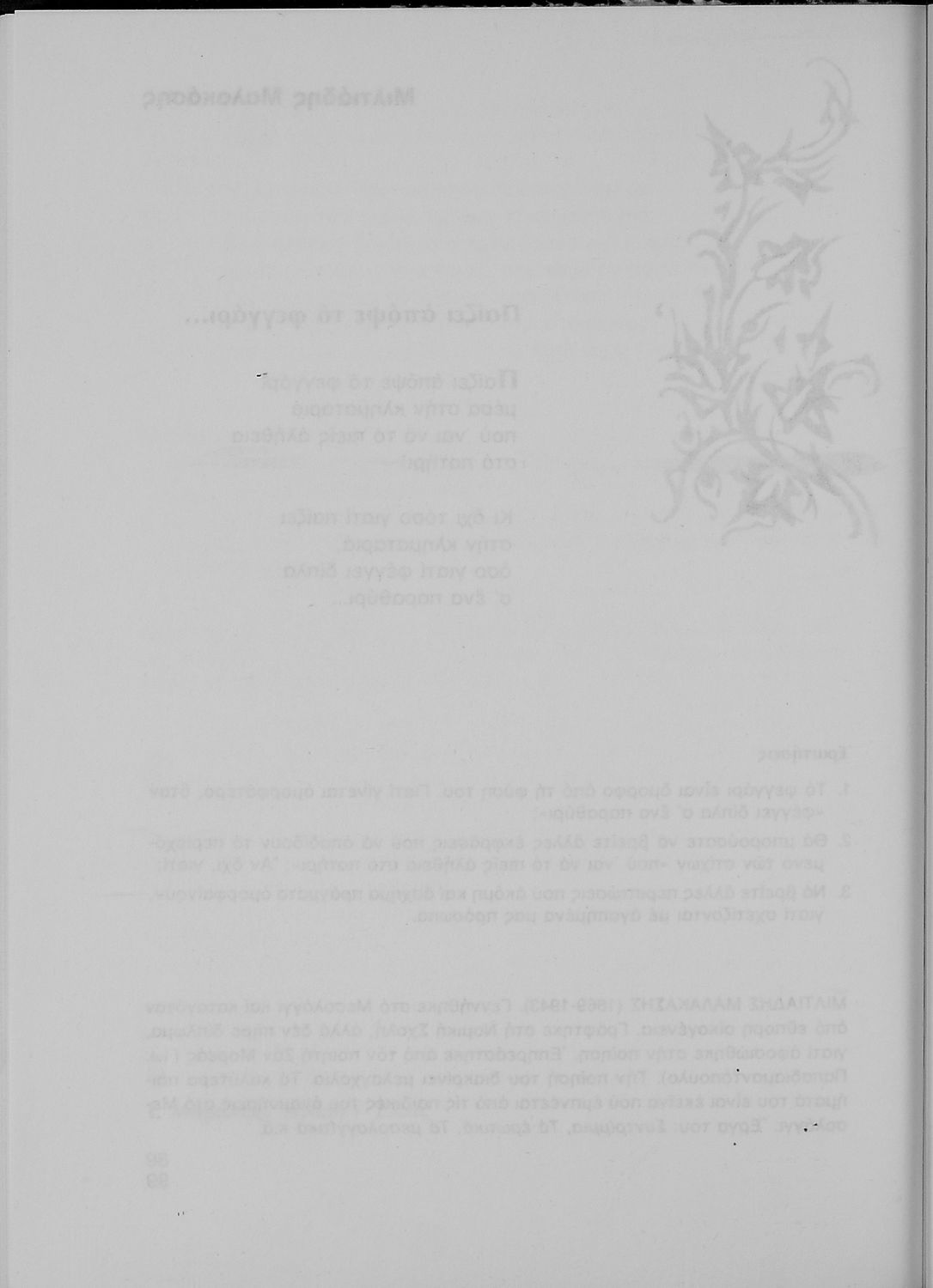 Σχολικό εγχειρίδιο Νέων Ελληνικών Β' Γυμνασίου που περιέχει δημοτικά τραγούδια, πεζά, δοκίμια και ποιήματα σύγχρονων Ελλήνων συγγραφέων και είναι χωρισμένο σε θεματικές ενότητες όπως η πόλη και η ύπαιθρος, η ...