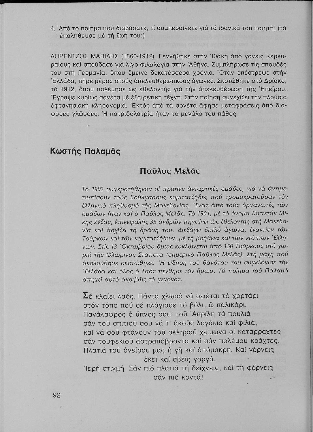 Κείμενα Νεοελληνικής Λογοτεχνίας Β΄ Γυμνασίου