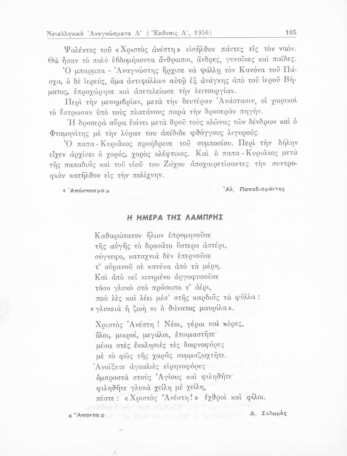 Σχετιζόμενοι όροι:  Παπαντωνίου, Πολέμης, Παλαμάς, Βηλαράς