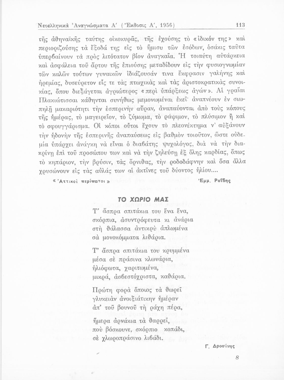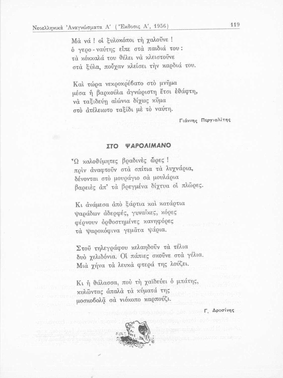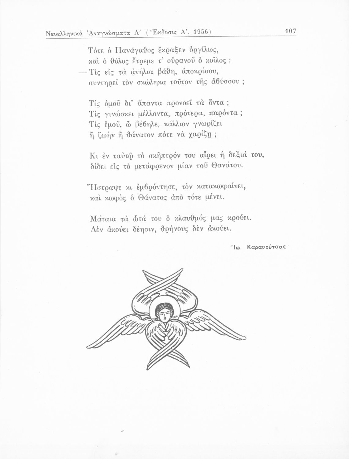 Σχολικό εγχειρίδιο Νέων Ελληνικών Γ΄ Γυμνασίου και Α' Αστικού Σχολείου που περιέχει πεζά και ποιήματα Ελλήνων συγγραφέων εμπνευσμένα από τη θρησκευτική και κοινωνική ζωή, την ελληνική μυθολογία, την αρχαία και