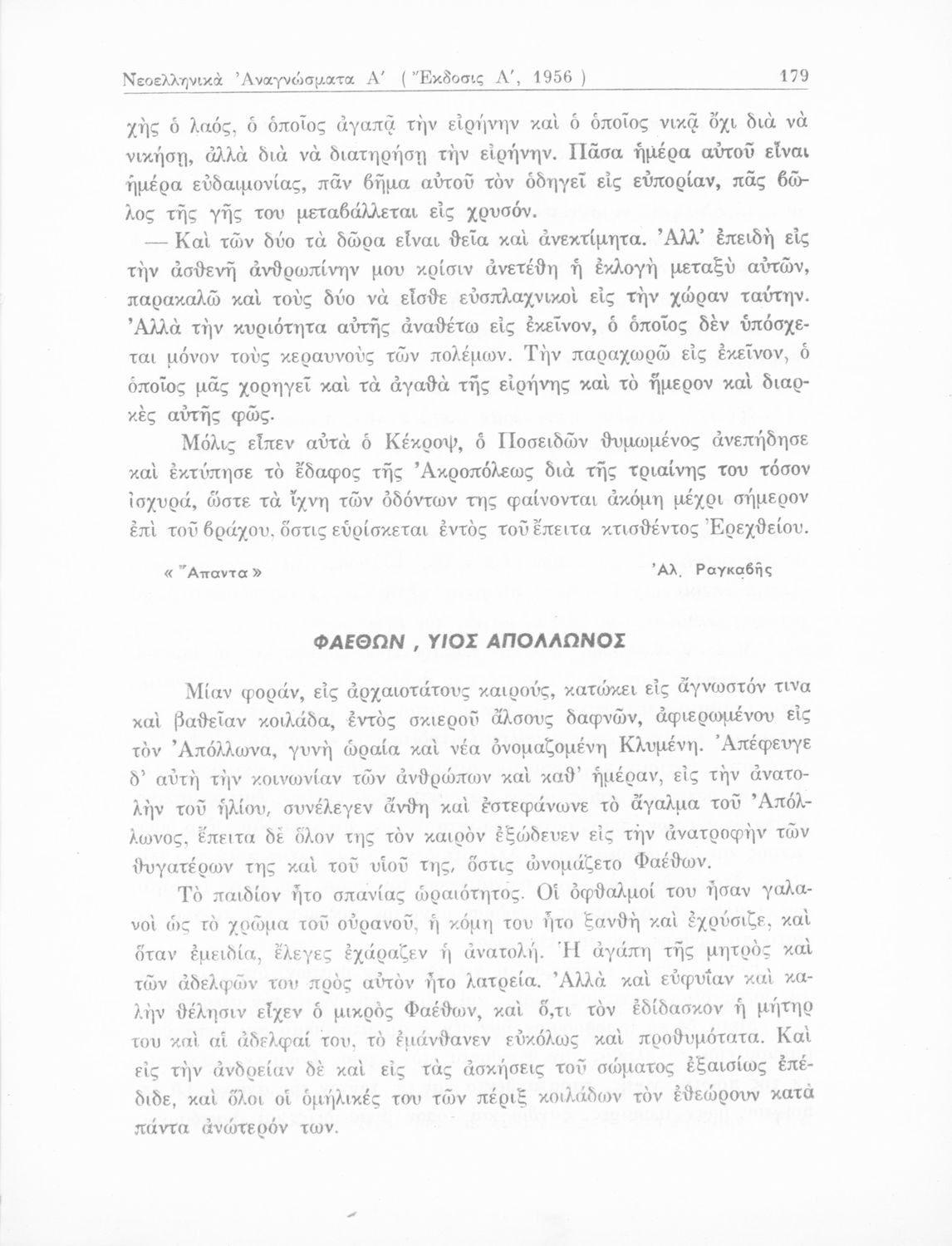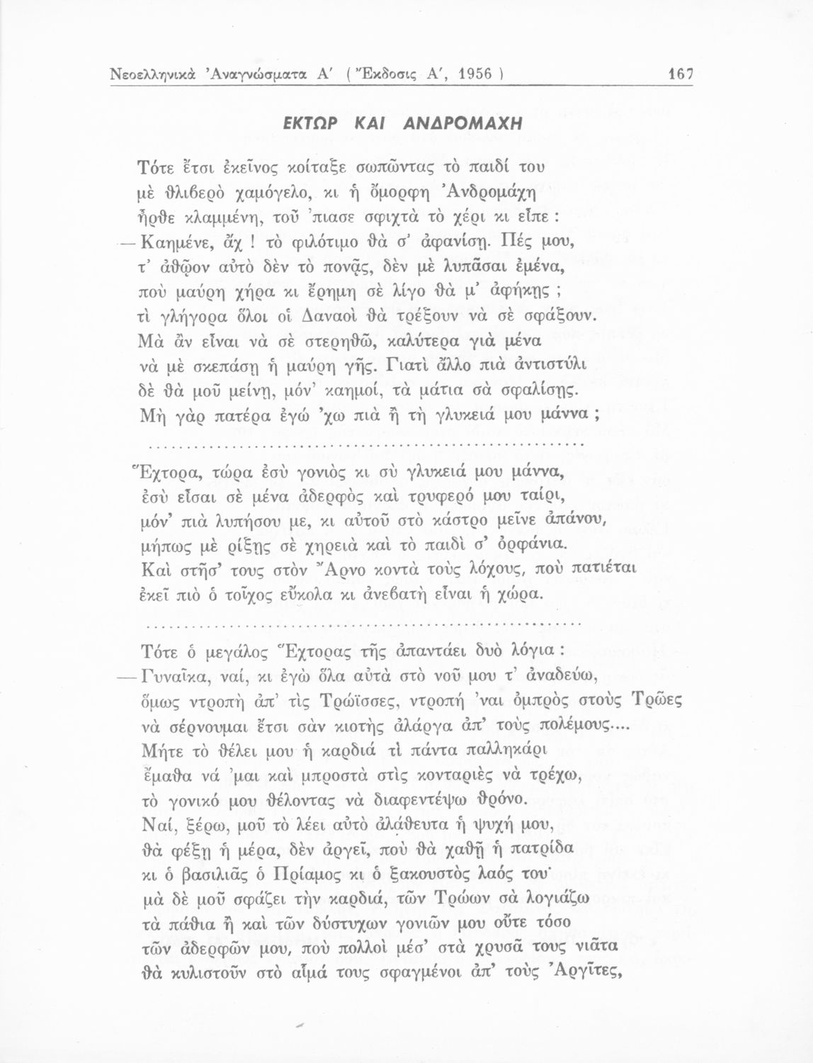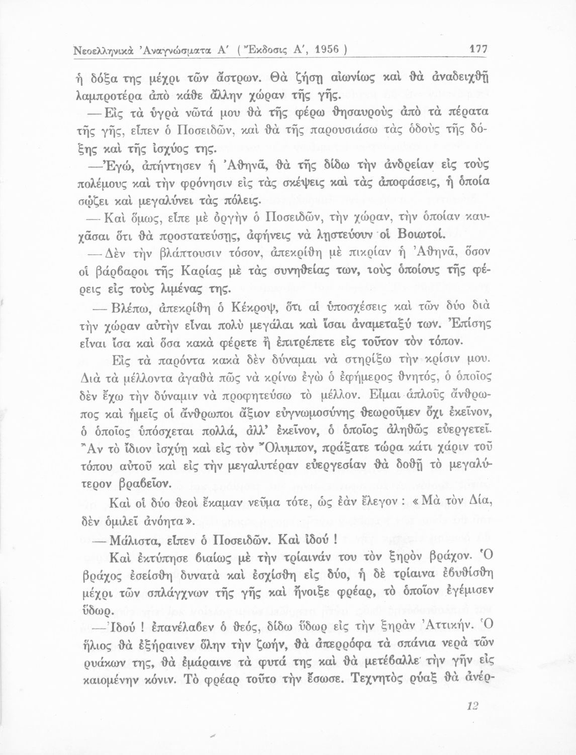 Σχολικό εγχειρίδιο Νέων Ελληνικών Γ΄ Γυμνασίου και Α' Αστικού Σχολείου που περιέχει πεζά και ποιήματα Ελλήνων συγγραφέων εμπνευσμένα από τη θρησκευτική και κοινωνική ζωή, την ελληνική μυθολογία, την αρχαία και
