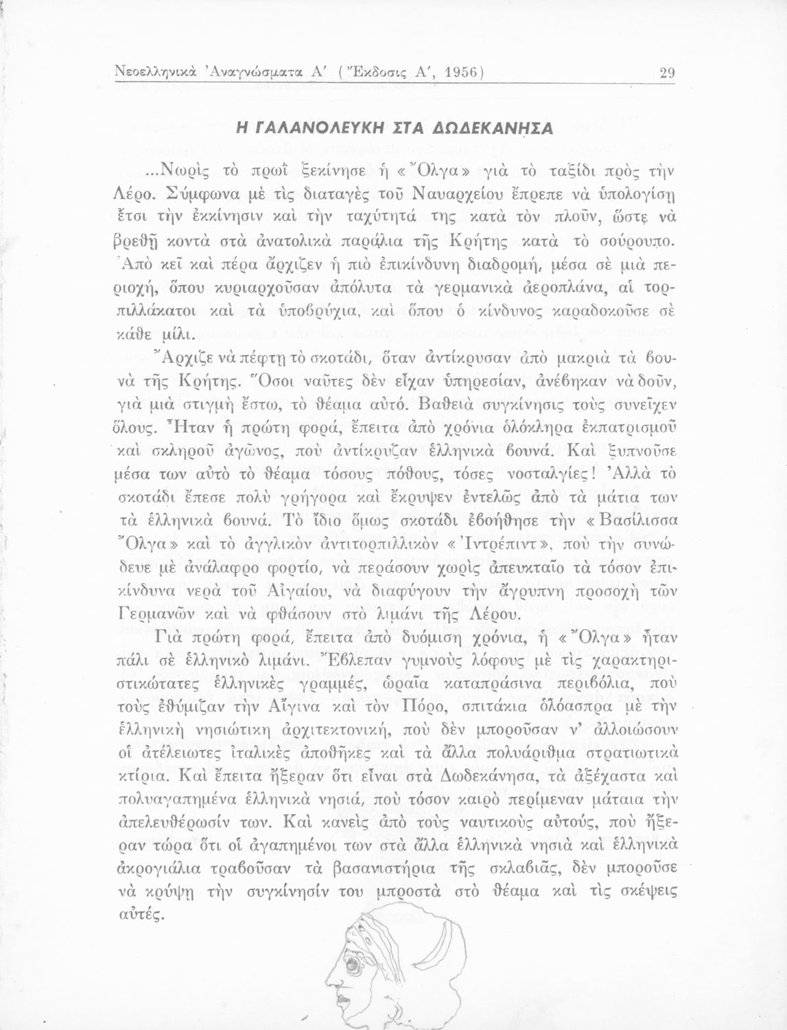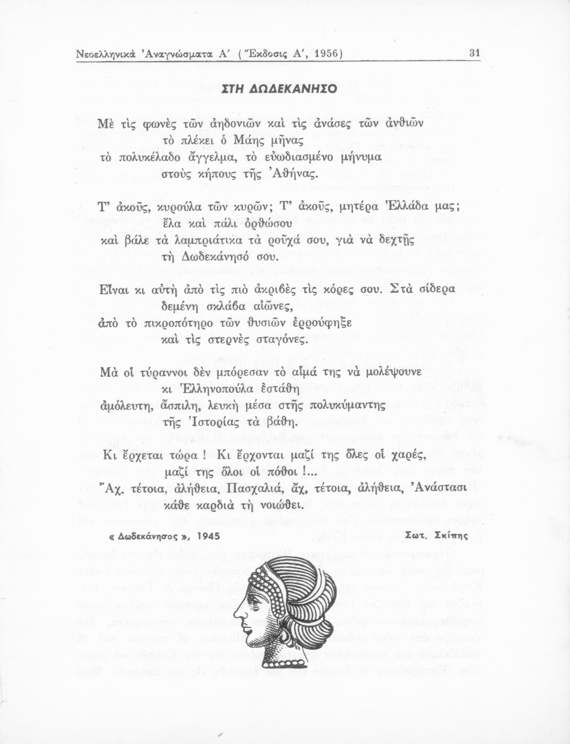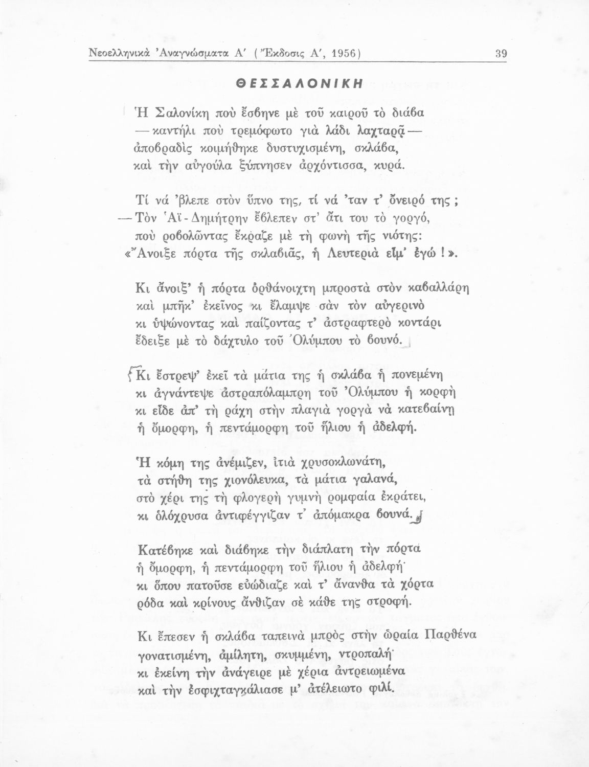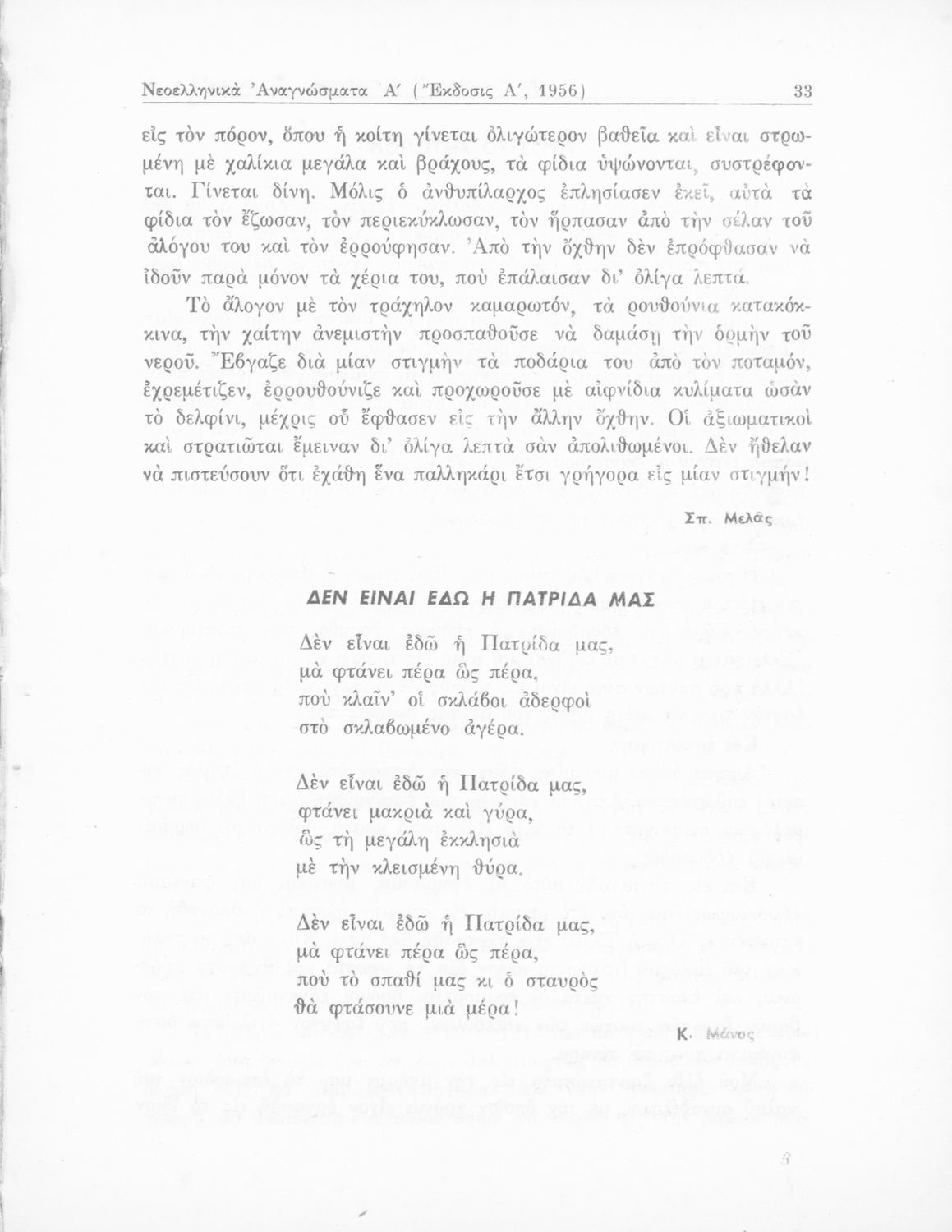 Σχολικό εγχειρίδιο Νέων Ελληνικών Γ΄ Γυμνασίου και Α' Αστικού Σχολείου που περιέχει πεζά και ποιήματα Ελλήνων συγγραφέων εμπνευσμένα από τη θρησκευτική και κοινωνική ζωή, την ελληνική μυθολογία, την αρχαία και