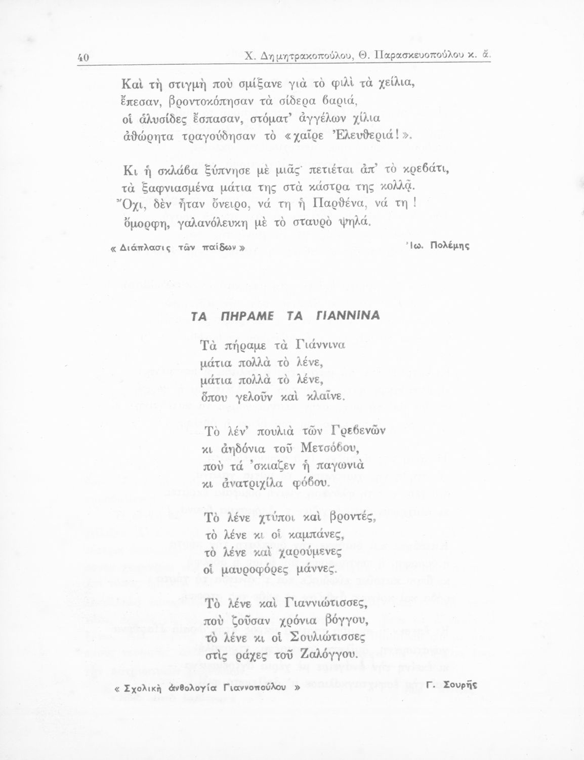 Σχετιζόμενοι όροι:  Παπαντωνίου, Πολέμης, Παλαμάς, Βηλαράς