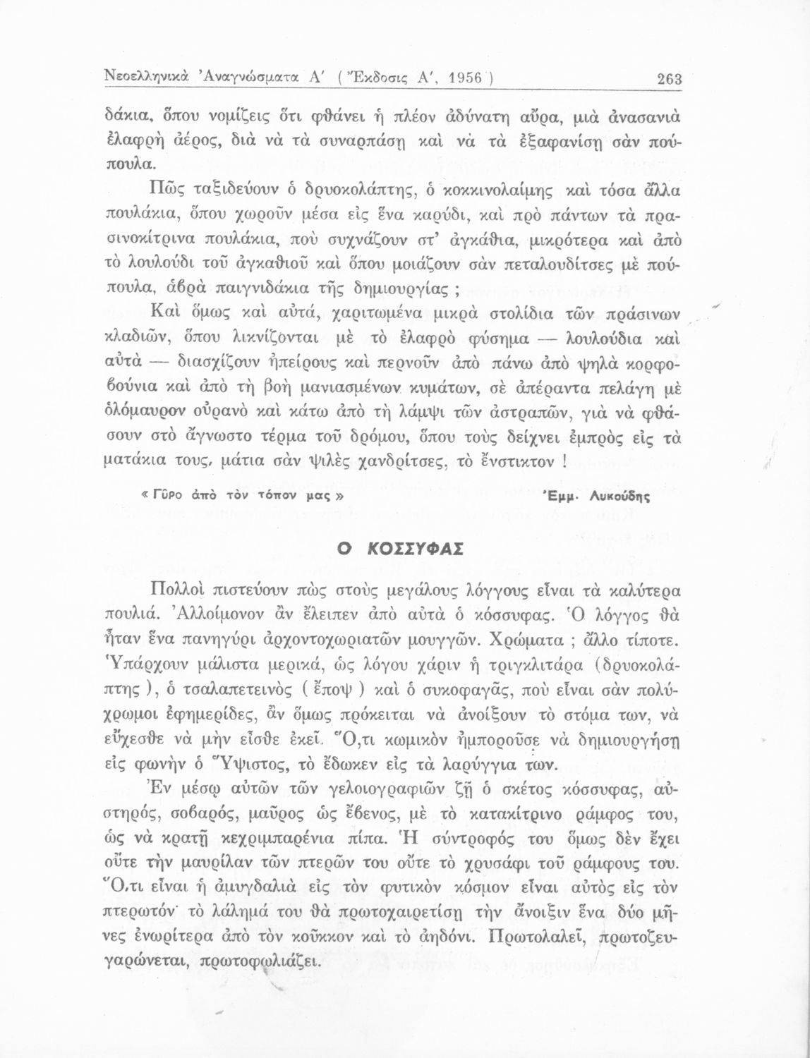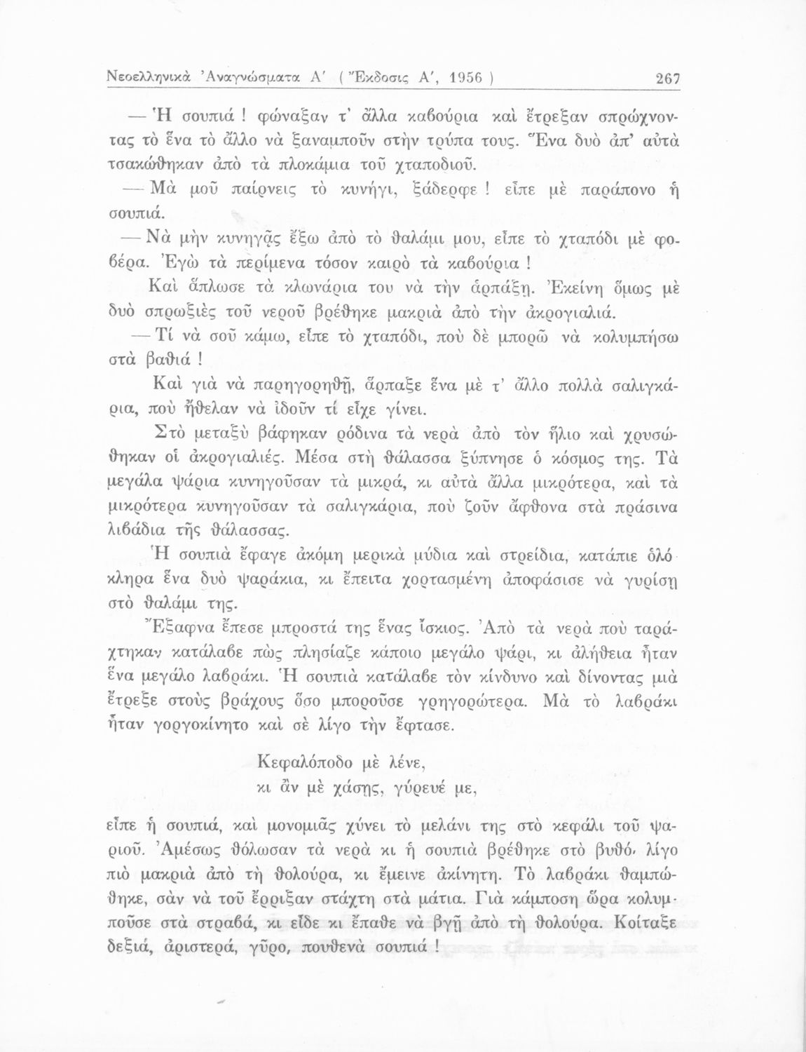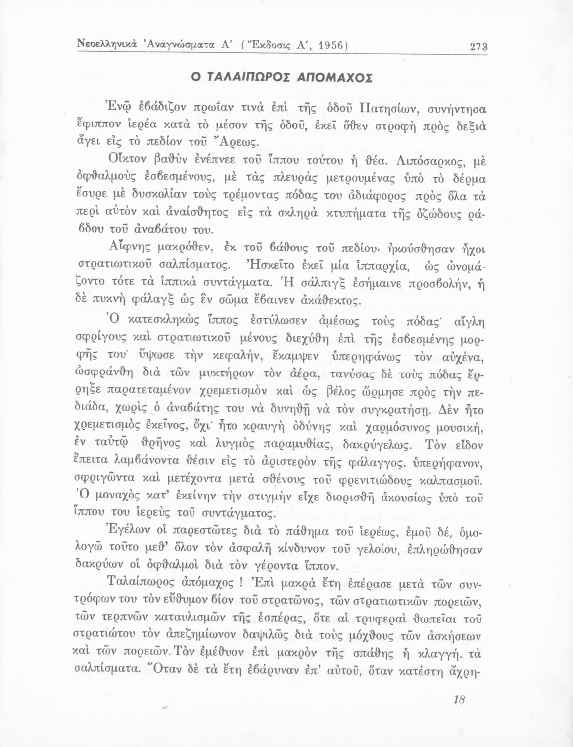 Σχολικό εγχειρίδιο Νέων Ελληνικών Γ΄ Γυμνασίου και Α' Αστικού Σχολείου που περιέχει πεζά και ποιήματα Ελλήνων συγγραφέων εμπνευσμένα από τη θρησκευτική και κοινωνική ζωή, την ελληνική μυθολογία, την αρχαία και