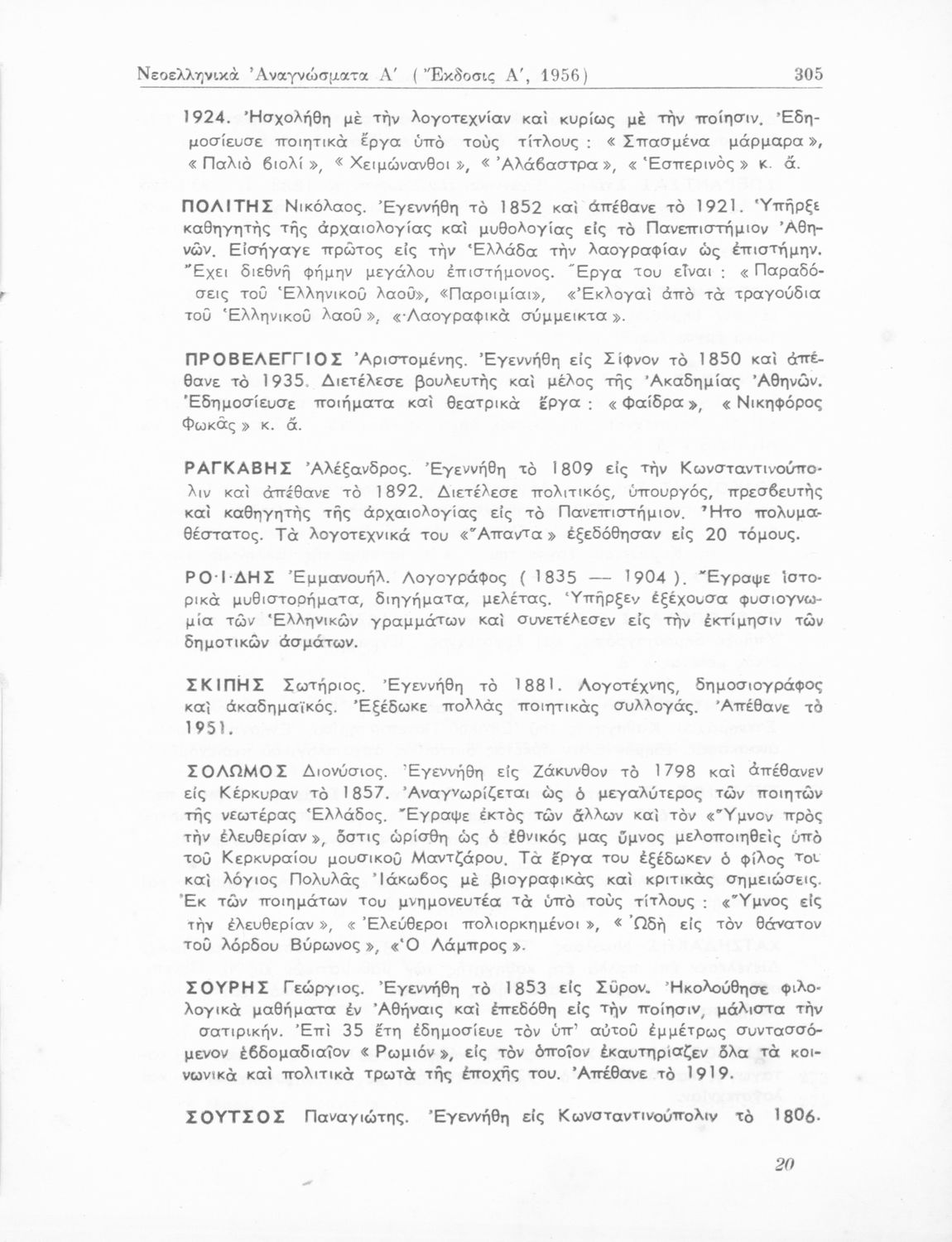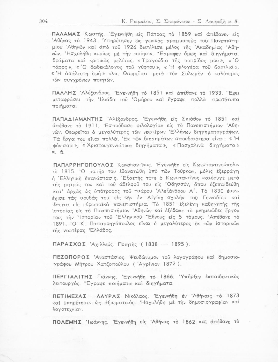 Σχετιζόμενοι όροι:  Παπαντωνίου, Πολέμης, Παλαμάς, Βηλαράς