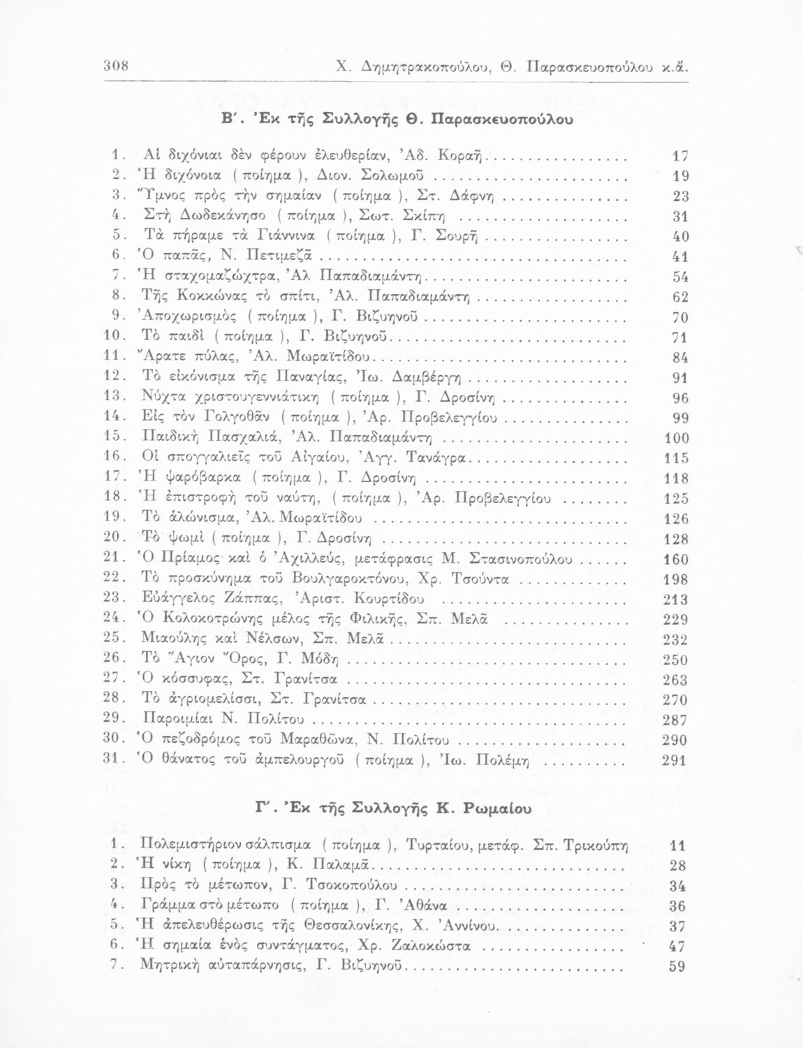 Σχετιζόμενοι όροι:  Παπαντωνίου, Πολέμης, Παλαμάς, Βιλαράς