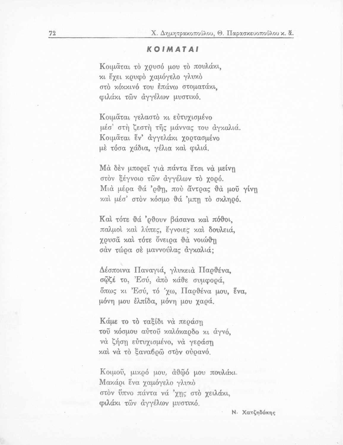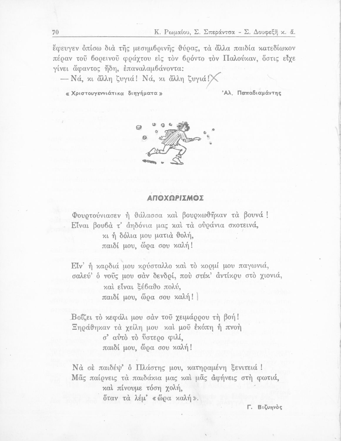Σχετιζόμενοι όροι:  Παπαντωνίου, Πολέμης, Παλαμάς, Βηλαράς
