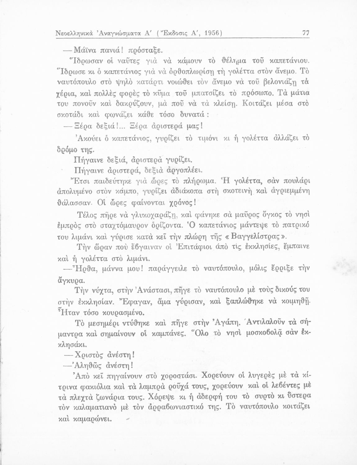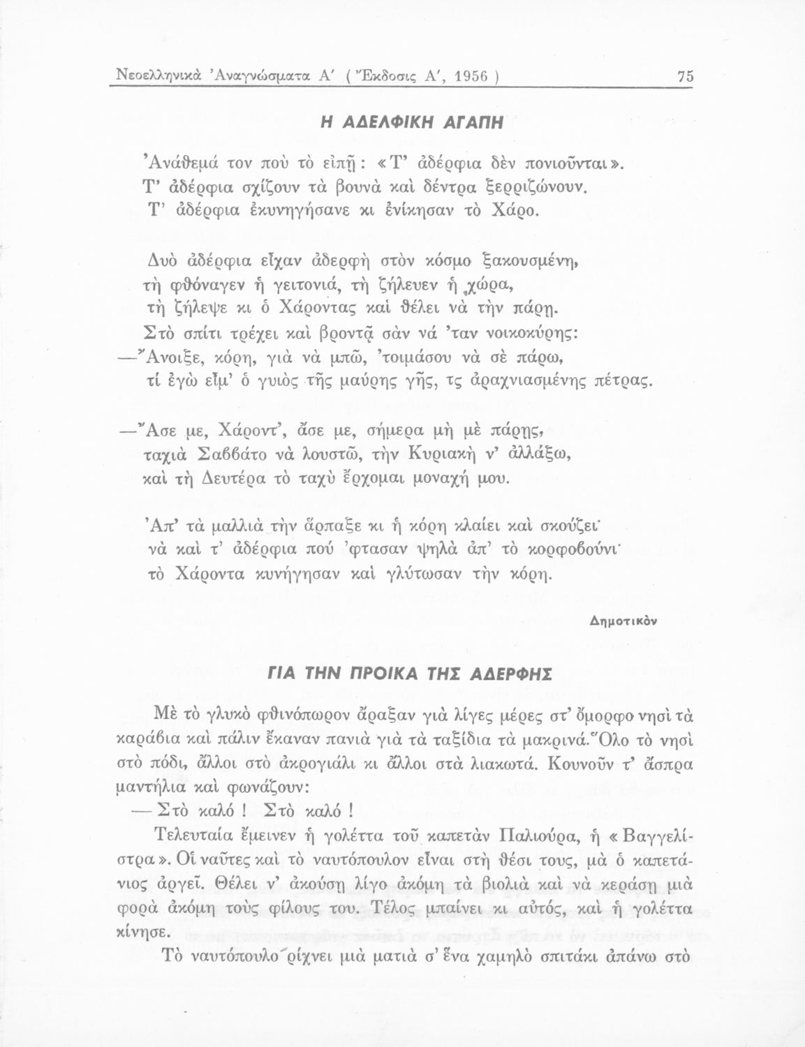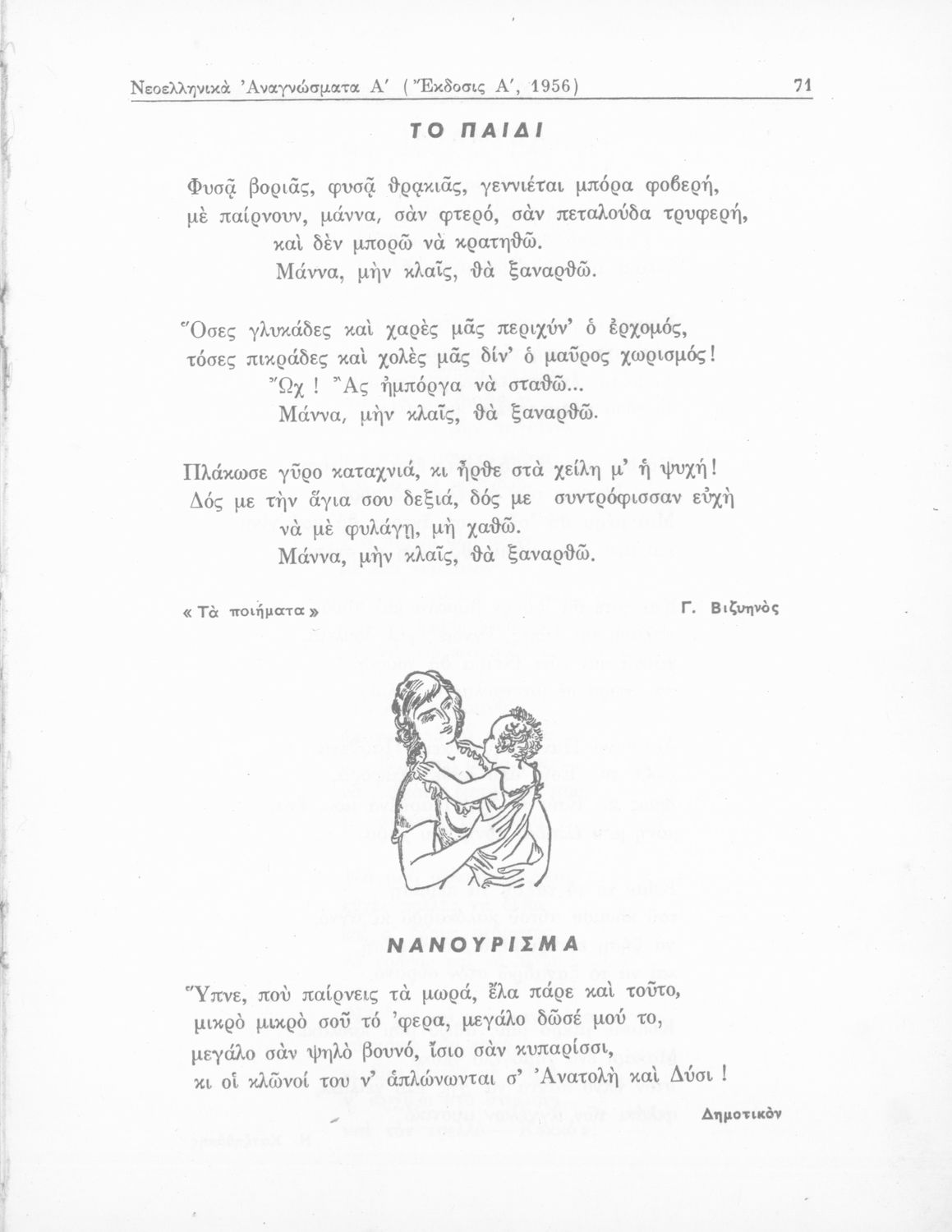Σχολικό εγχειρίδιο Νέων Ελληνικών Γ΄ Γυμνασίου και Α' Αστικού Σχολείου που περιέχει πεζά και ποιήματα Ελλήνων συγγραφέων εμπνευσμένα από τη θρησκευτική και κοινωνική ζωή, την ελληνική μυθολογία, την αρχαία και