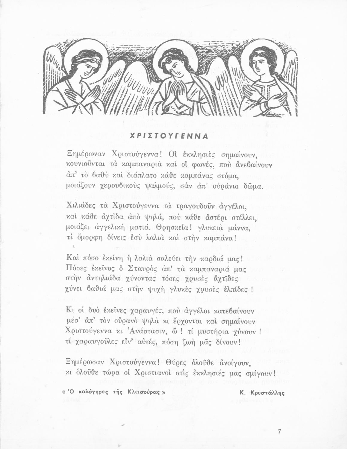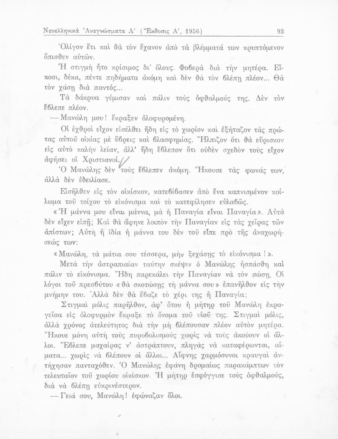 Σχολικό εγχειρίδιο Νέων Ελληνικών Γ΄ Γυμνασίου και Α' Αστικού Σχολείου που περιέχει πεζά και ποιήματα Ελλήνων συγγραφέων εμπνευσμένα από τη θρησκευτική και κοινωνική ζωή, την ελληνική μυθολογία, την αρχαία και