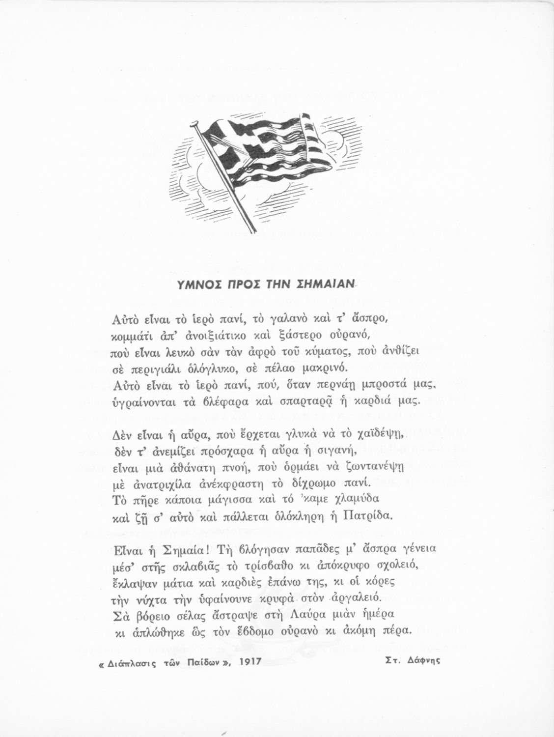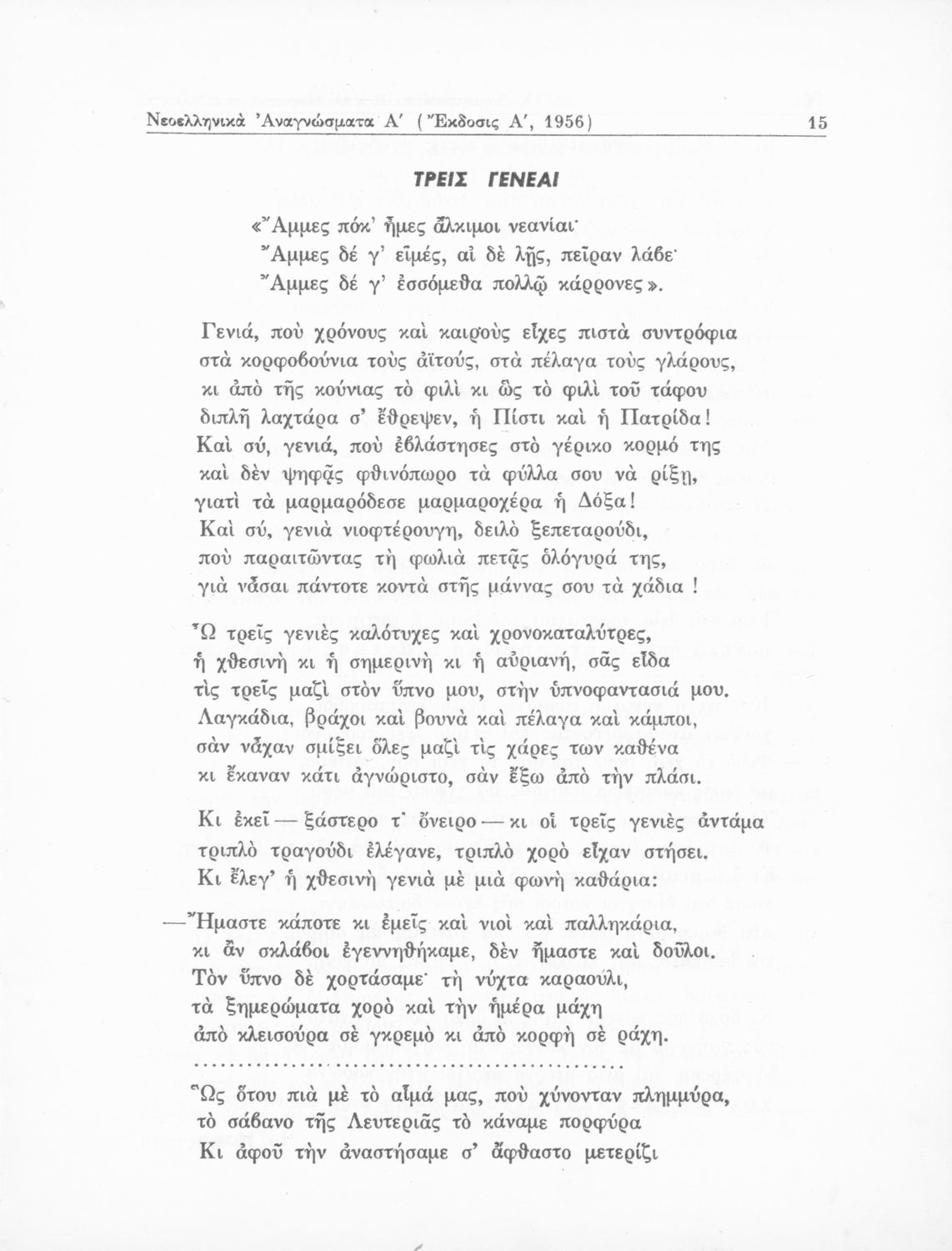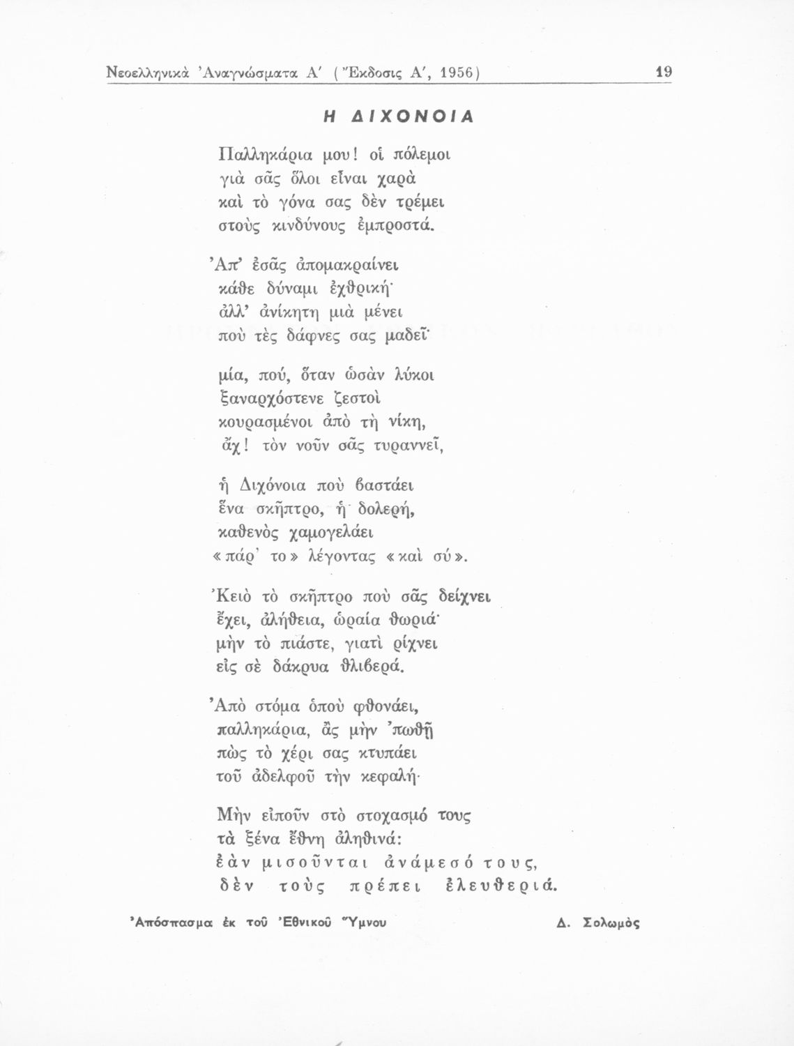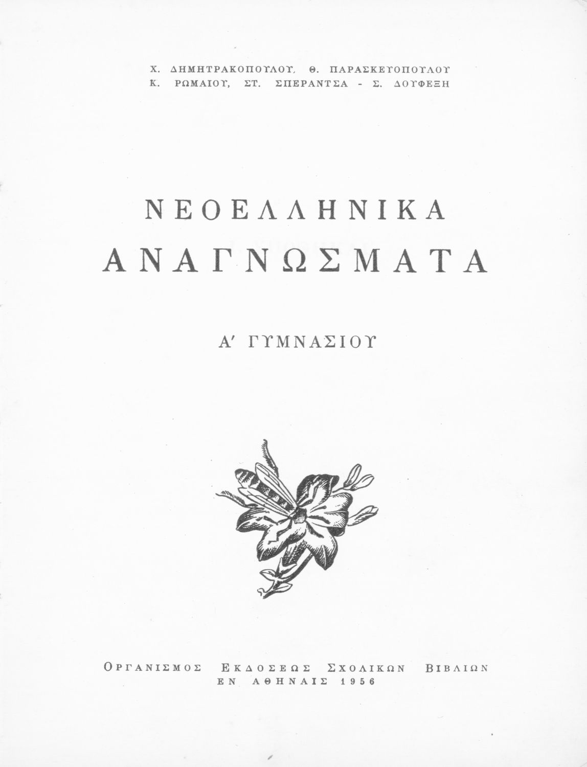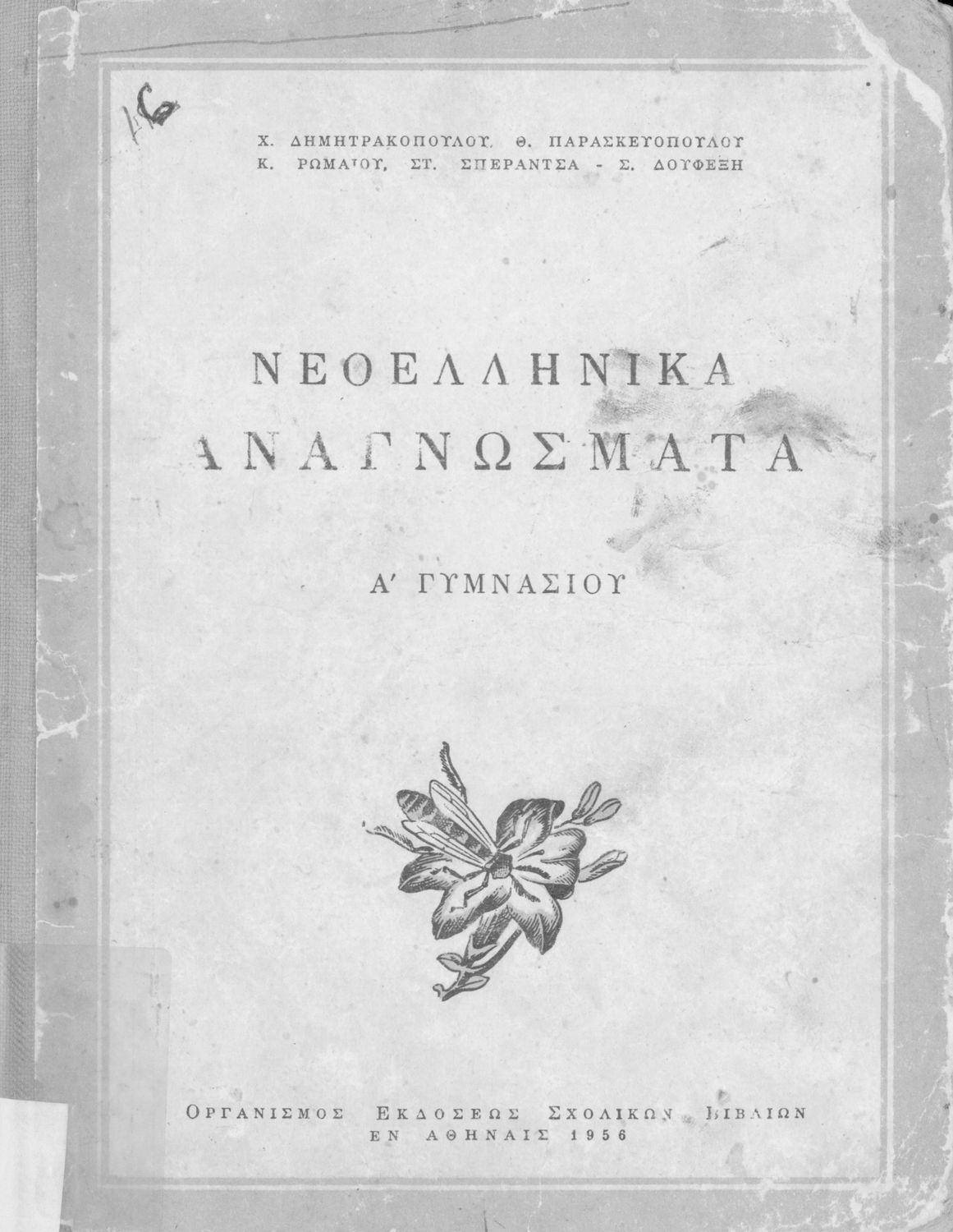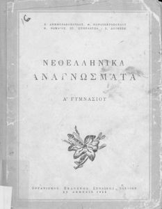 Σχολικό εγχειρίδιο Νέων Ελληνικών Γ΄ Γυμνασίου και Α' Αστικού Σχολείου που περιέχει πεζά και ποιήματα Ελλήνων συγγραφέων εμπνευσμένα από τη θρησκευτική και κοινωνική ζωή, την ελληνική μυθολογία, την αρχαία και