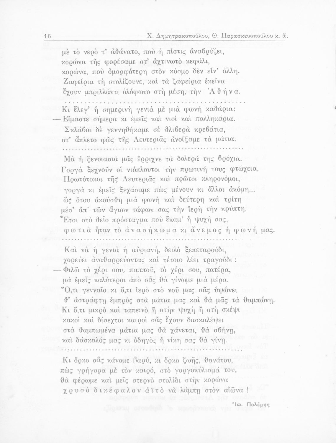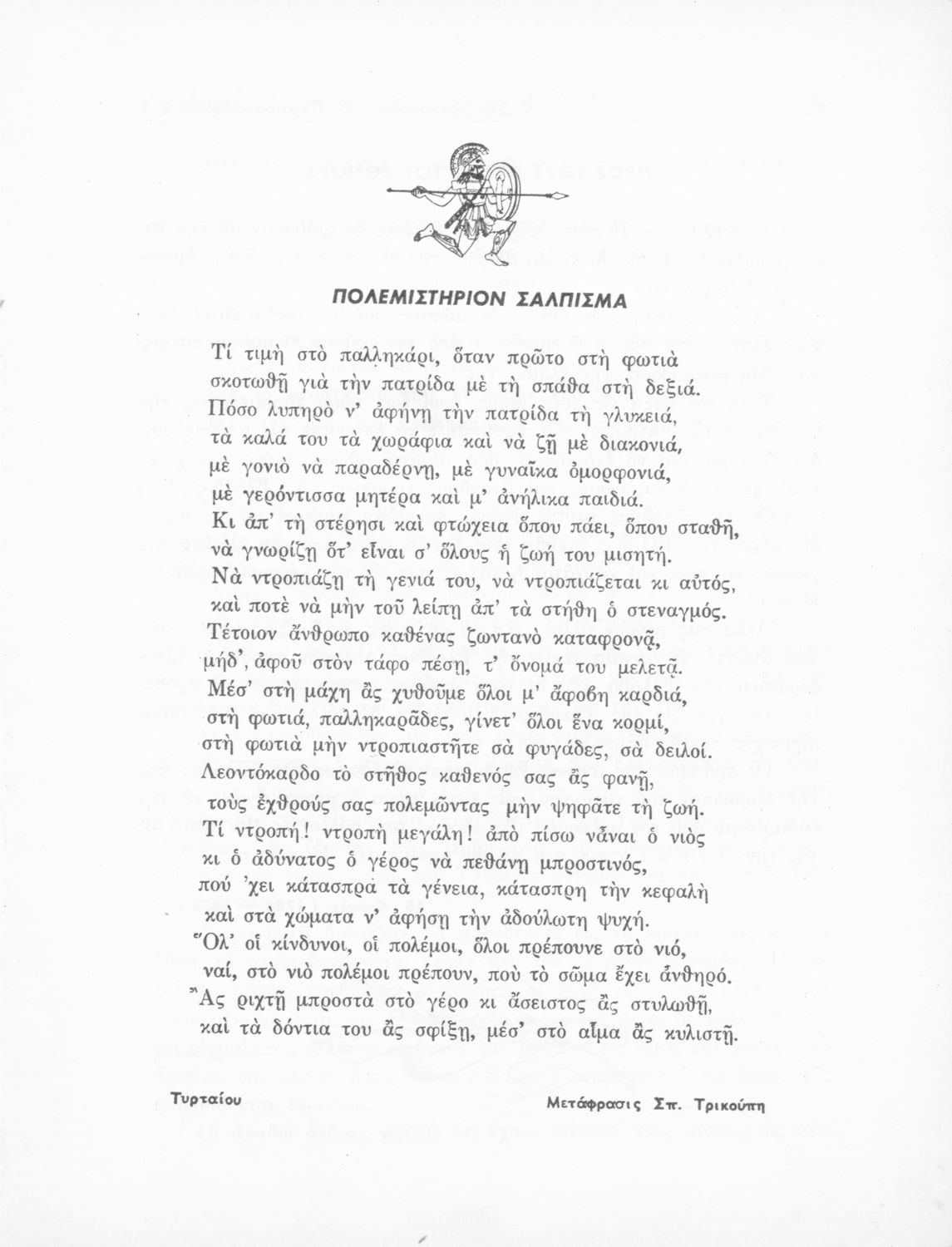 Σχετιζόμενοι όροι:  Παπαντωνίου, Πολέμης, Παλαμάς, Βηλαράς