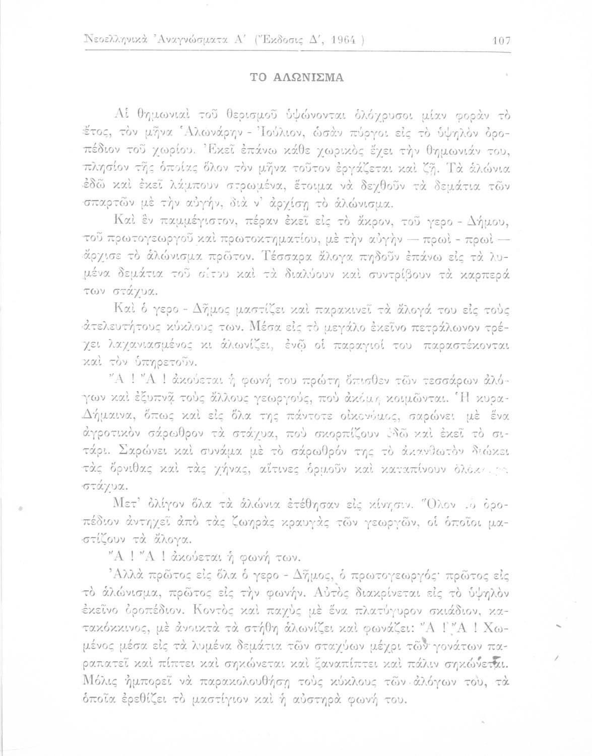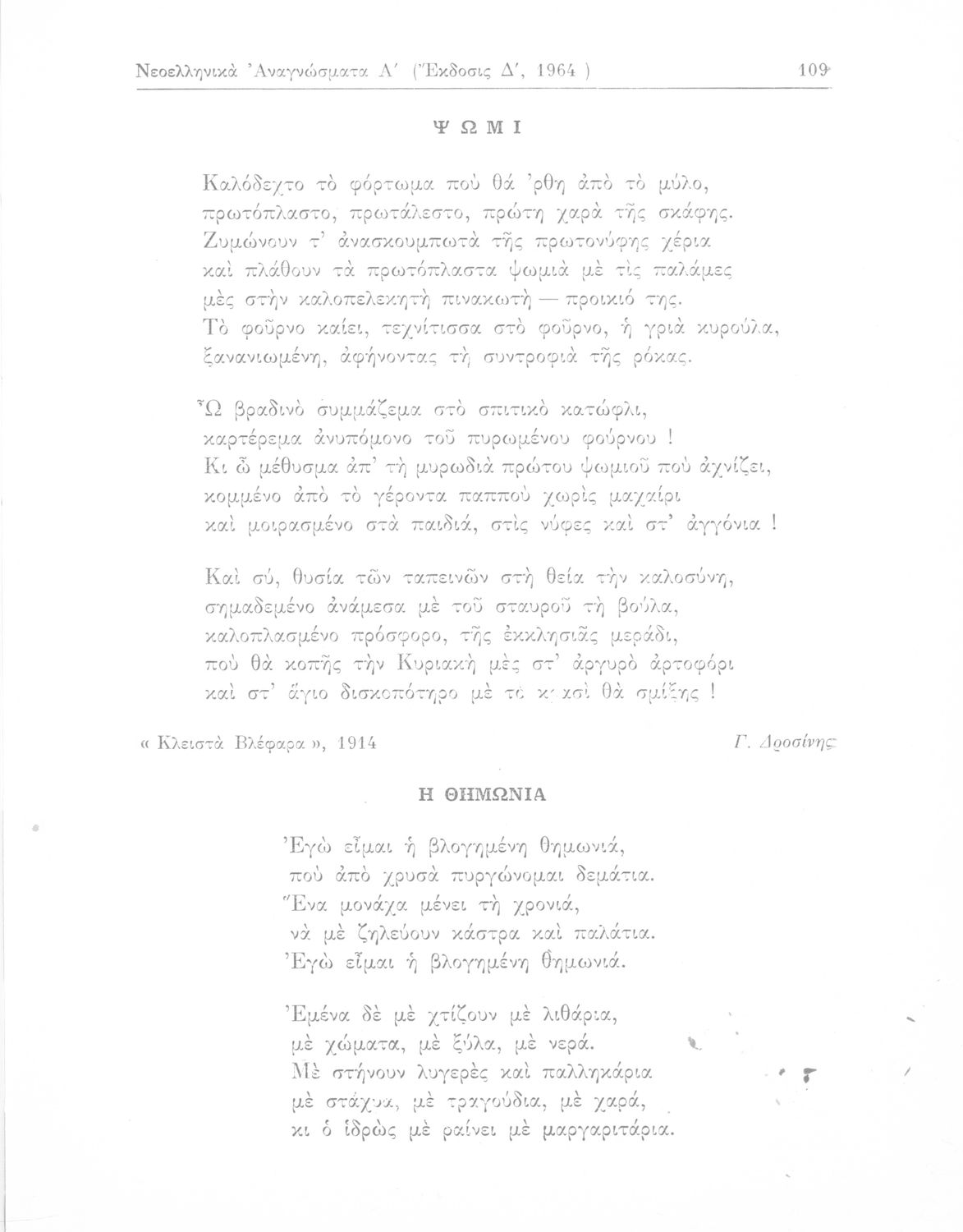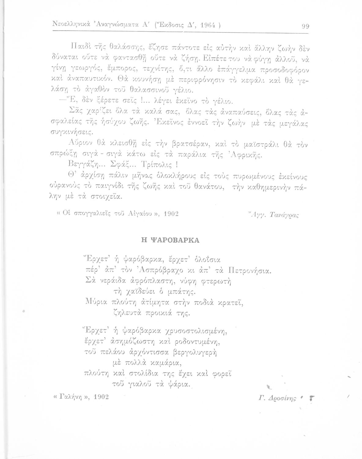 Σχολικό εγχειρίδιο Νέων Ελληνικών Γ΄ Γυμνασίου και Α' Αστικού Σχολείου που περιέχει πεζά και ποιήματα Ελλήνων συγγραφέων εμπνευσμένα από τη θρησκευτική και κοινωνική ζωή, την ελληνική μυθολογία, την αρχαία και