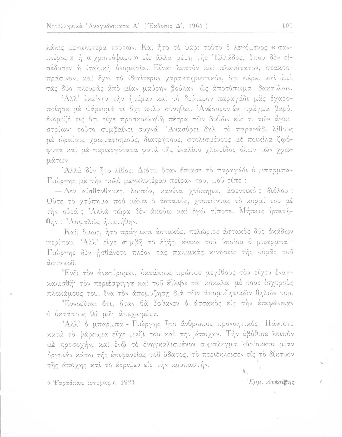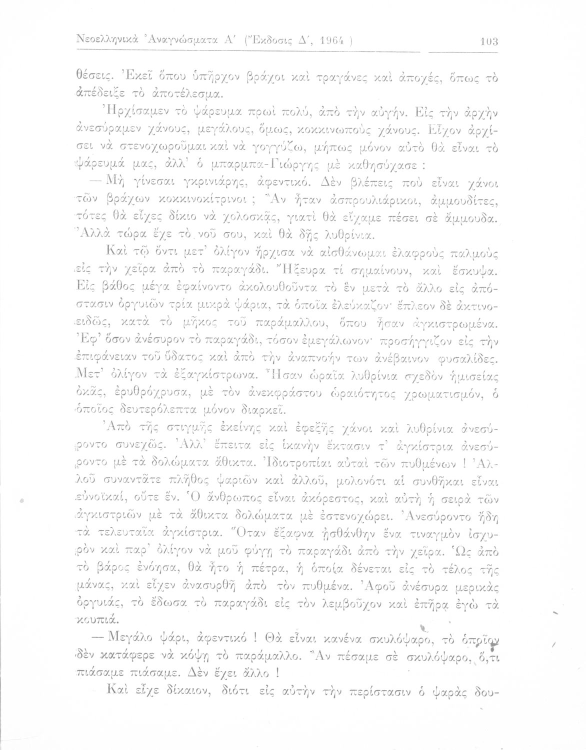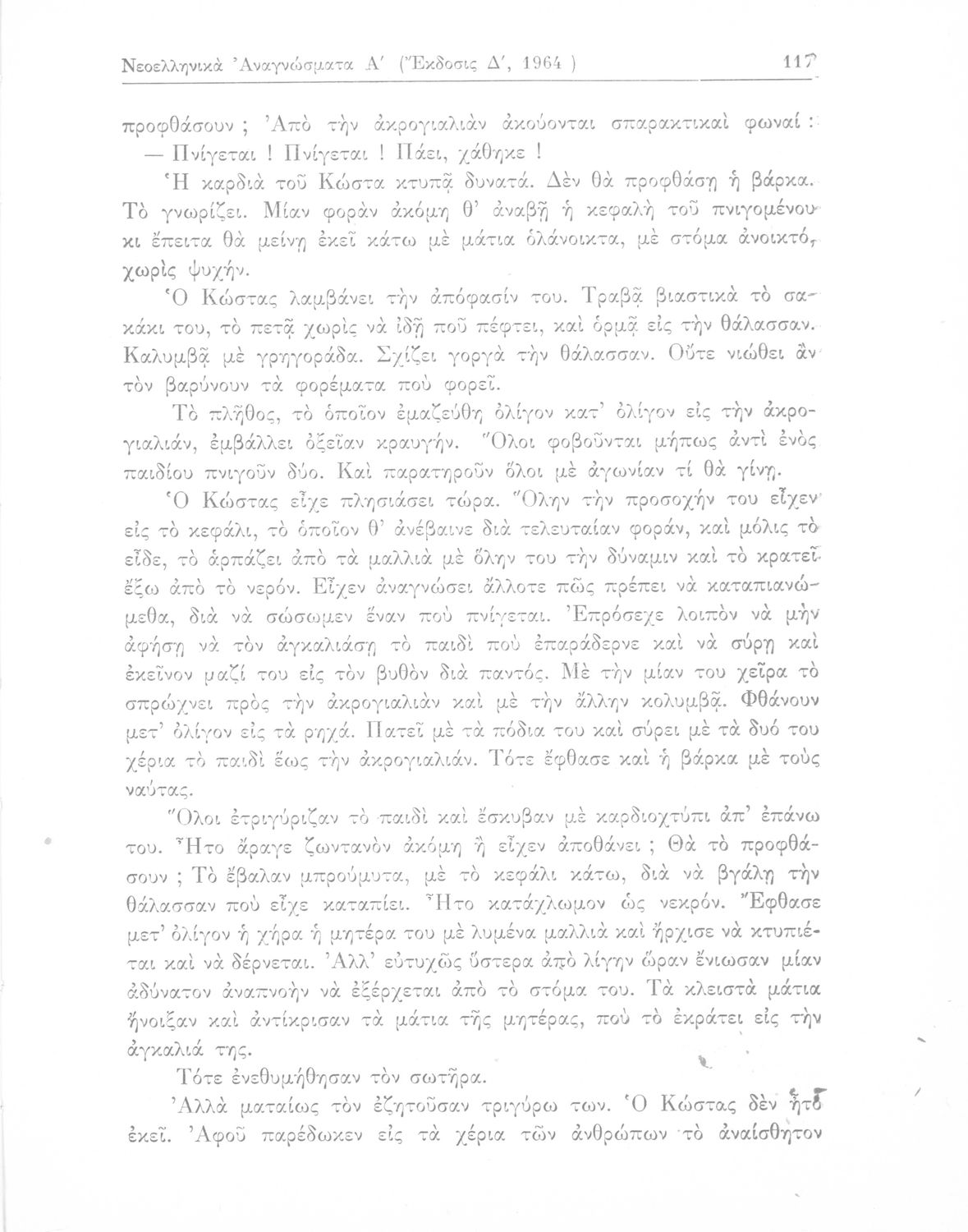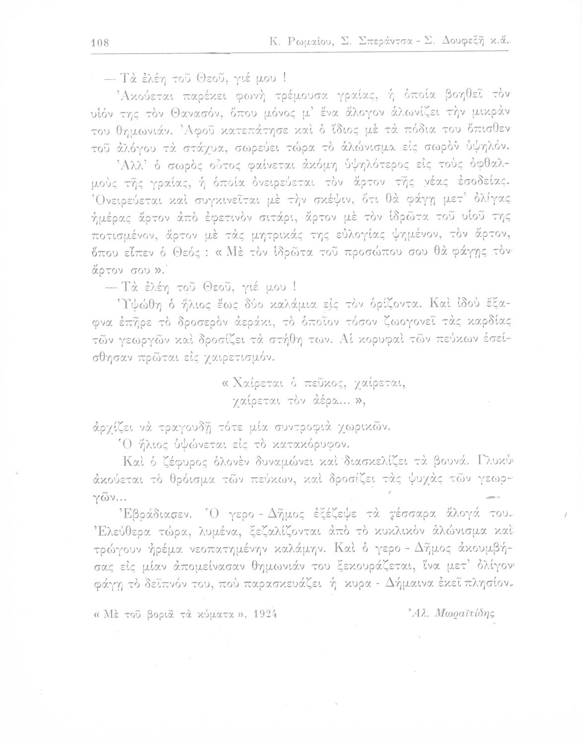 Σχολικό εγχειρίδιο Νέων Ελληνικών Γ΄ Γυμνασίου και Α' Αστικού Σχολείου που περιέχει πεζά και ποιήματα Ελλήνων συγγραφέων εμπνευσμένα από τη θρησκευτική και κοινωνική ζωή, την ελληνική μυθολογία, την αρχαία και