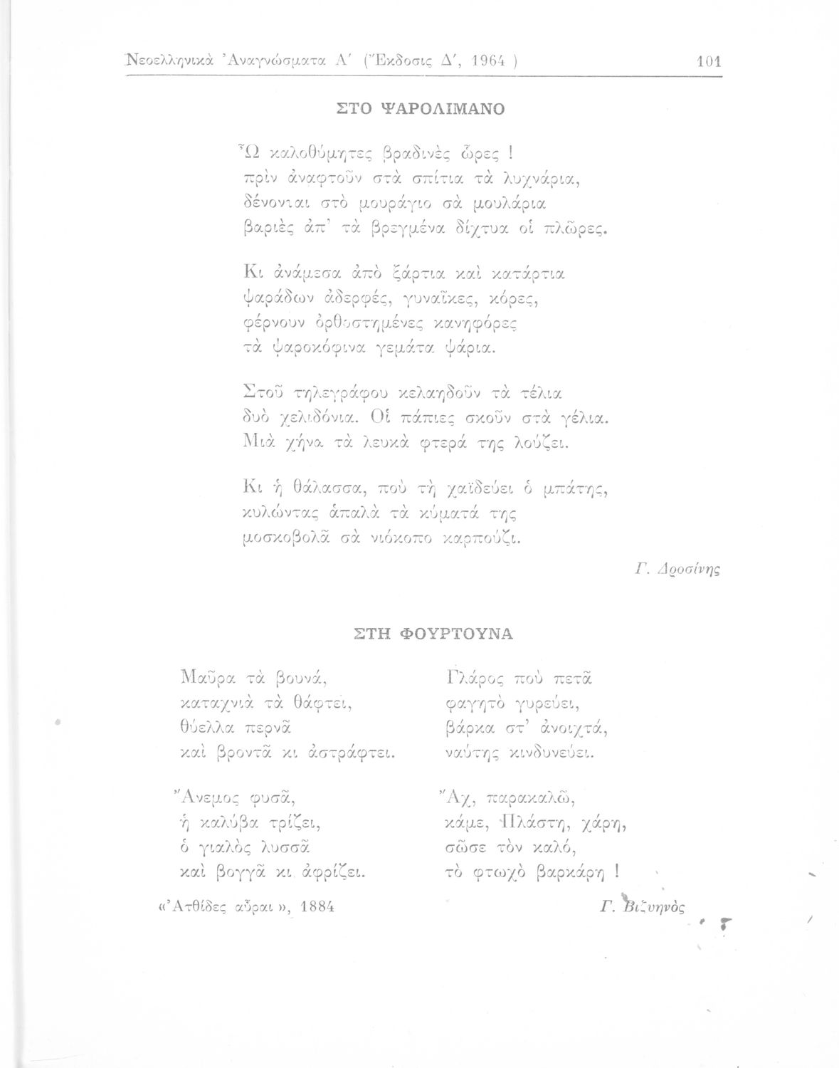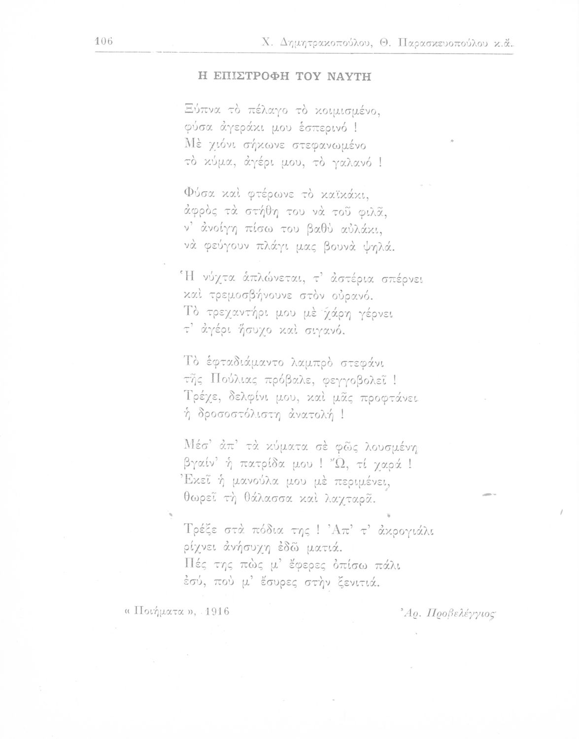 Σχετιζόμενοι όροι:  Παπαντωνίου, Πολέμης, Παλαμάς, Βηλαράς