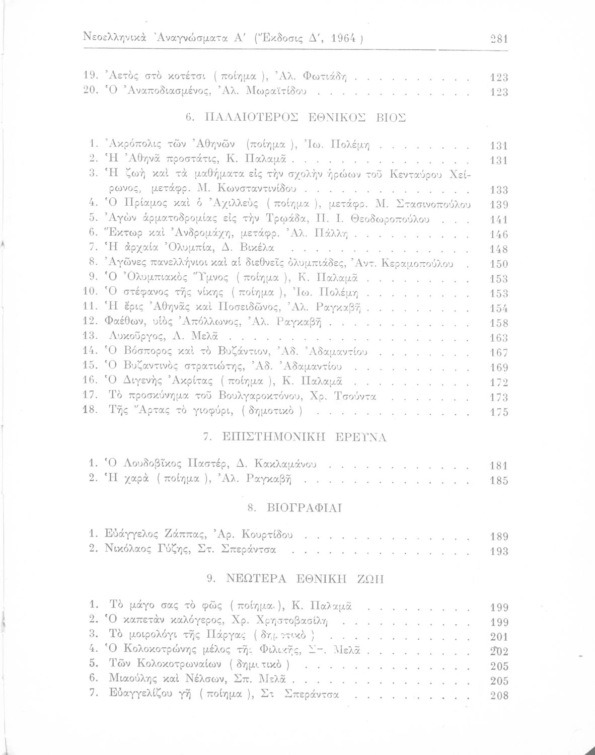 Σχολικό εγχειρίδιο Νέων Ελληνικών Γ΄ Γυμνασίου και Α' Αστικού Σχολείου που περιέχει πεζά και ποιήματα Ελλήνων συγγραφέων εμπνευσμένα από τη θρησκευτική και κοινωνική ζωή, την ελληνική μυθολογία, την αρχαία και