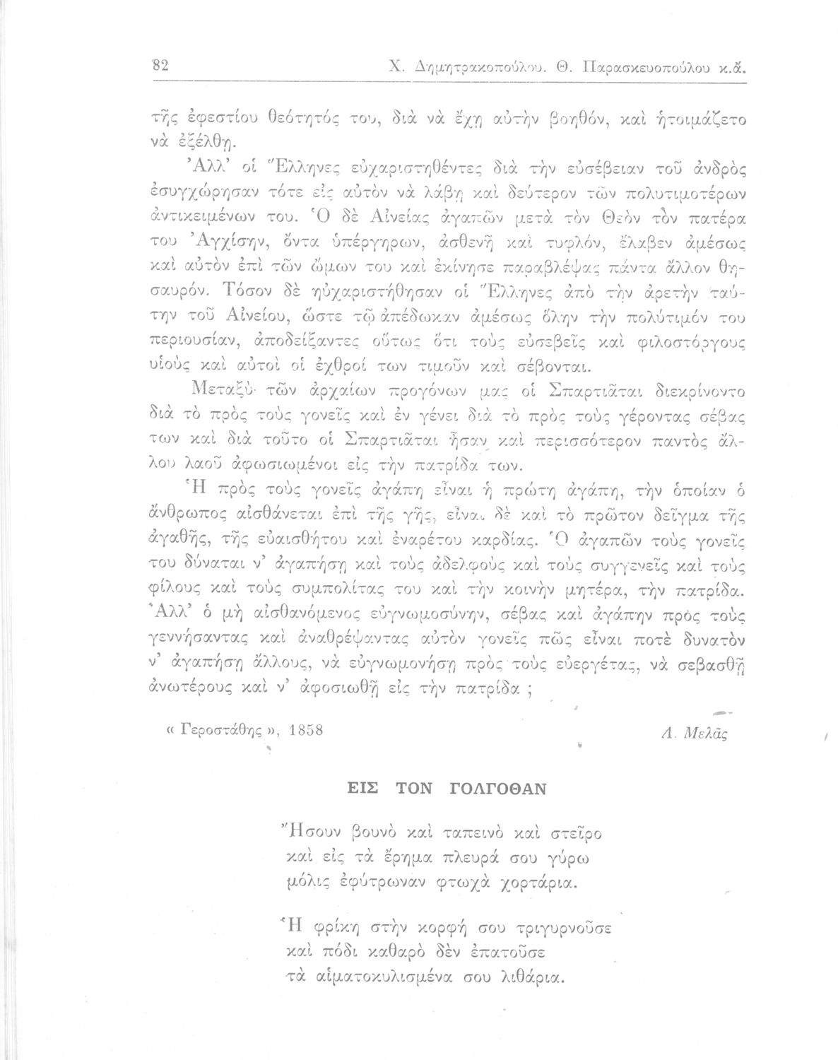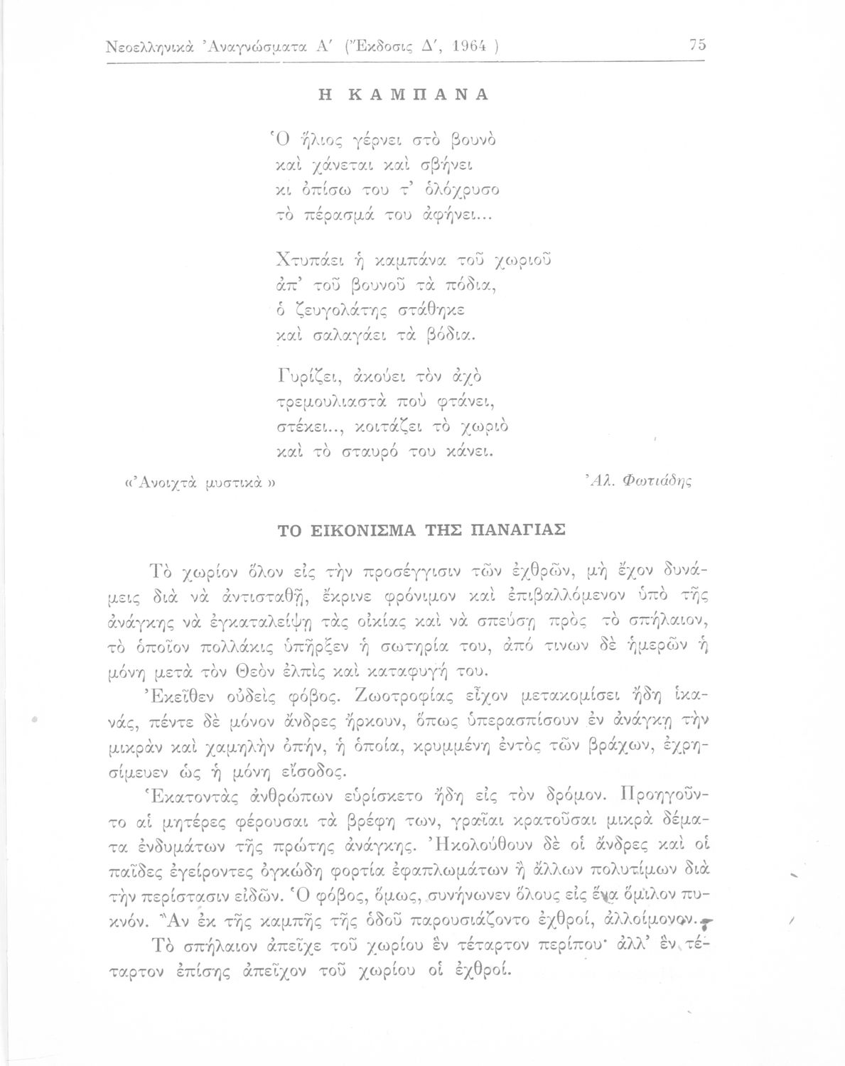 Σχολικό εγχειρίδιο Νέων Ελληνικών Γ΄ Γυμνασίου και Α' Αστικού Σχολείου που περιέχει πεζά και ποιήματα Ελλήνων συγγραφέων εμπνευσμένα από τη θρησκευτική και κοινωνική ζωή, την ελληνική μυθολογία, την αρχαία και