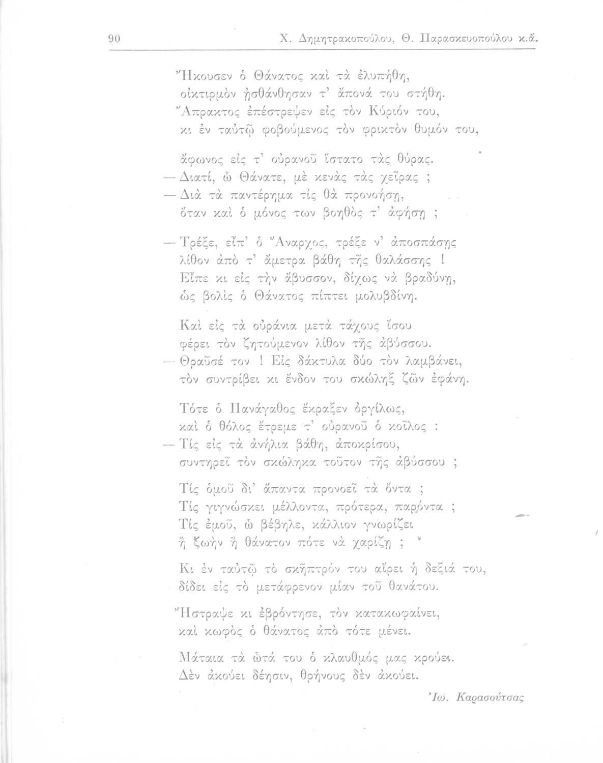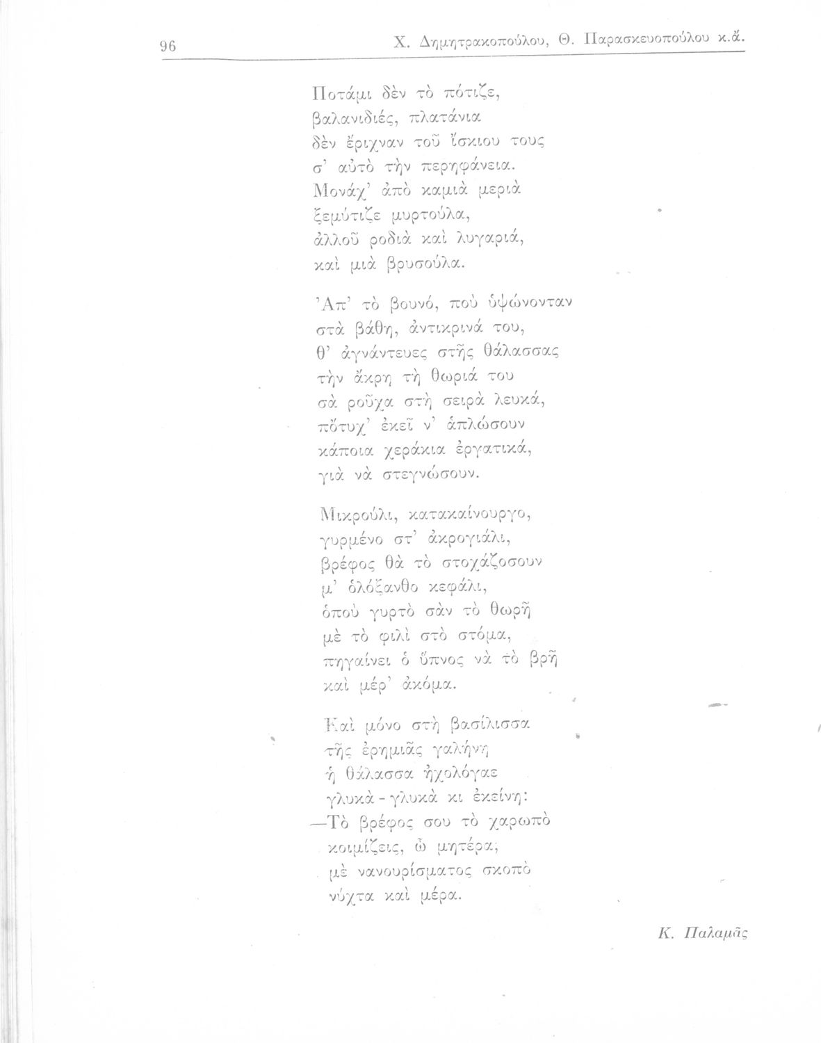 Σχετιζόμενοι όροι:  Παπαντωνίου, Πολέμης, Παλαμάς, Βηλαράς